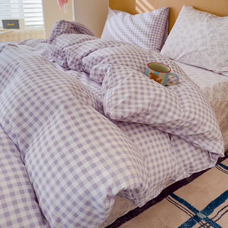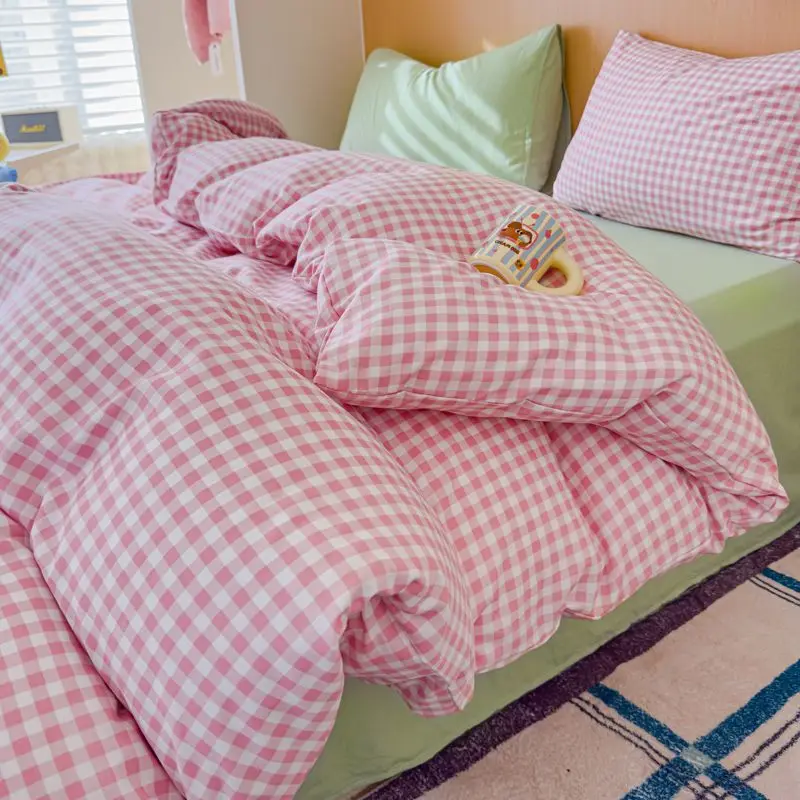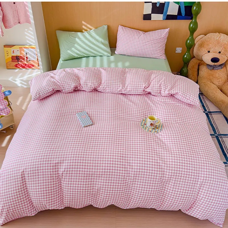 Purpdrank Pink Plaid Bedding Sets 2025 New Japanese Duvet Cover No Filler Green Bed Sheet one or Two Pillowcase Girl Comforter Cover Set