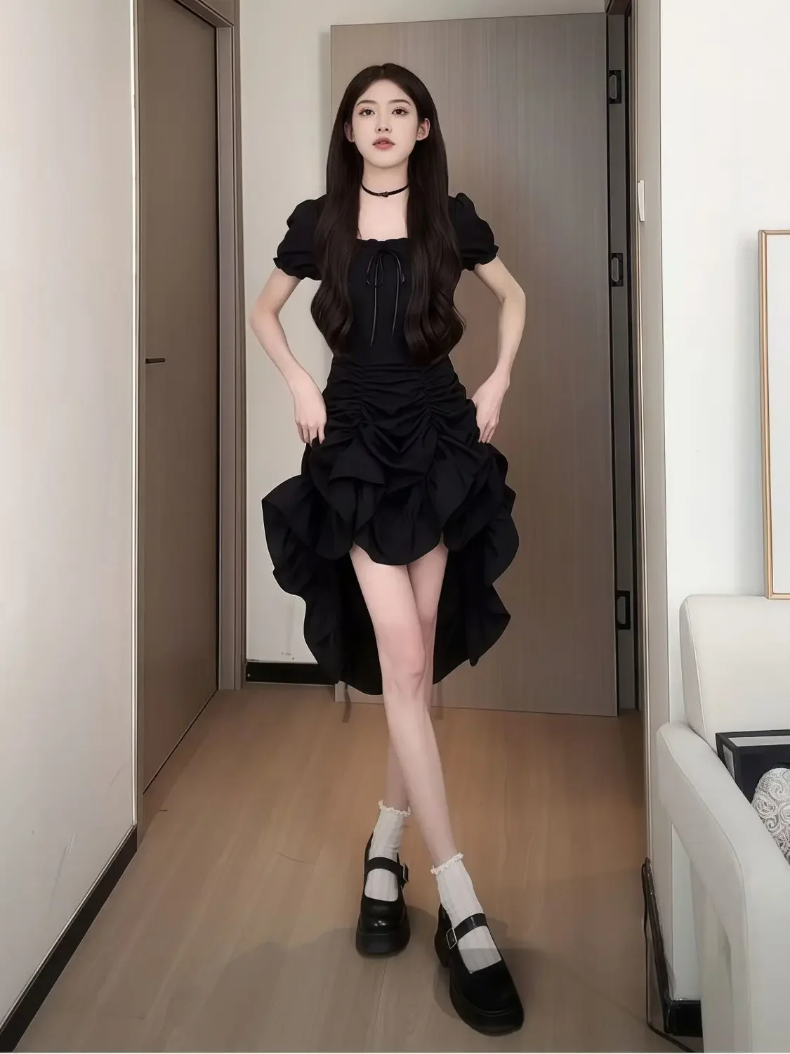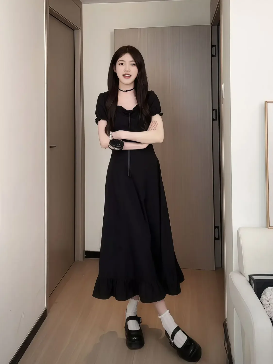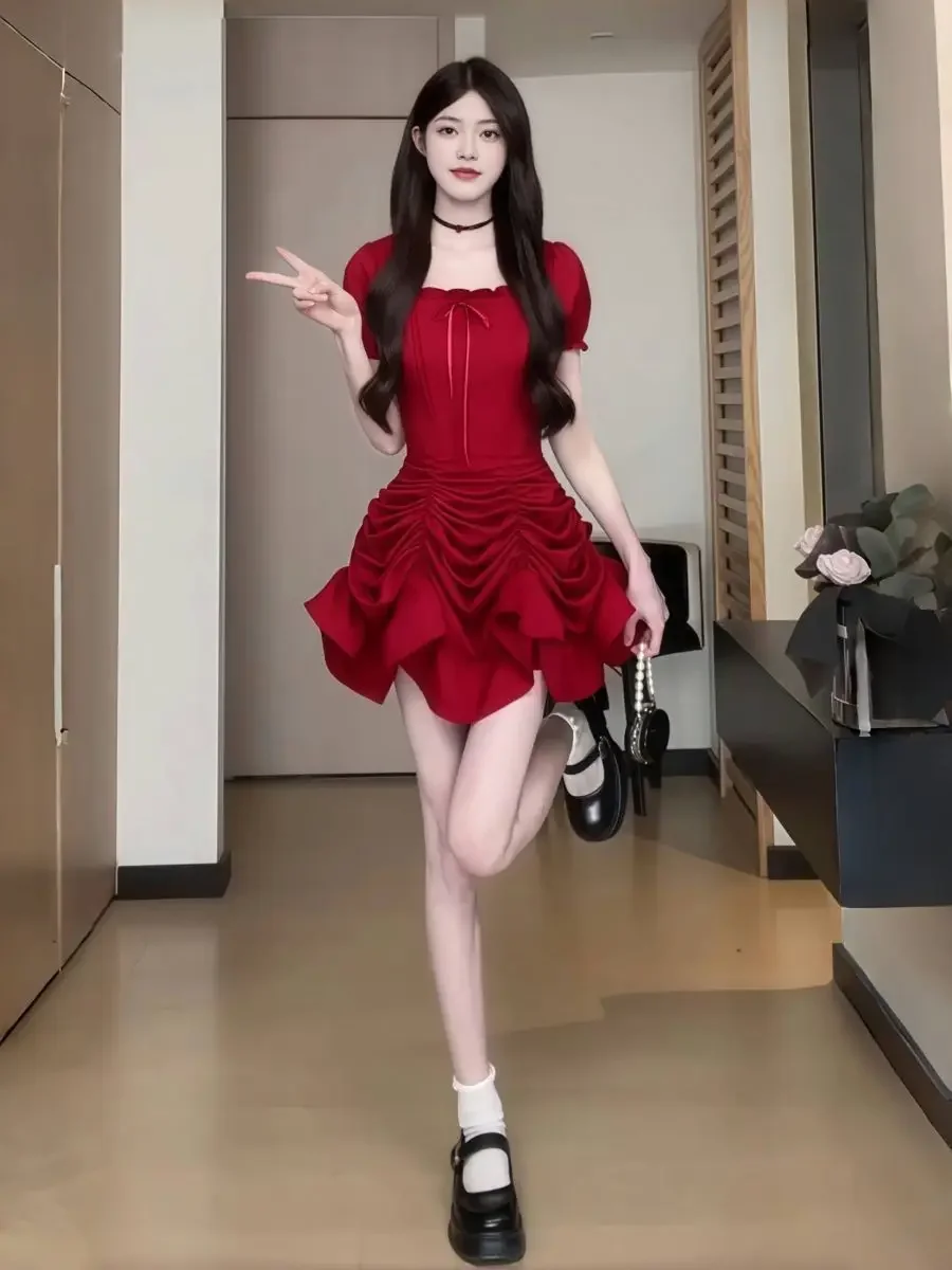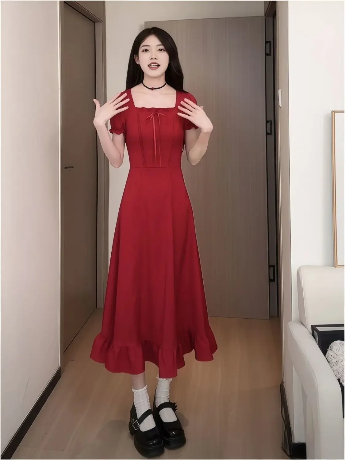 Purpdrank Plus Size French Style Short Sleeve Long Dress Slimming Waist Design Summer Women's Dress Red Cake Skirt One Dress Four Ways