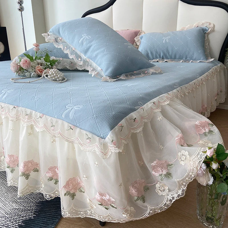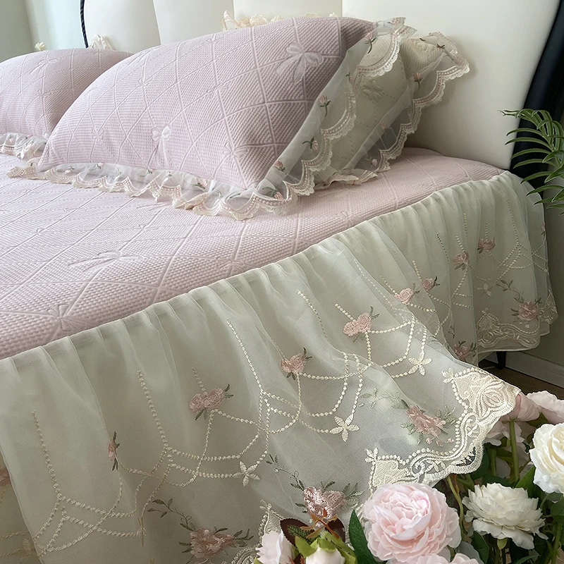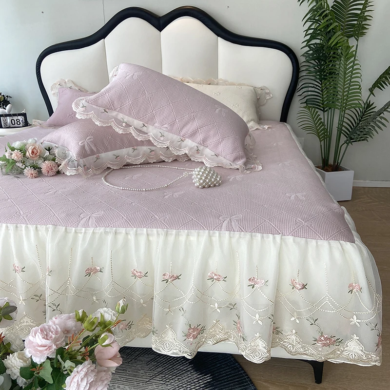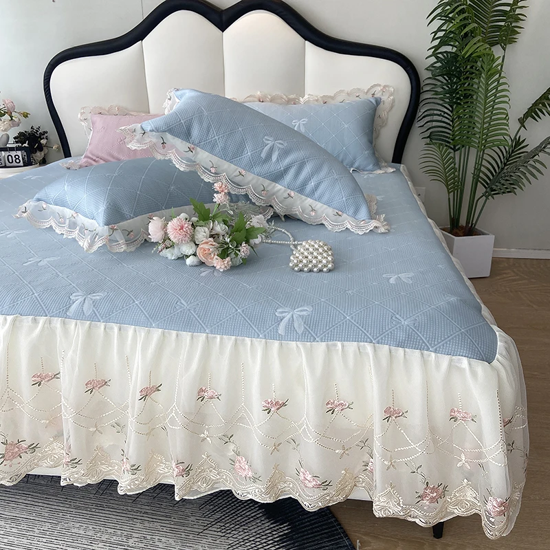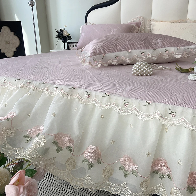 Purpdrank Princess Bed Skirt Sheet Summer Cool Bed Skirt Mattress Lace Bedsheet Not Stuffy Double King Bedspread With 2 Pillowcases