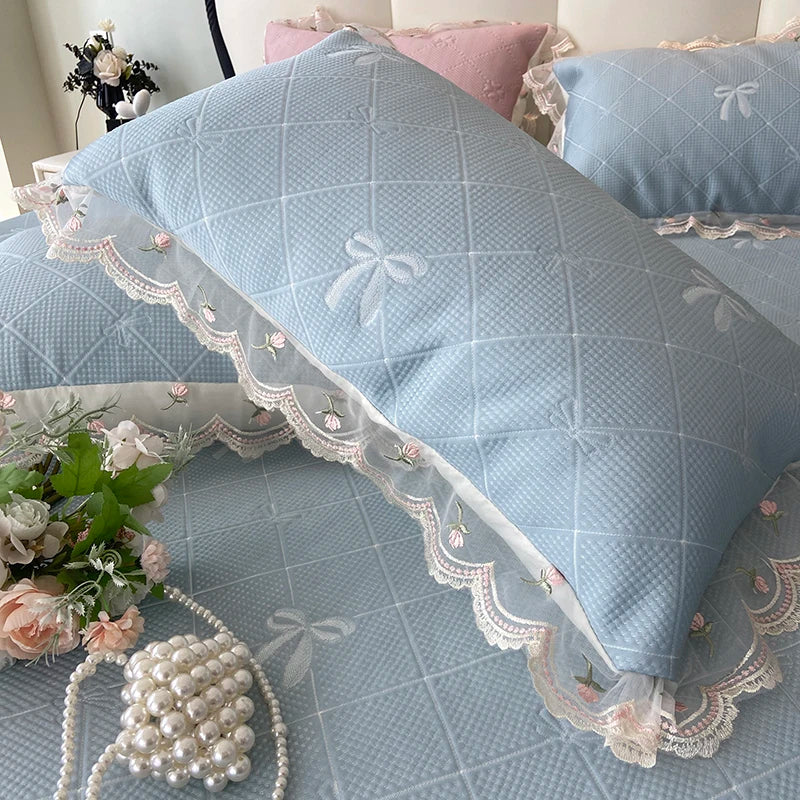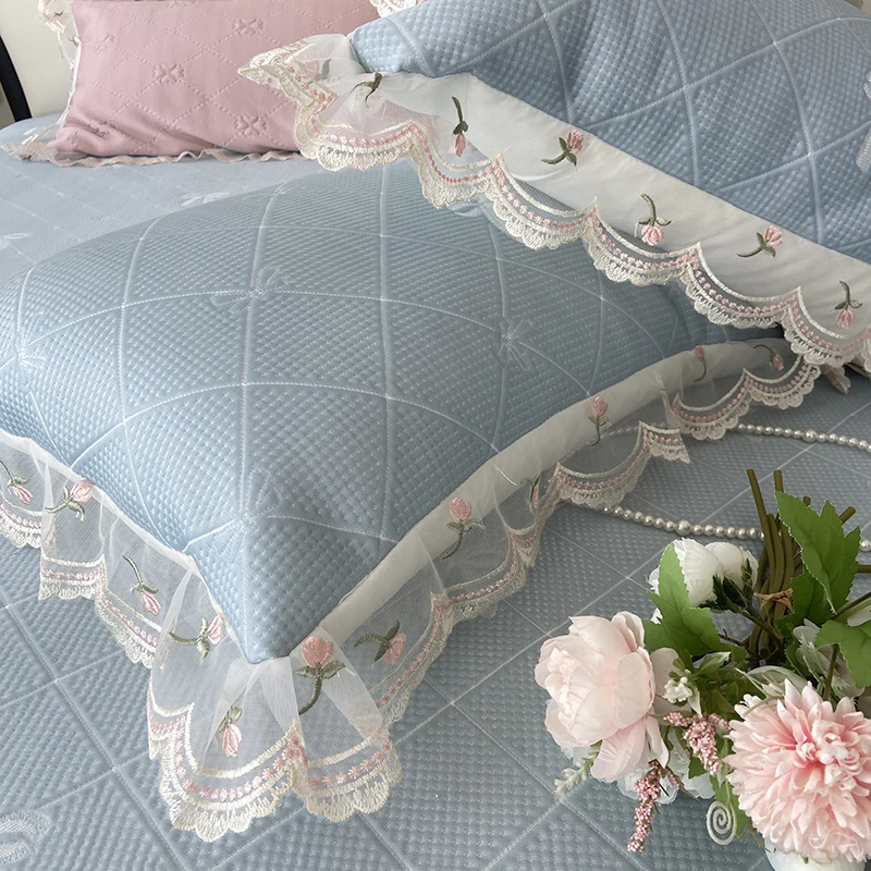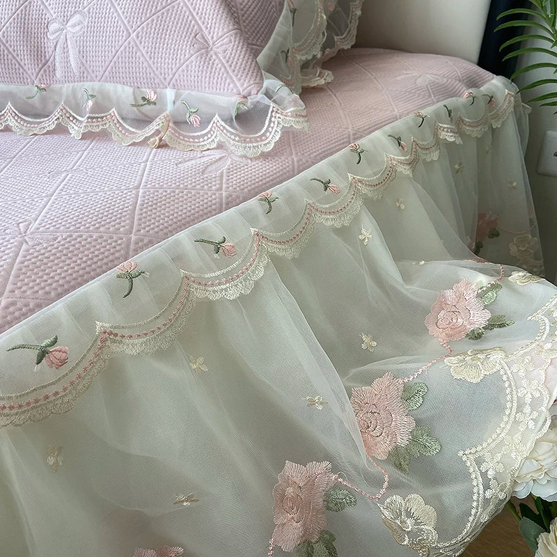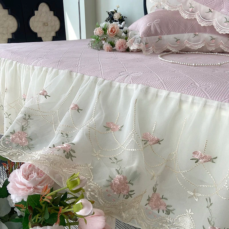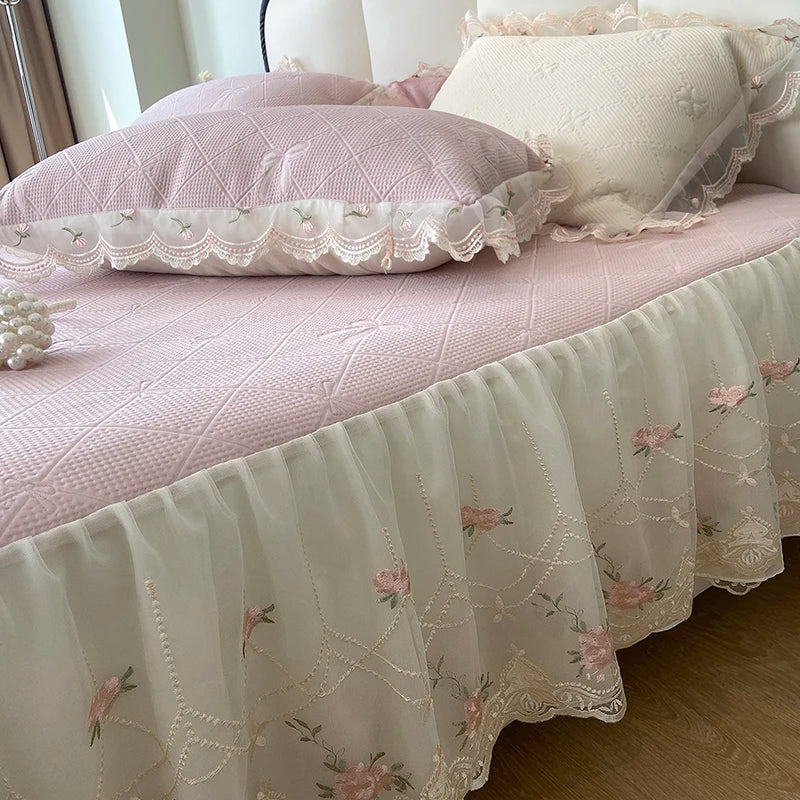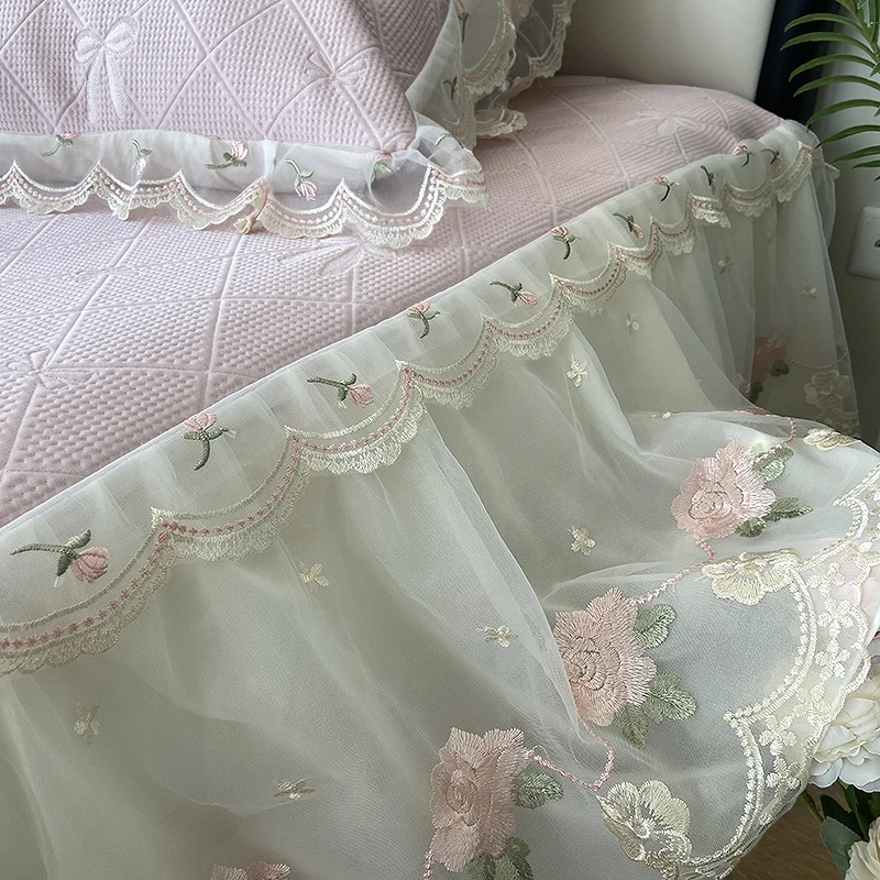 Purpdrank Princess Bed Skirt Sheet Summer Cool Bed Skirt Mattress Lace Bedsheet Not Stuffy Double King Bedspread With 2 Pillowcases