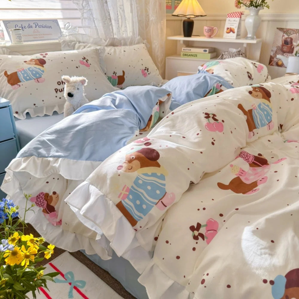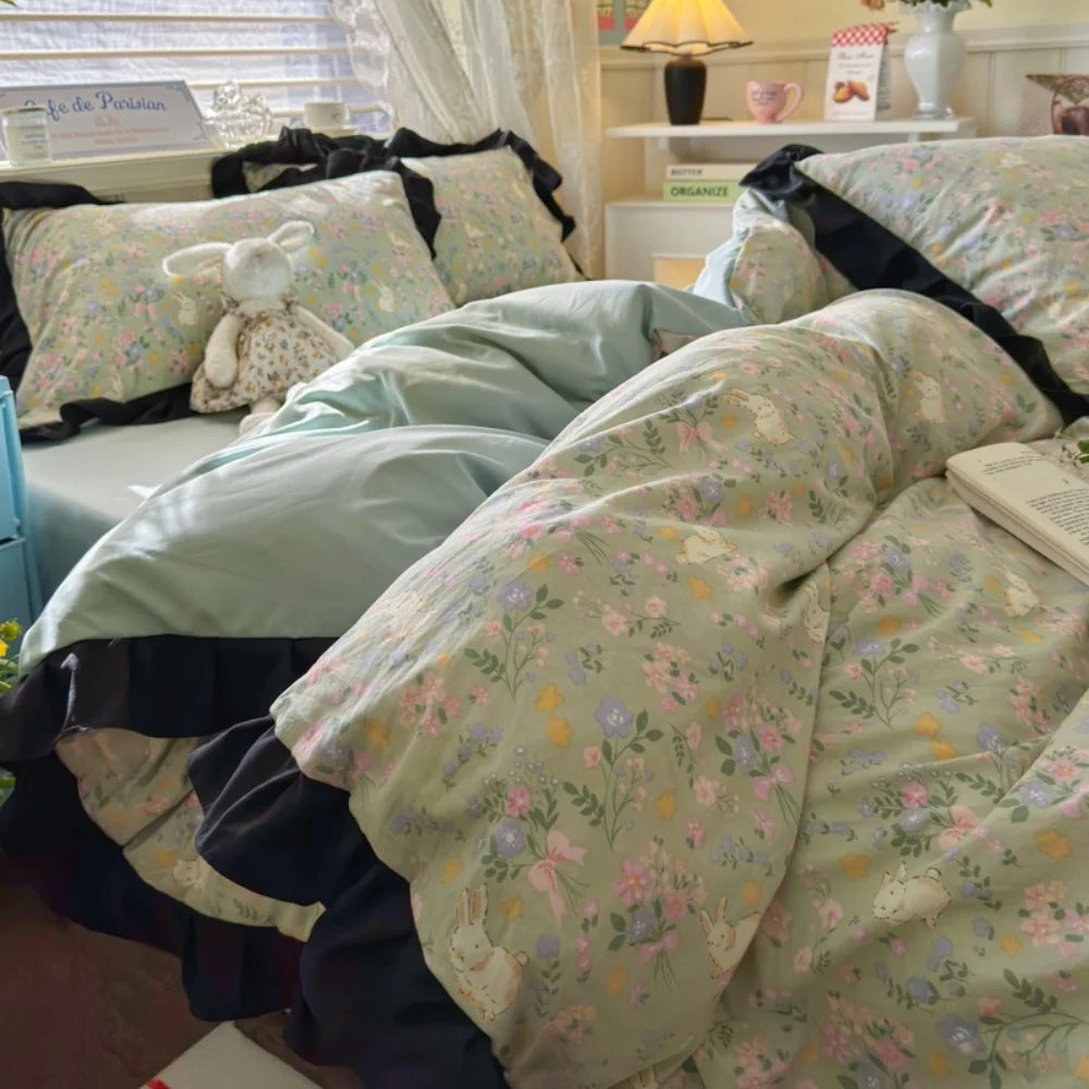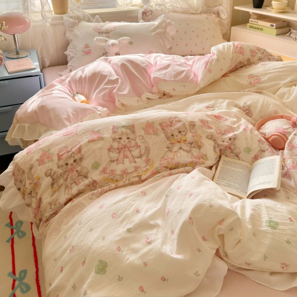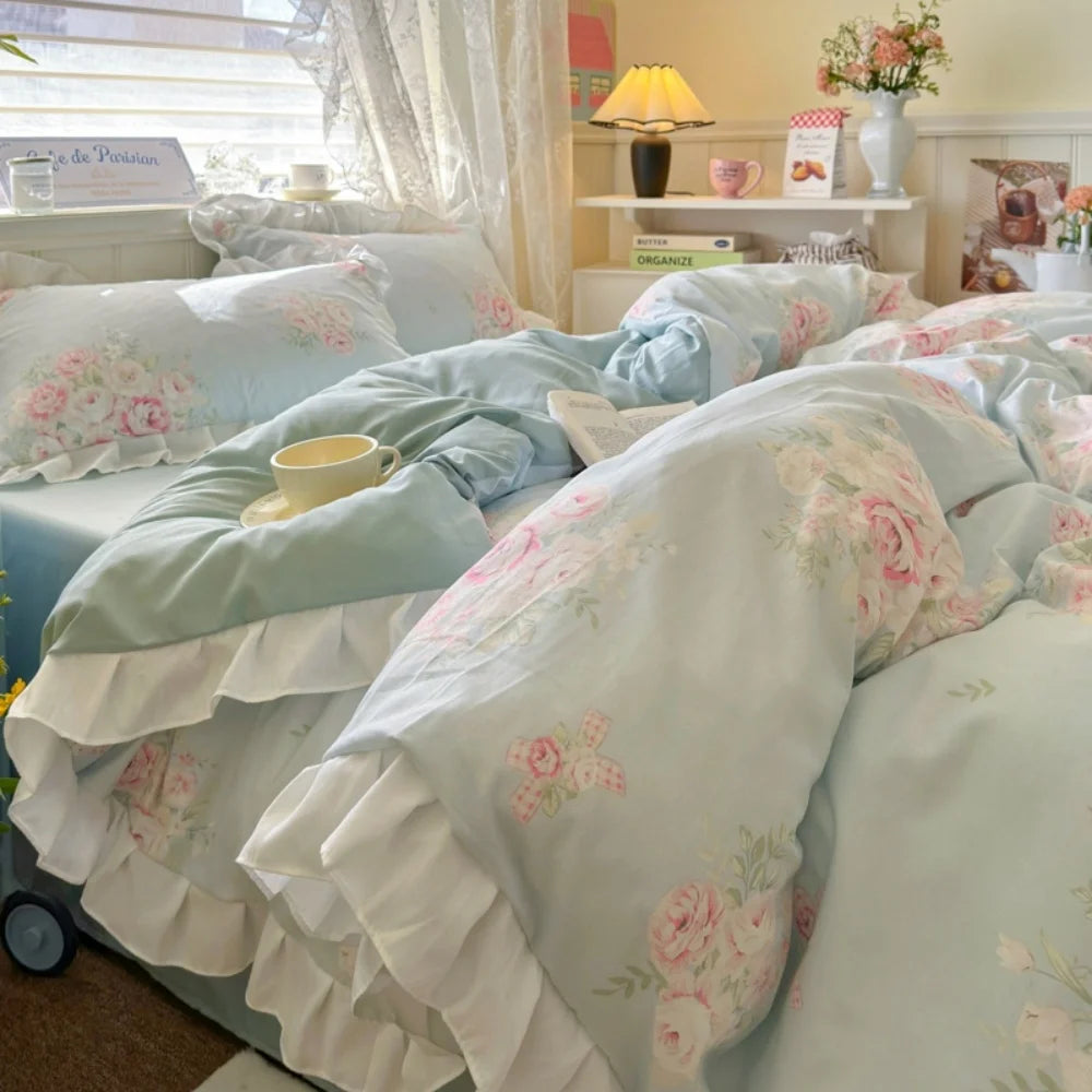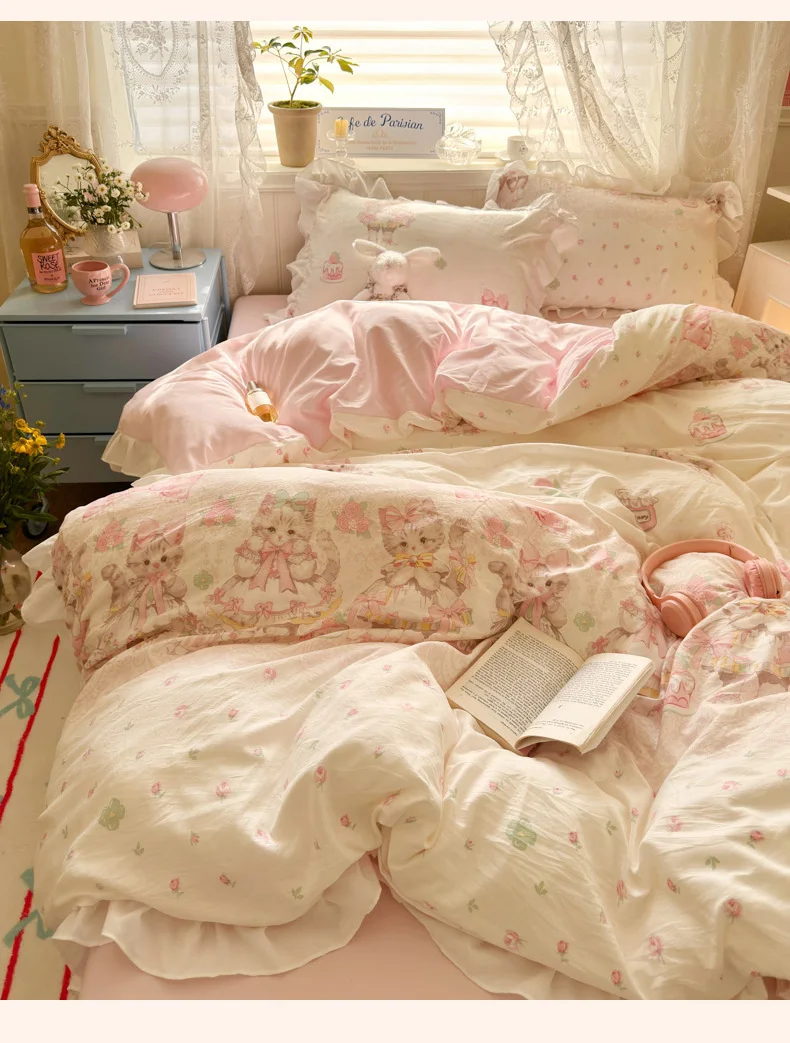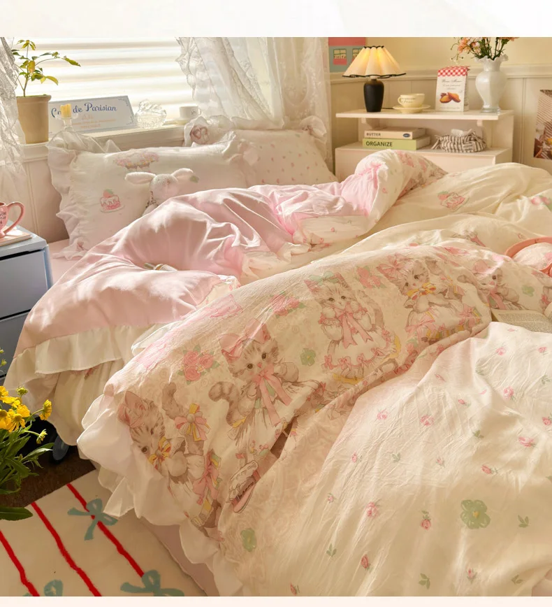 Purpdrank Princess French Style Bedding Set For Adults Kid Flat Fitted Sheet Set With Pillowcases King Queen Full Bedroom Decor Bedclothes