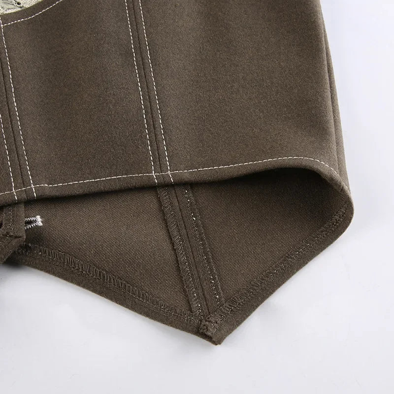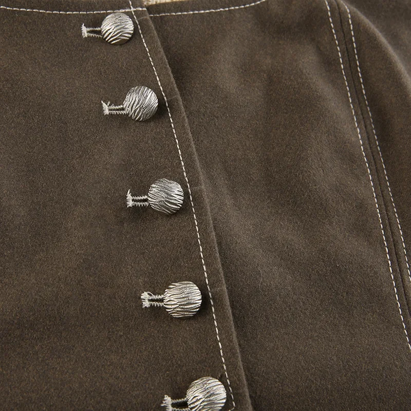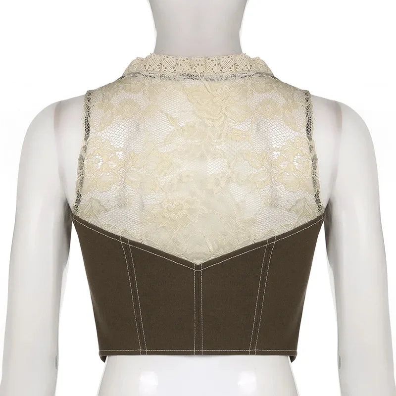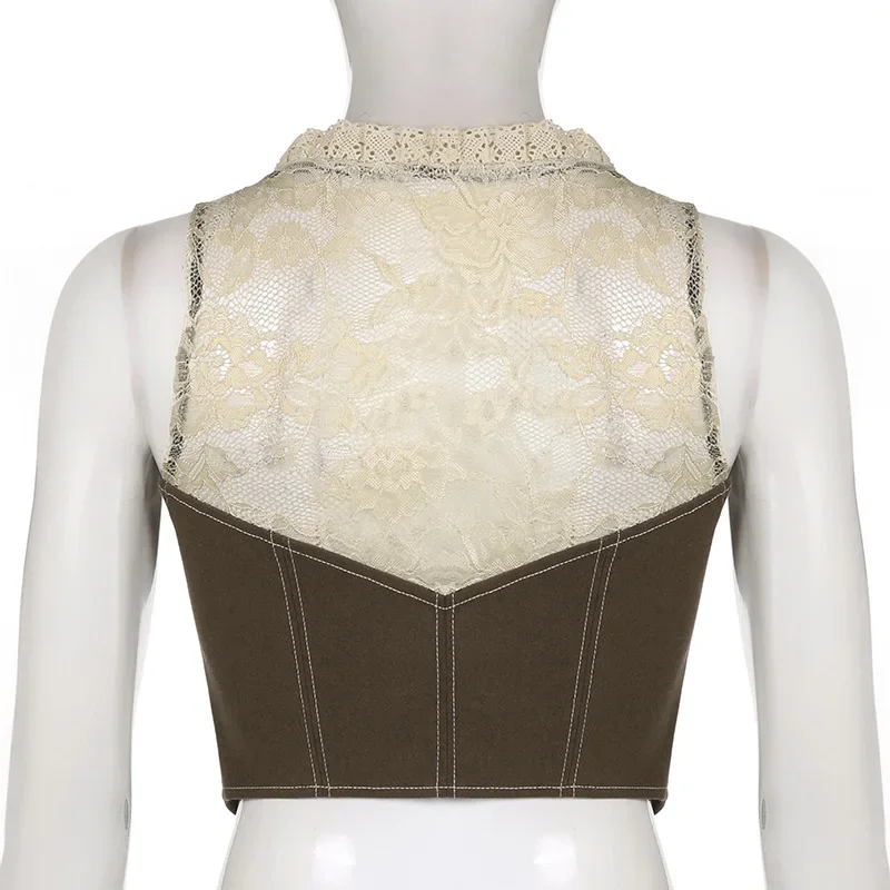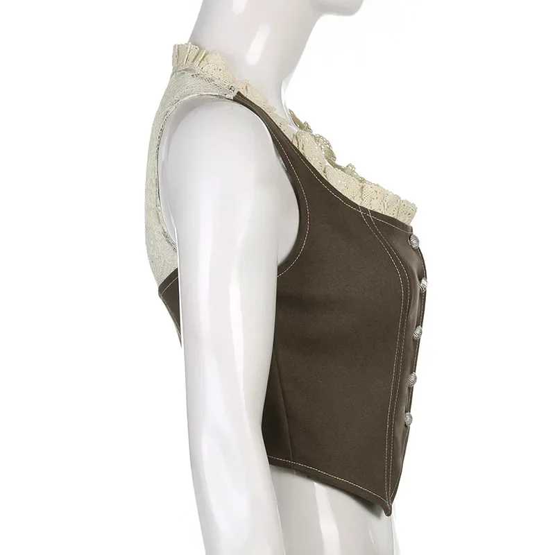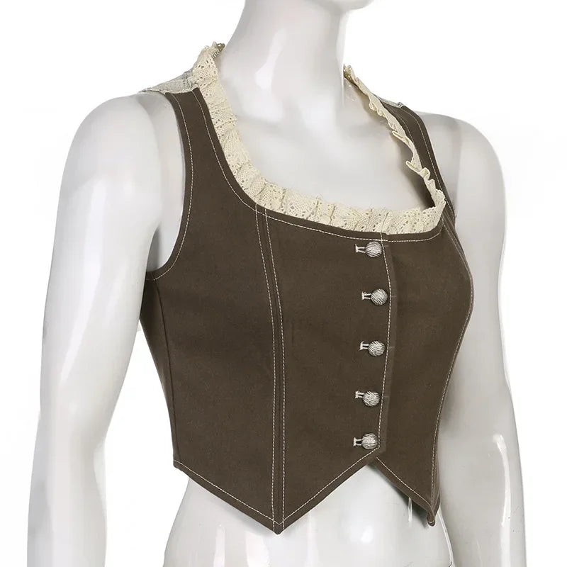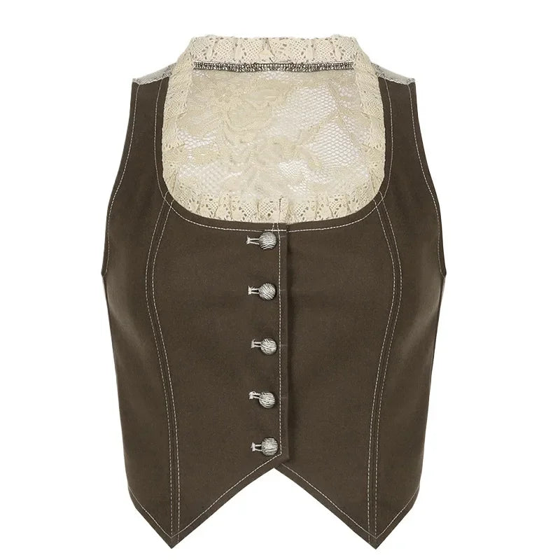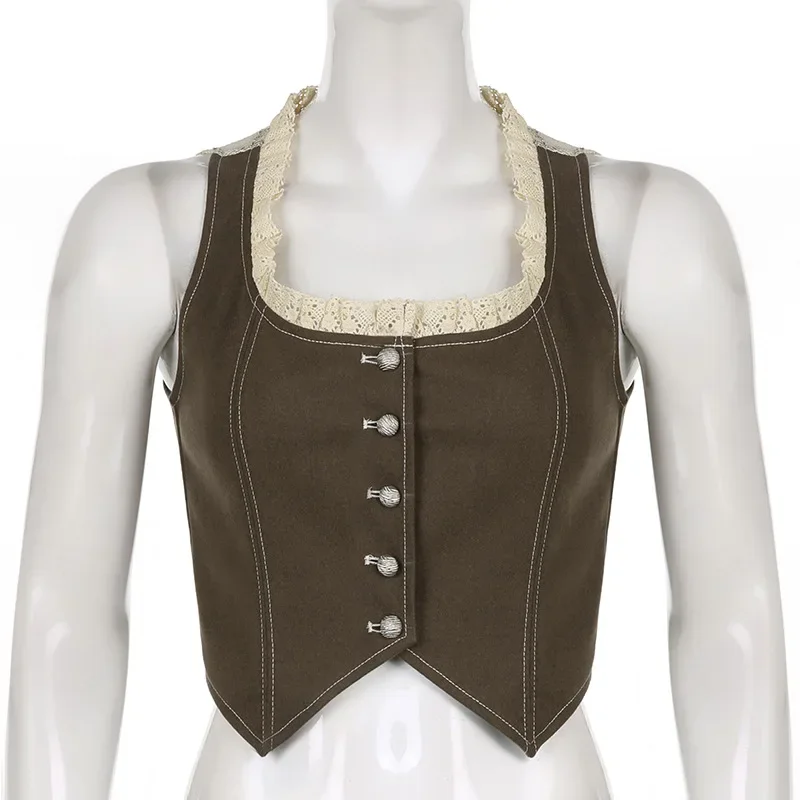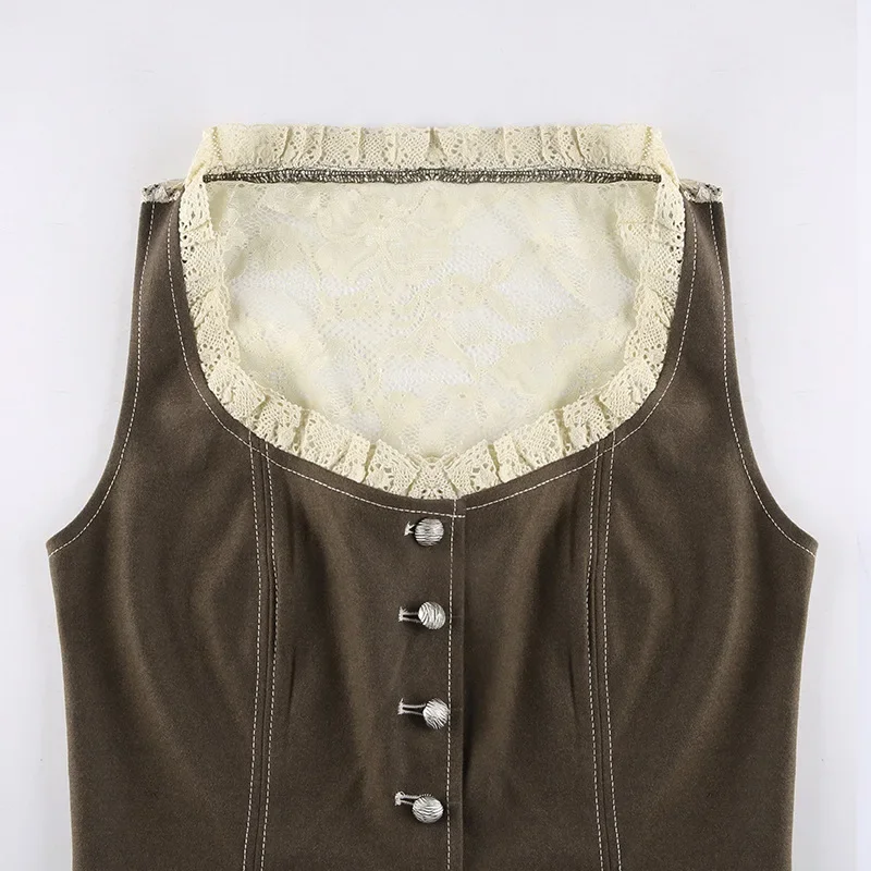 Purpdrank Retro Style Women's Lace Button Vest Irregular Hem Street Fashion Hot Girl Outerwear Tank Top Polyester Fiber Casual Wear