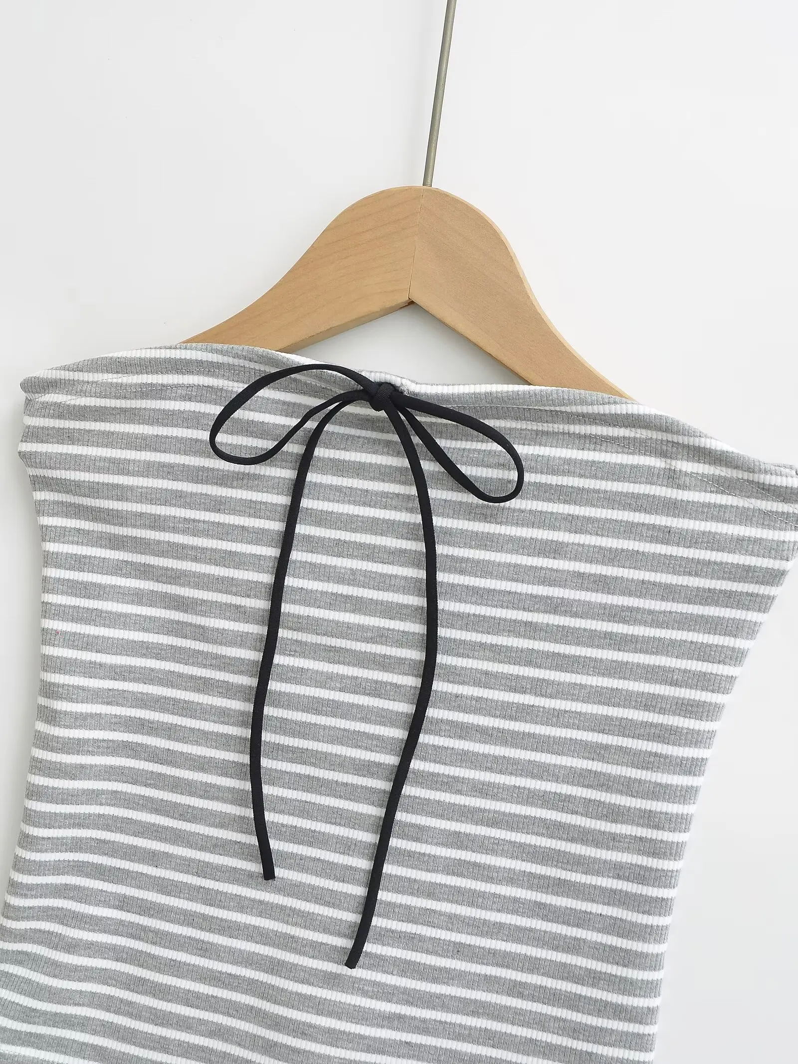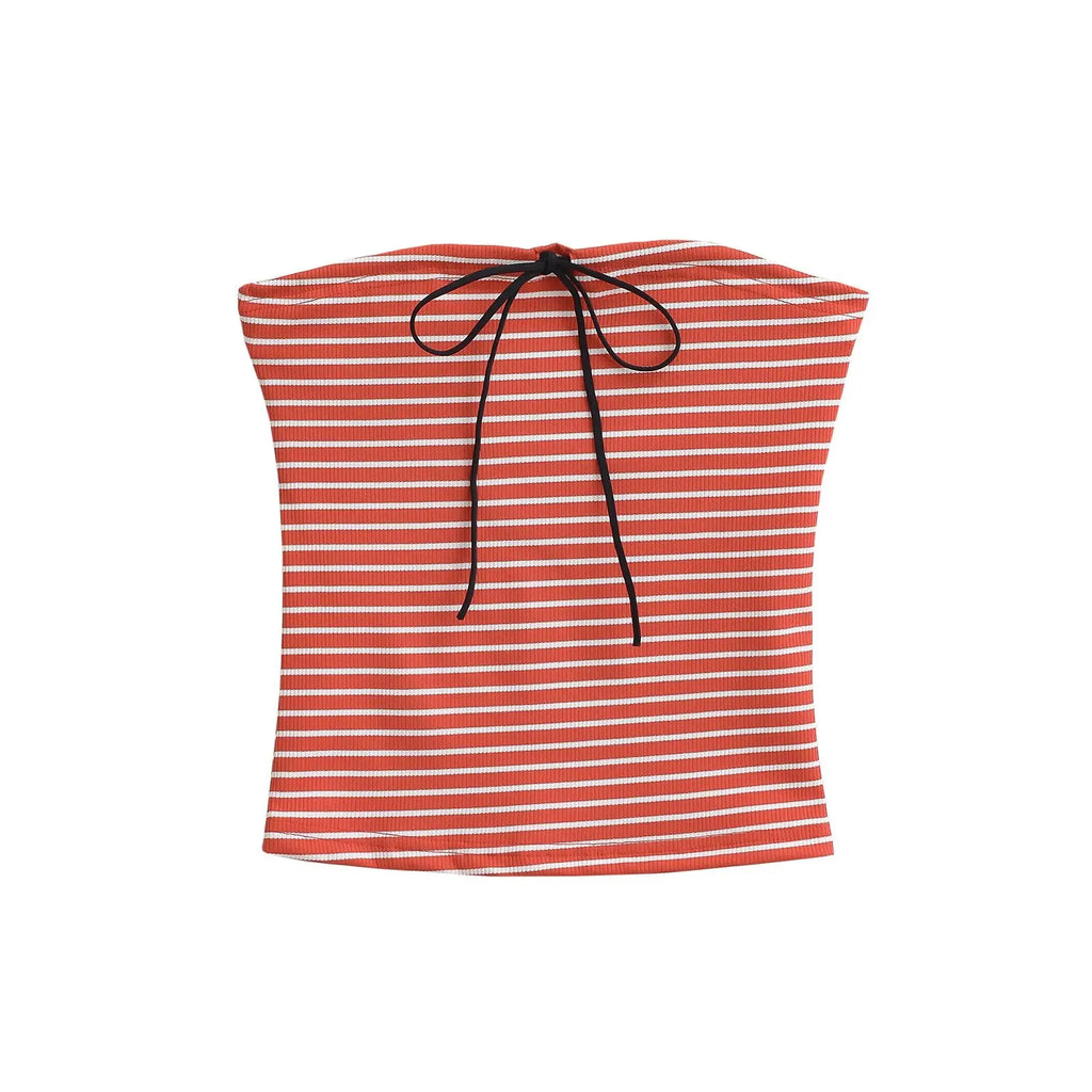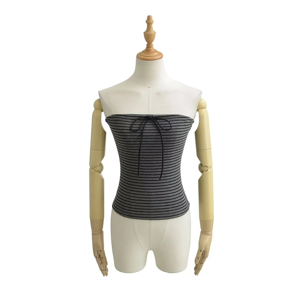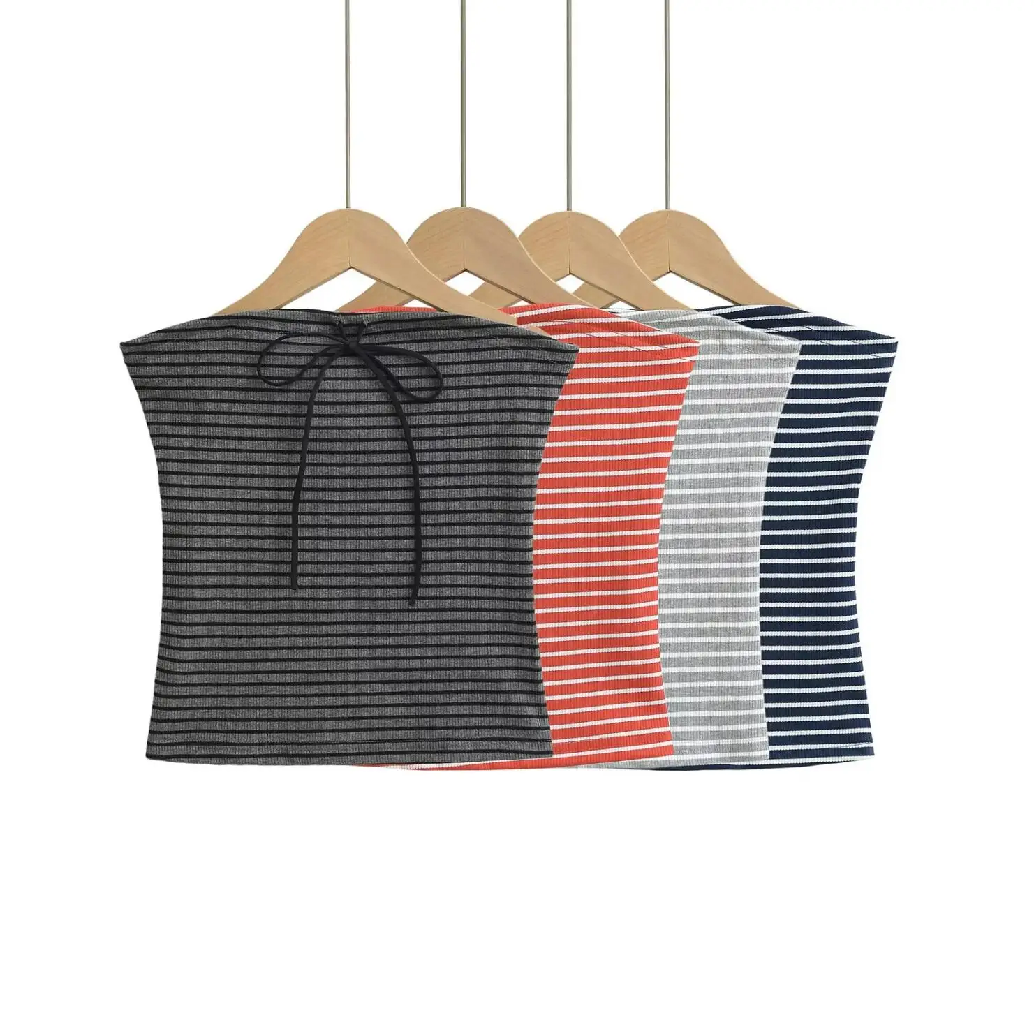 Purpdrank Sexy Contrast color Striped Strapless Rib Knitted Bow Tank Top Women Skinny Crop Top Stretch Camisole 4 colors oatmeal gray