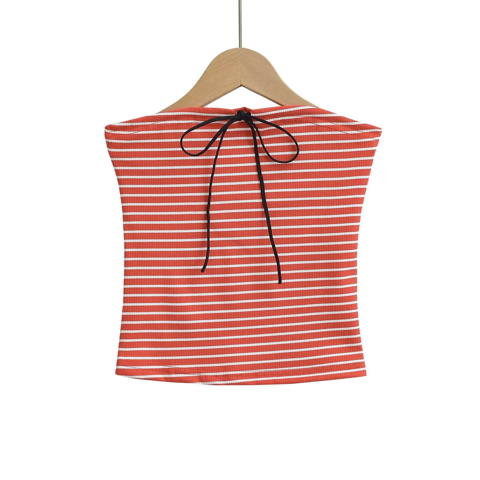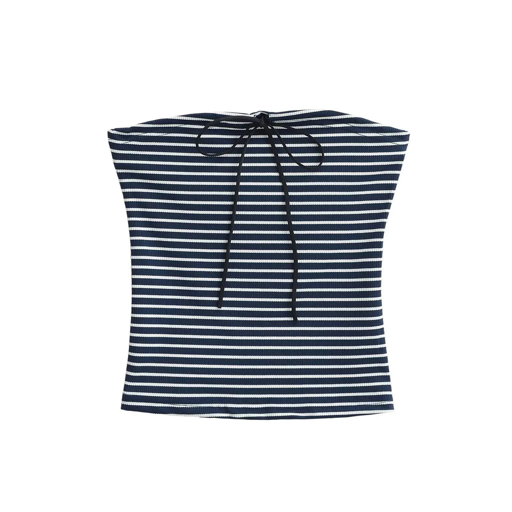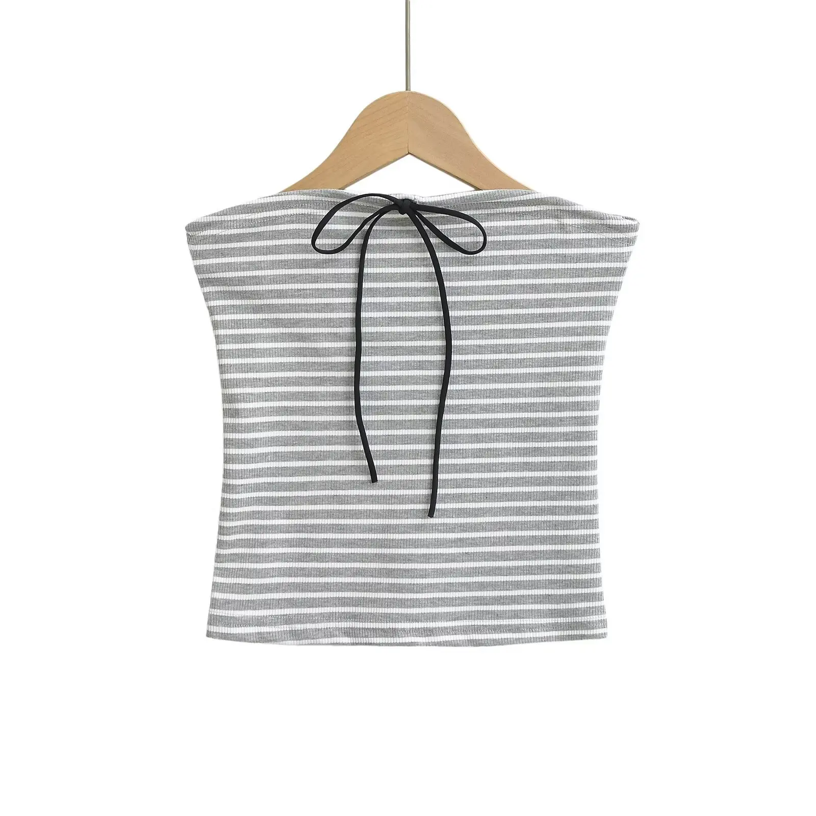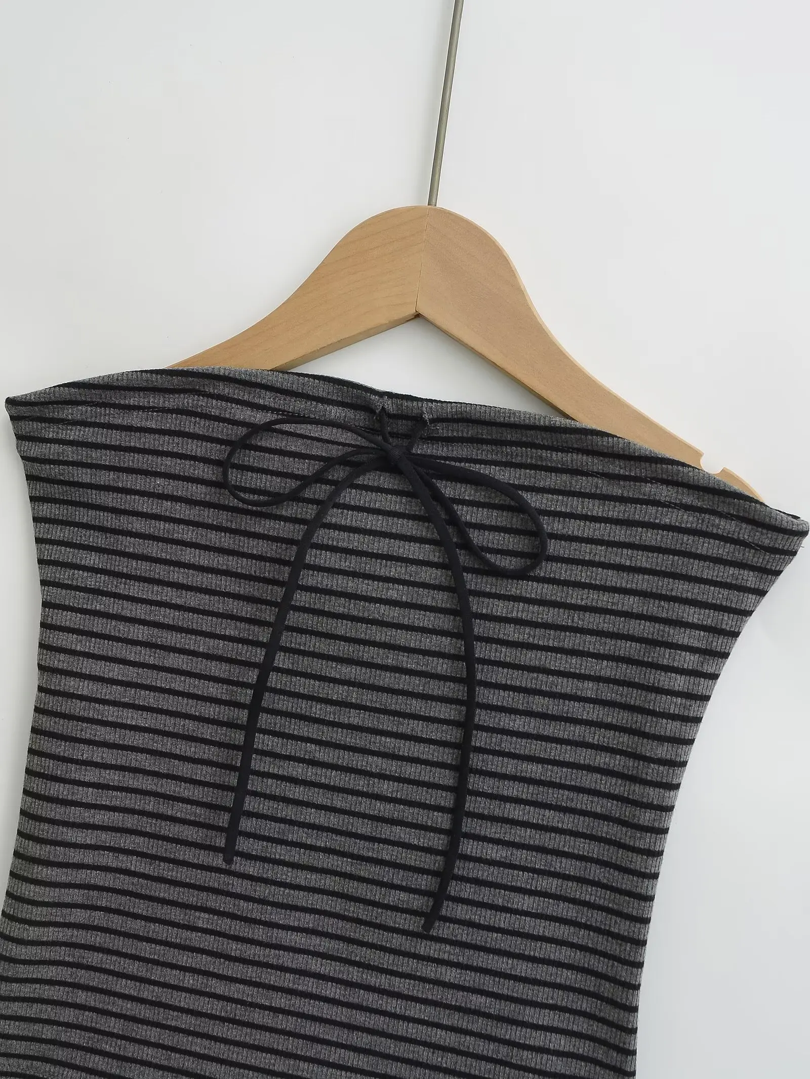 Purpdrank Sexy Contrast color Striped Strapless Rib Knitted Bow Tank Top Women Skinny Crop Top Stretch Camisole 4 colors oatmeal gray