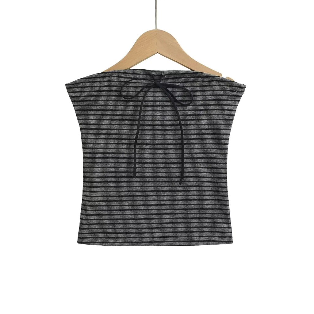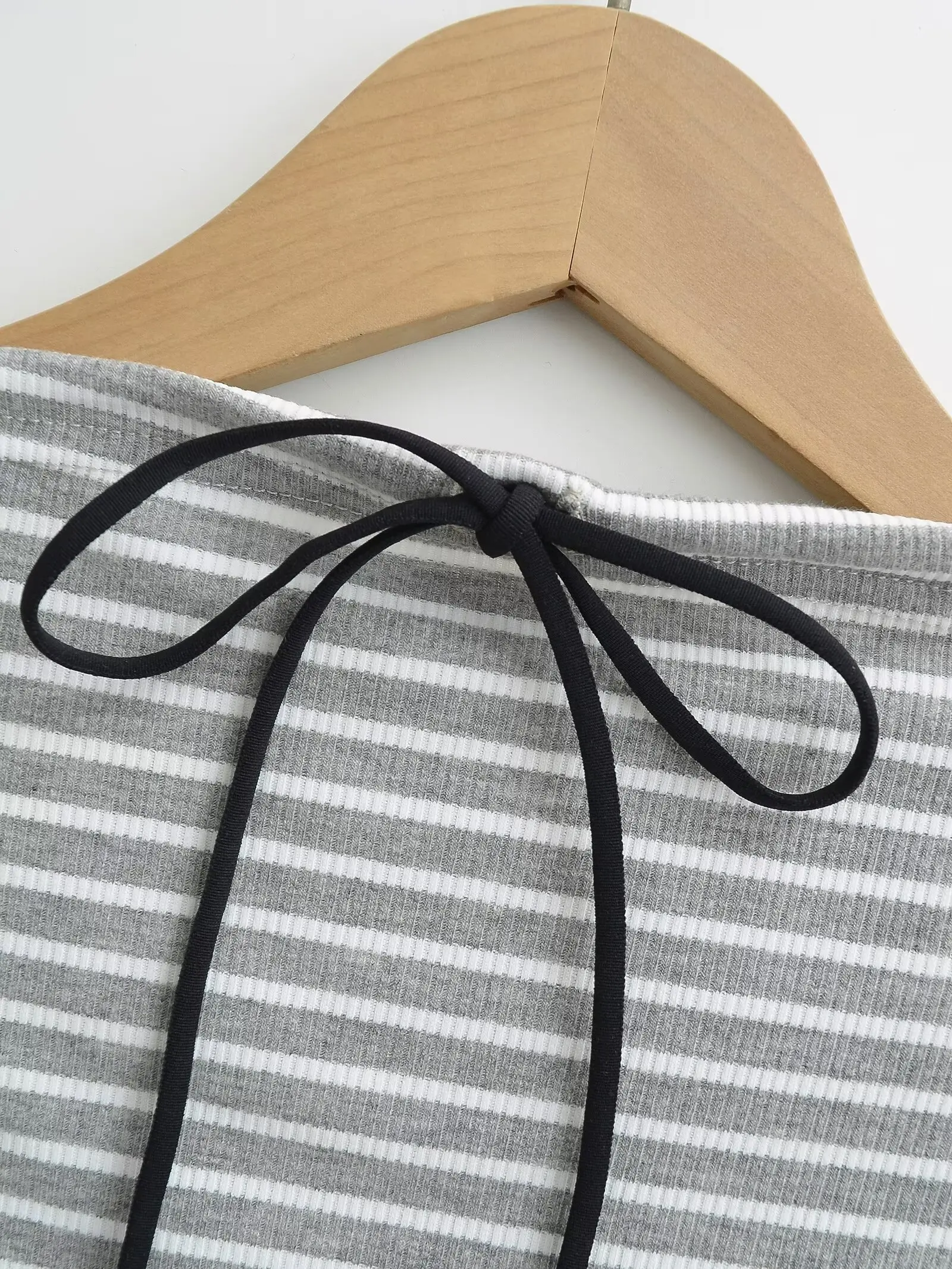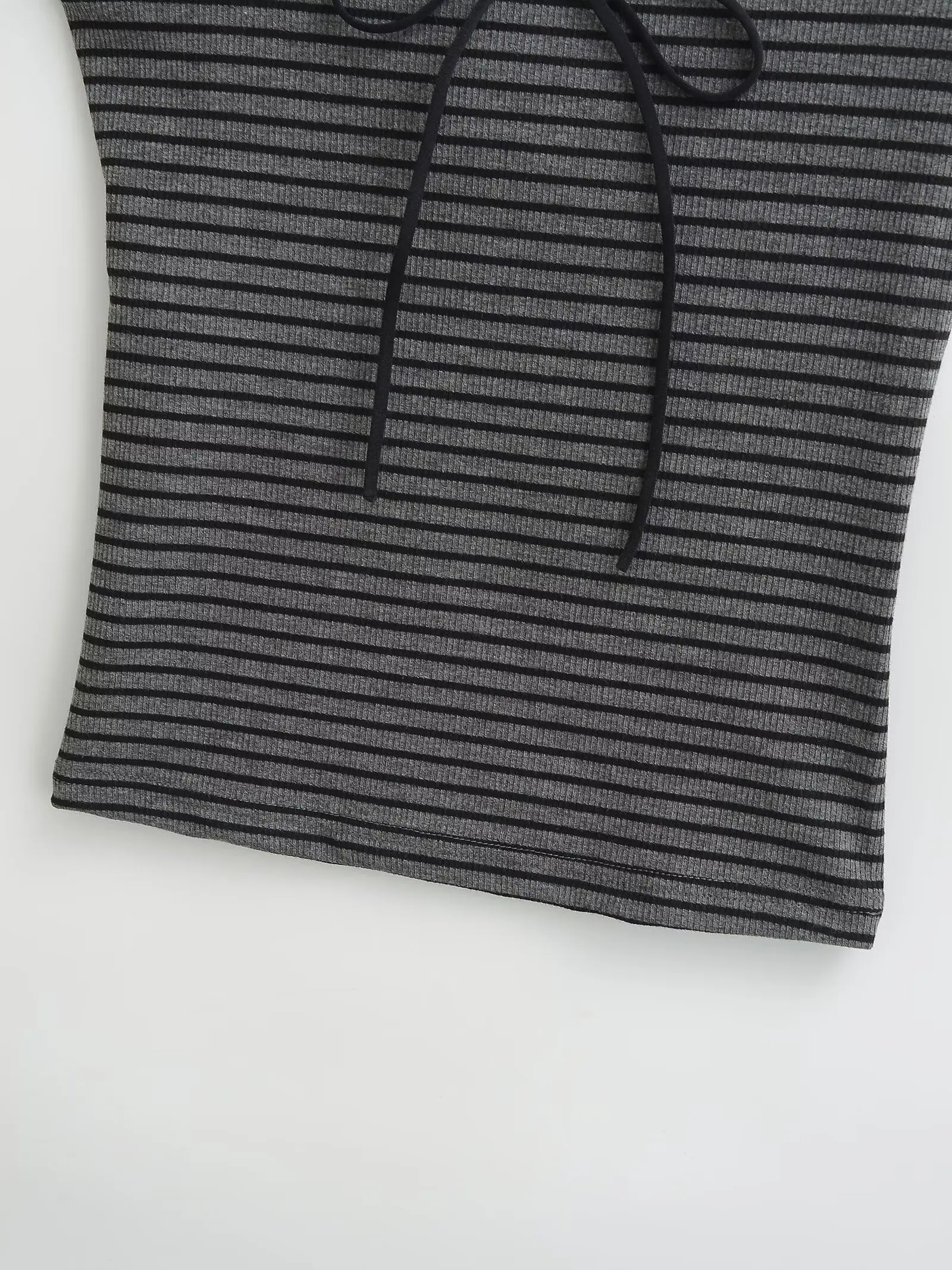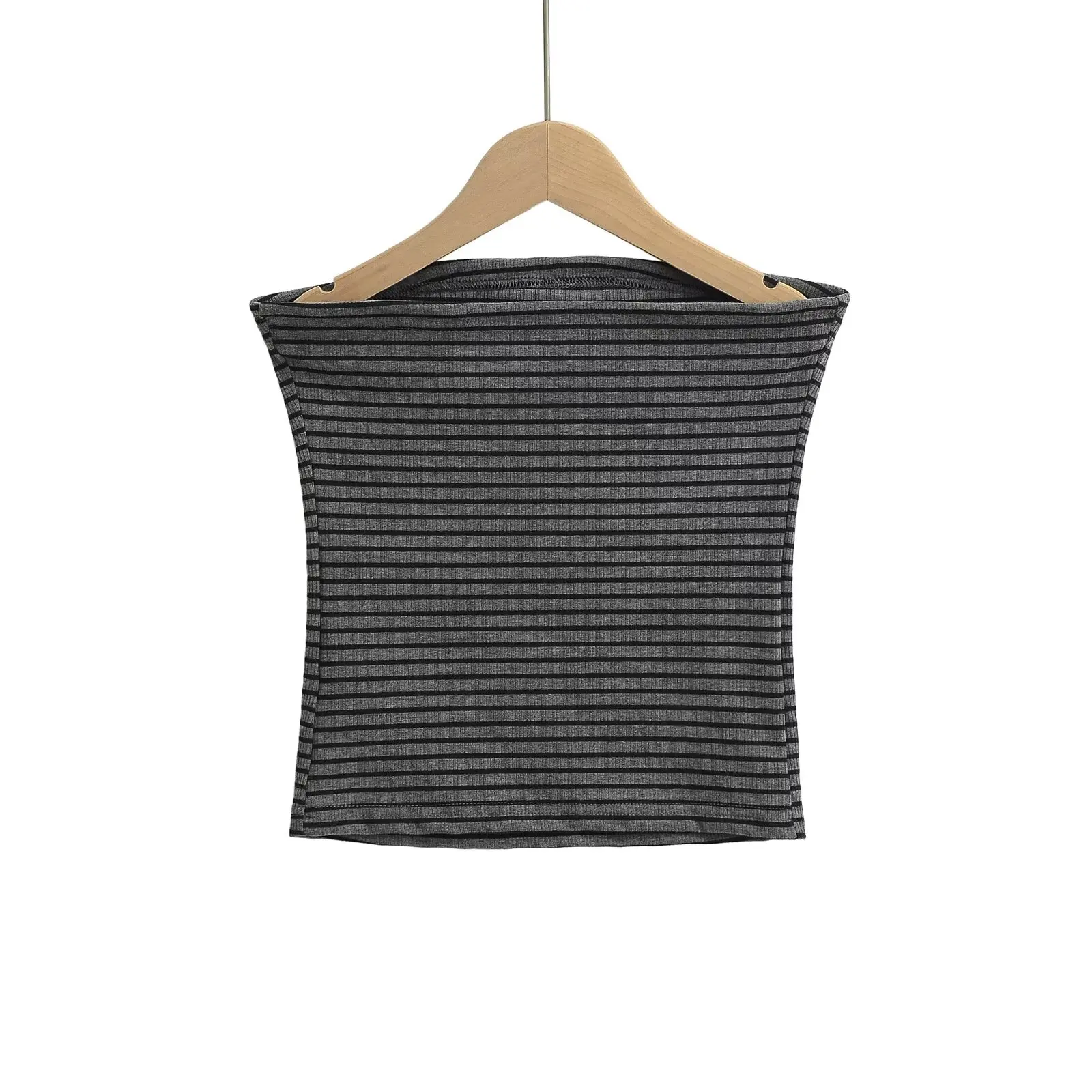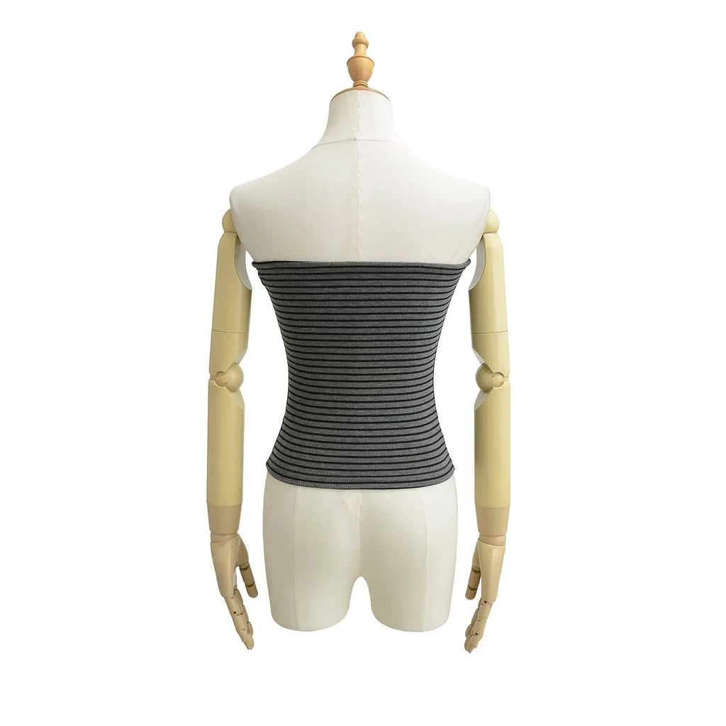 Purpdrank Sexy Contrast color Striped Strapless Rib Knitted Bow Tank Top Women Skinny Crop Top Stretch Camisole 4 colors oatmeal gray