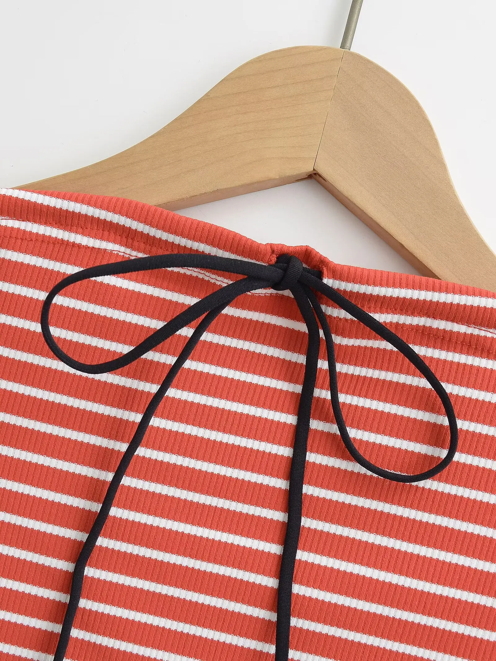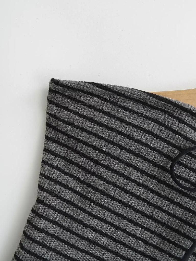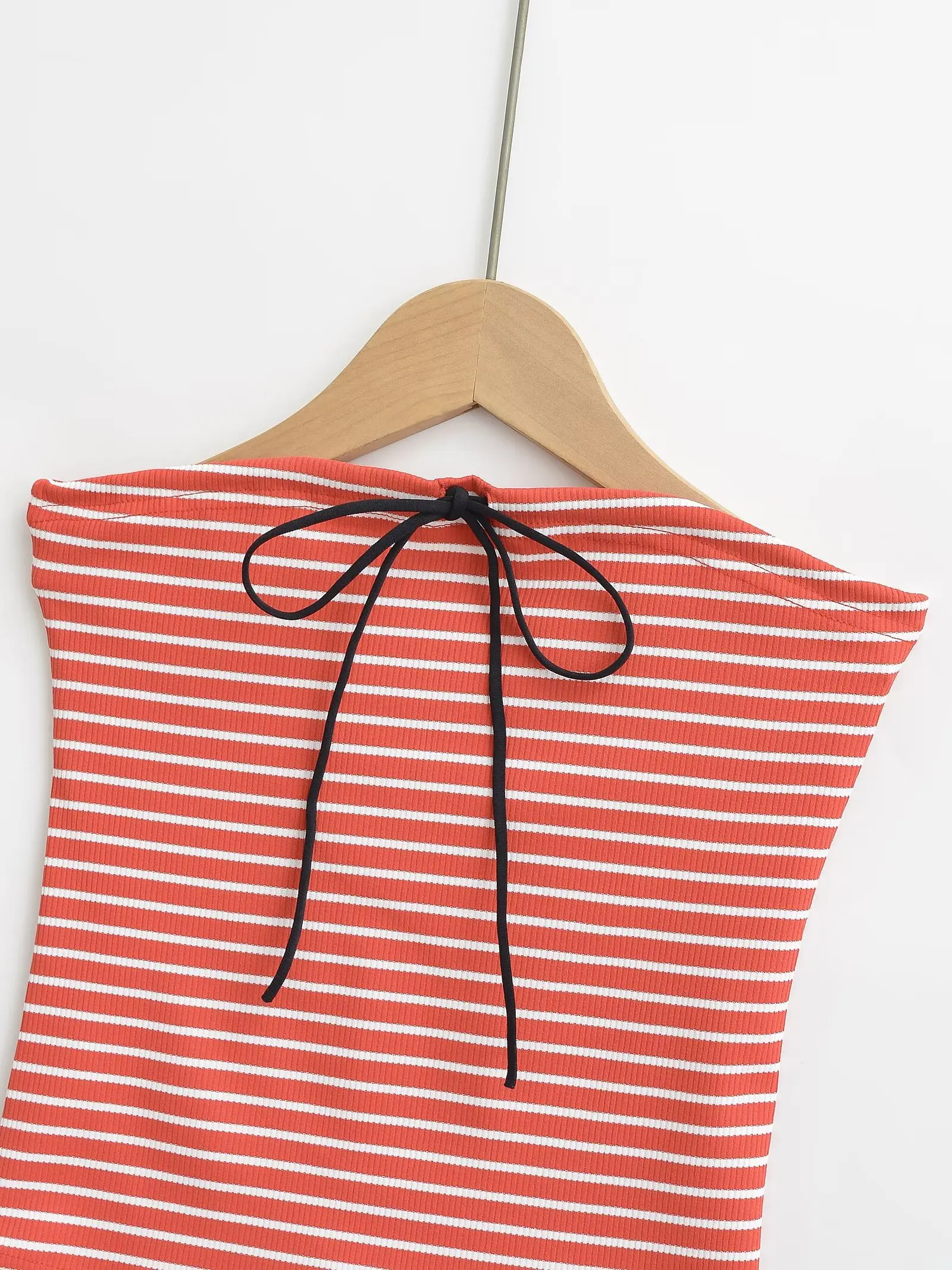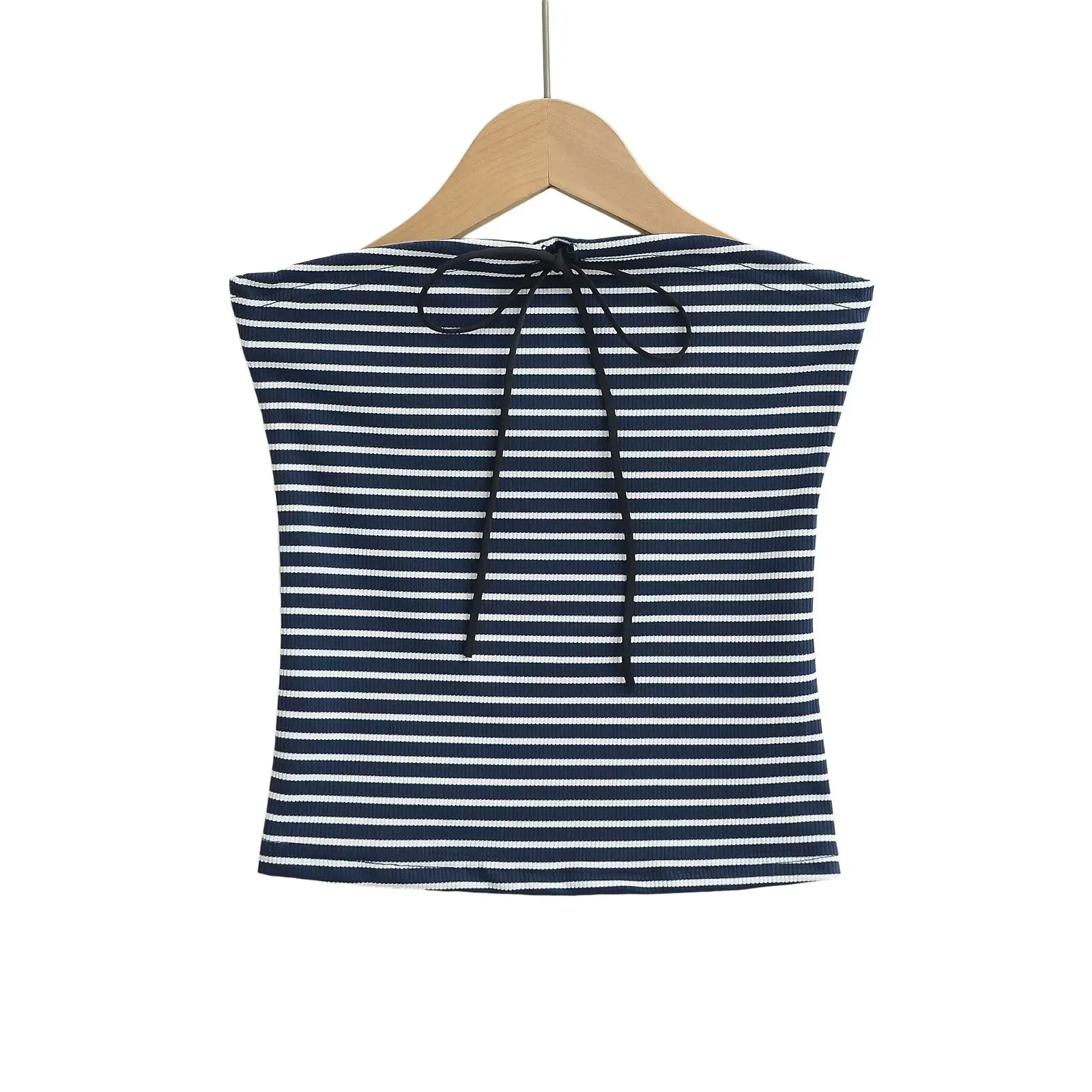 Purpdrank Sexy Contrast color Striped Strapless Rib Knitted Bow Tank Top Women Skinny Crop Top Stretch Camisole 4 colors oatmeal gray