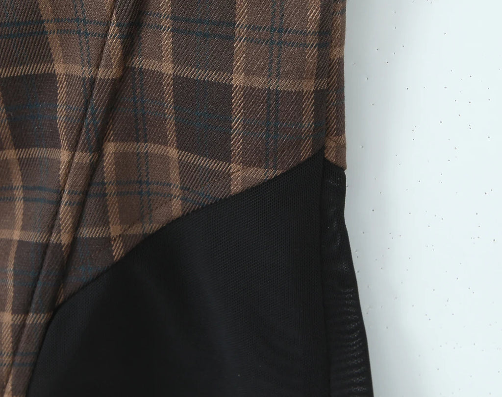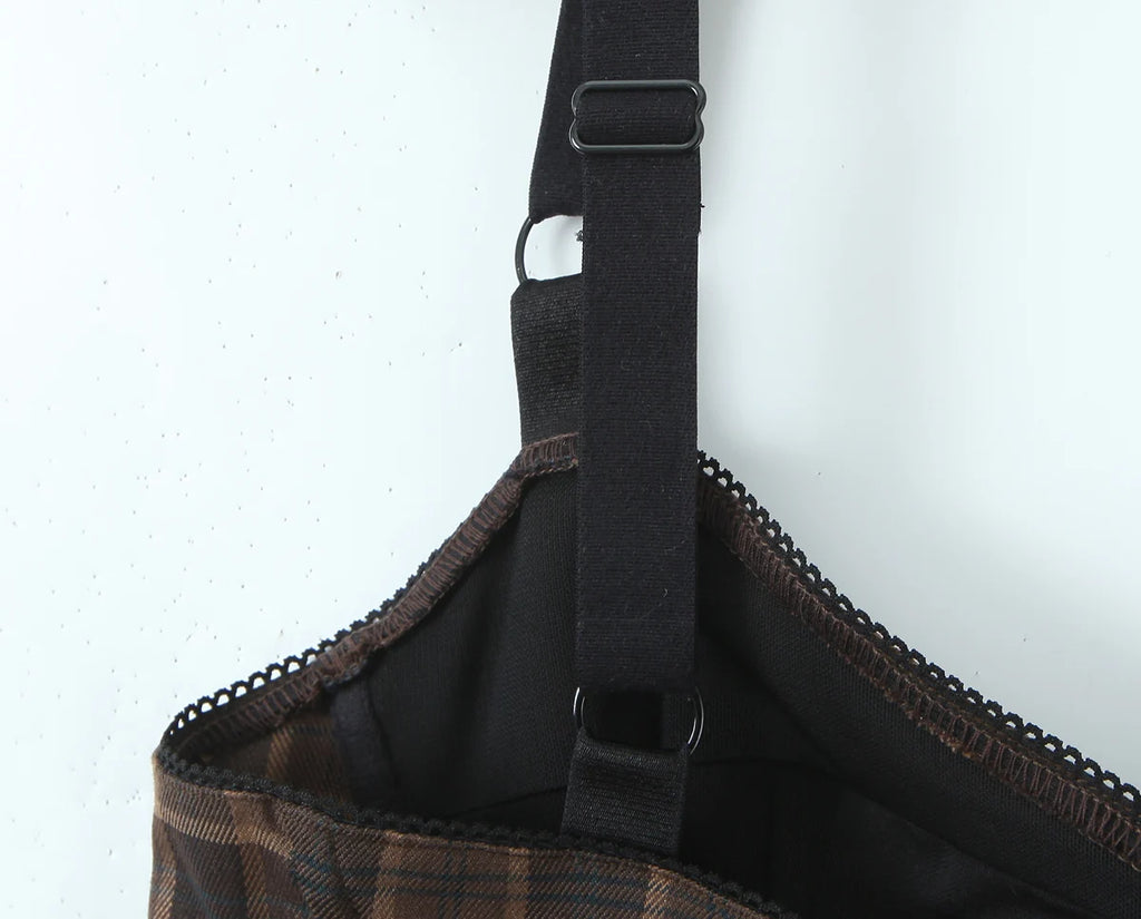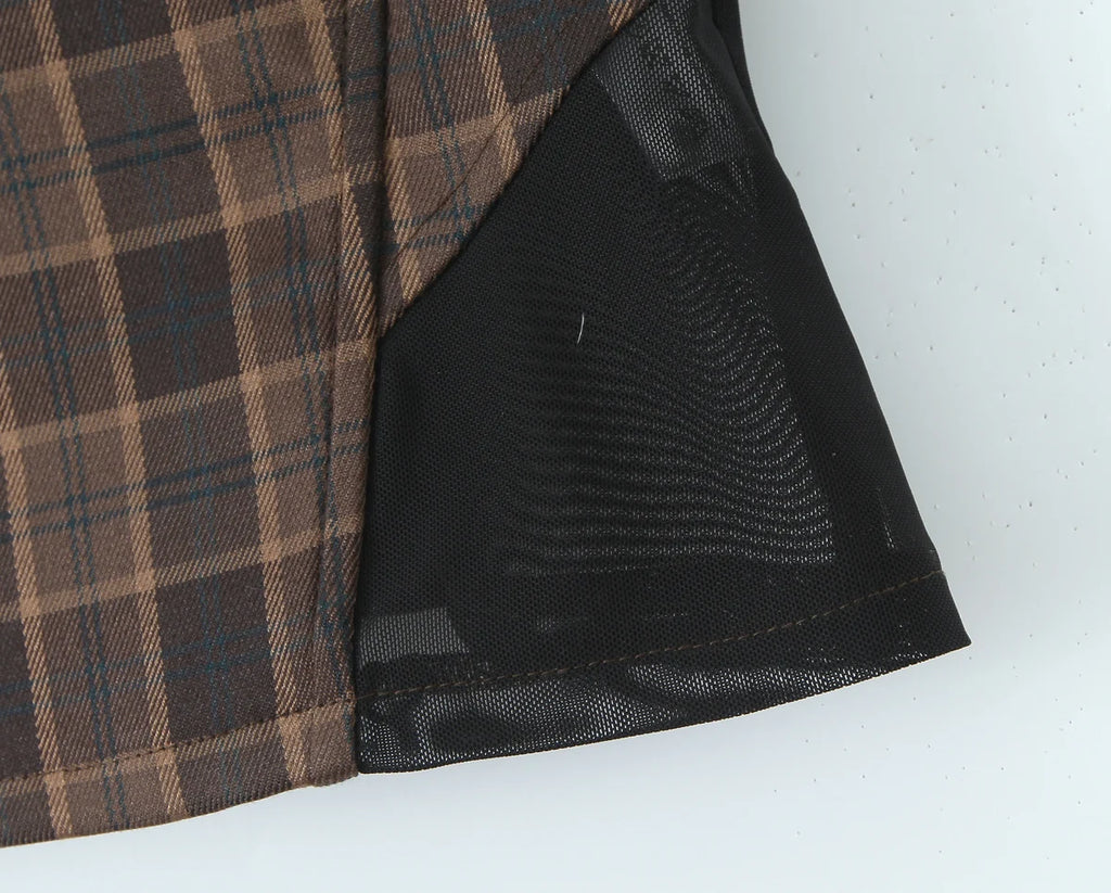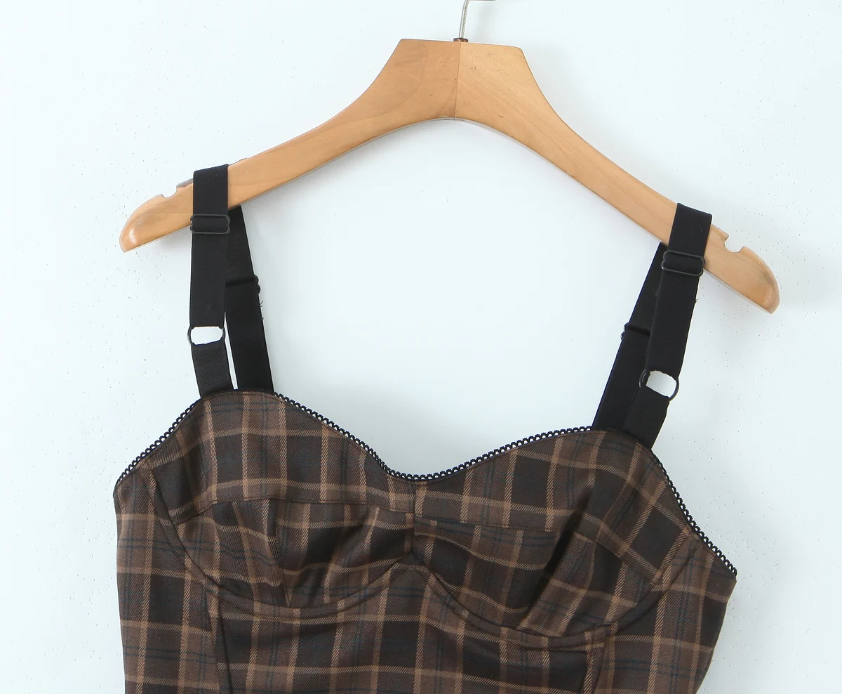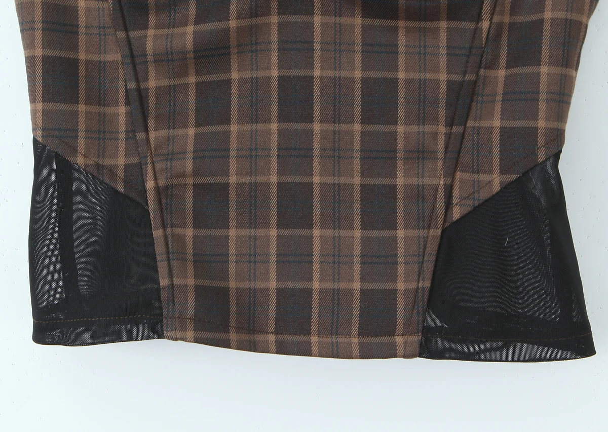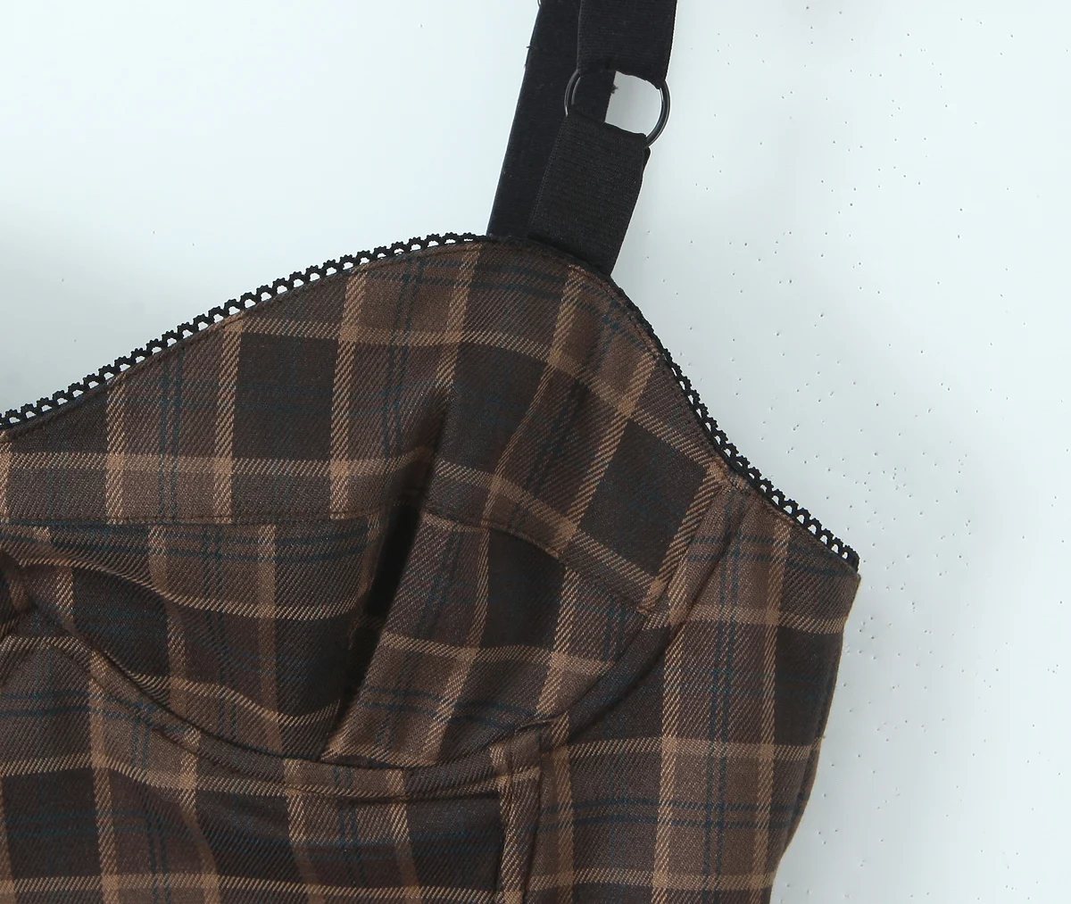 Purpdrank Sexy Ruched Wire Bra Coffee Plaid Camis Women Spliced Black Mesh Waist Back Zipper Crop Top Camisoles Bra Tank Vest