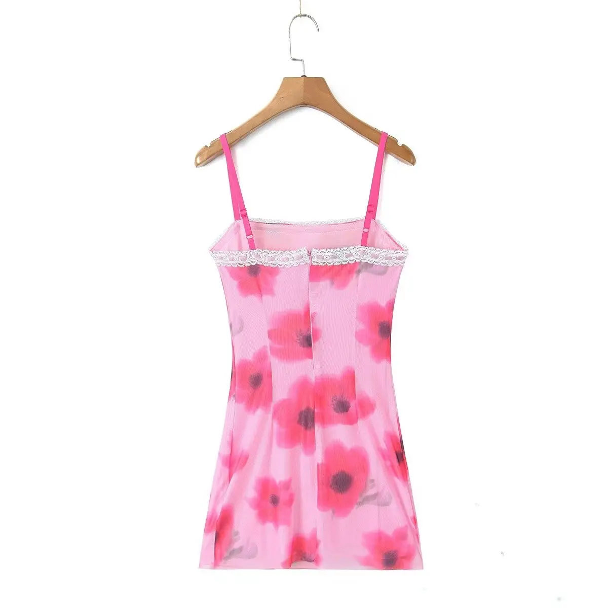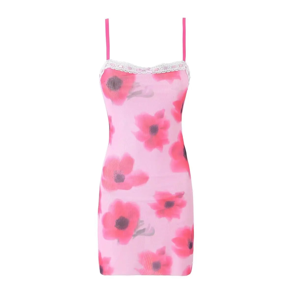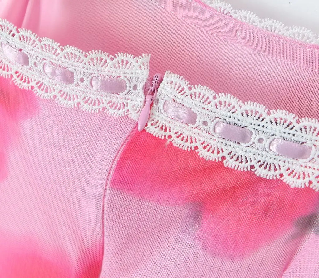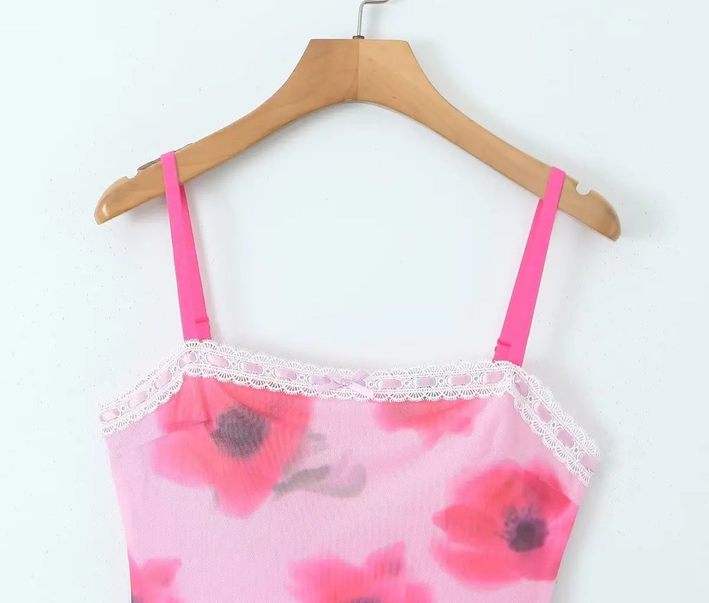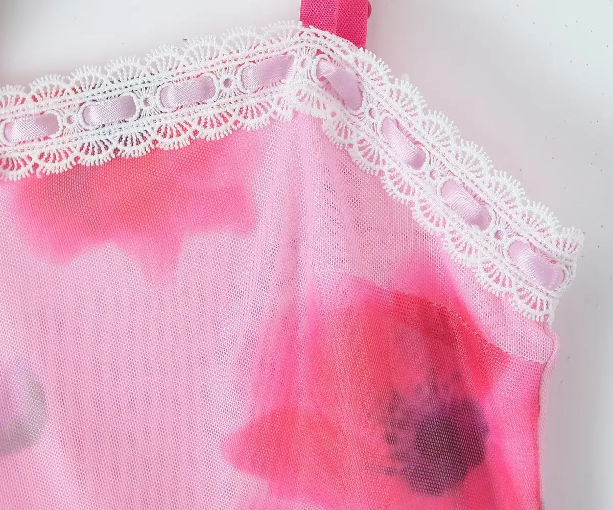 Purpdrank Sexy Spliced Lace Slash neck Tie-dye Flower Mesh Sling Dress Women Skinny Slim Waist Package Hips Backless Robe Vestidos