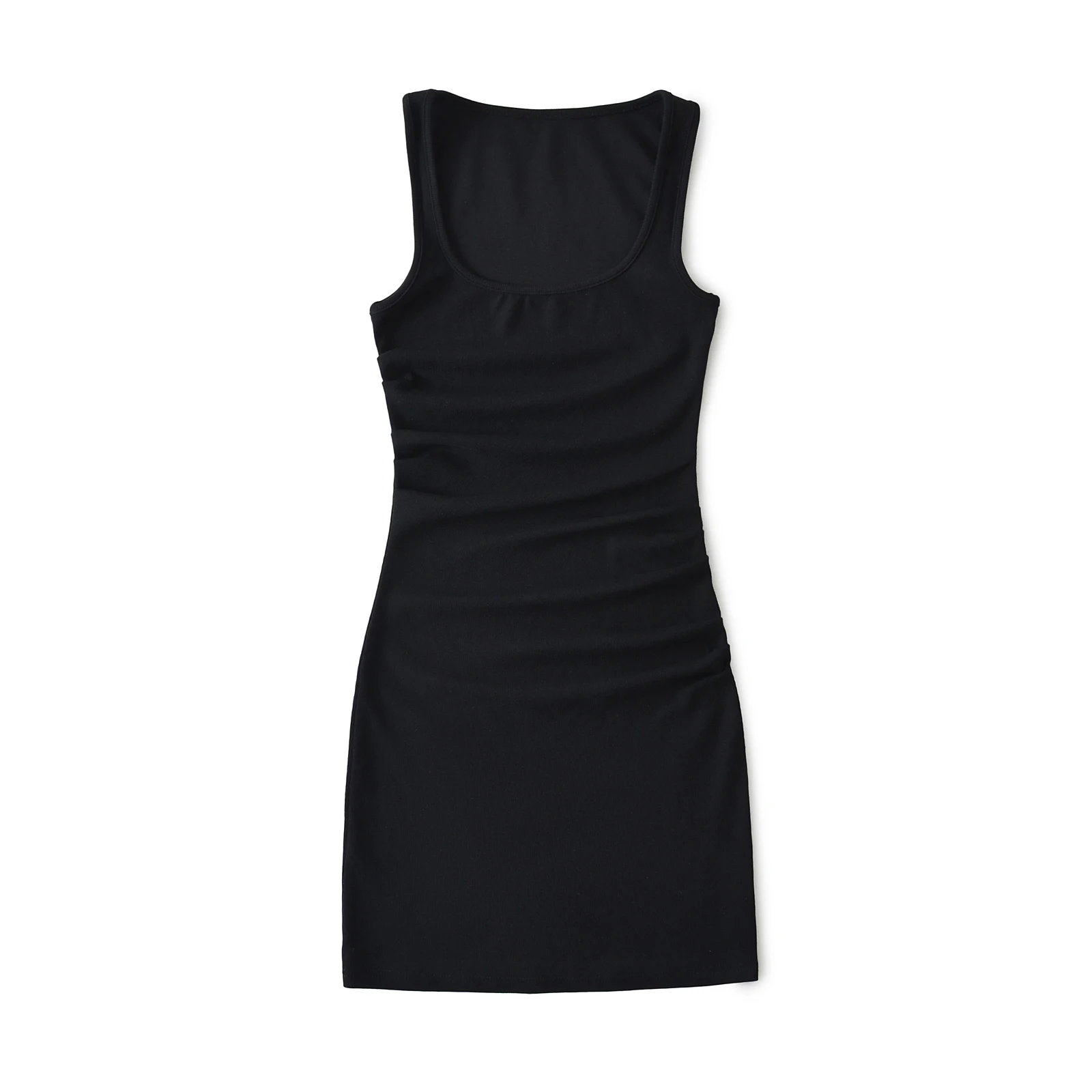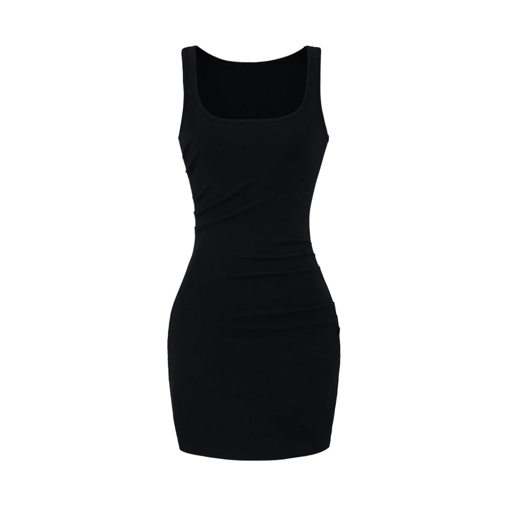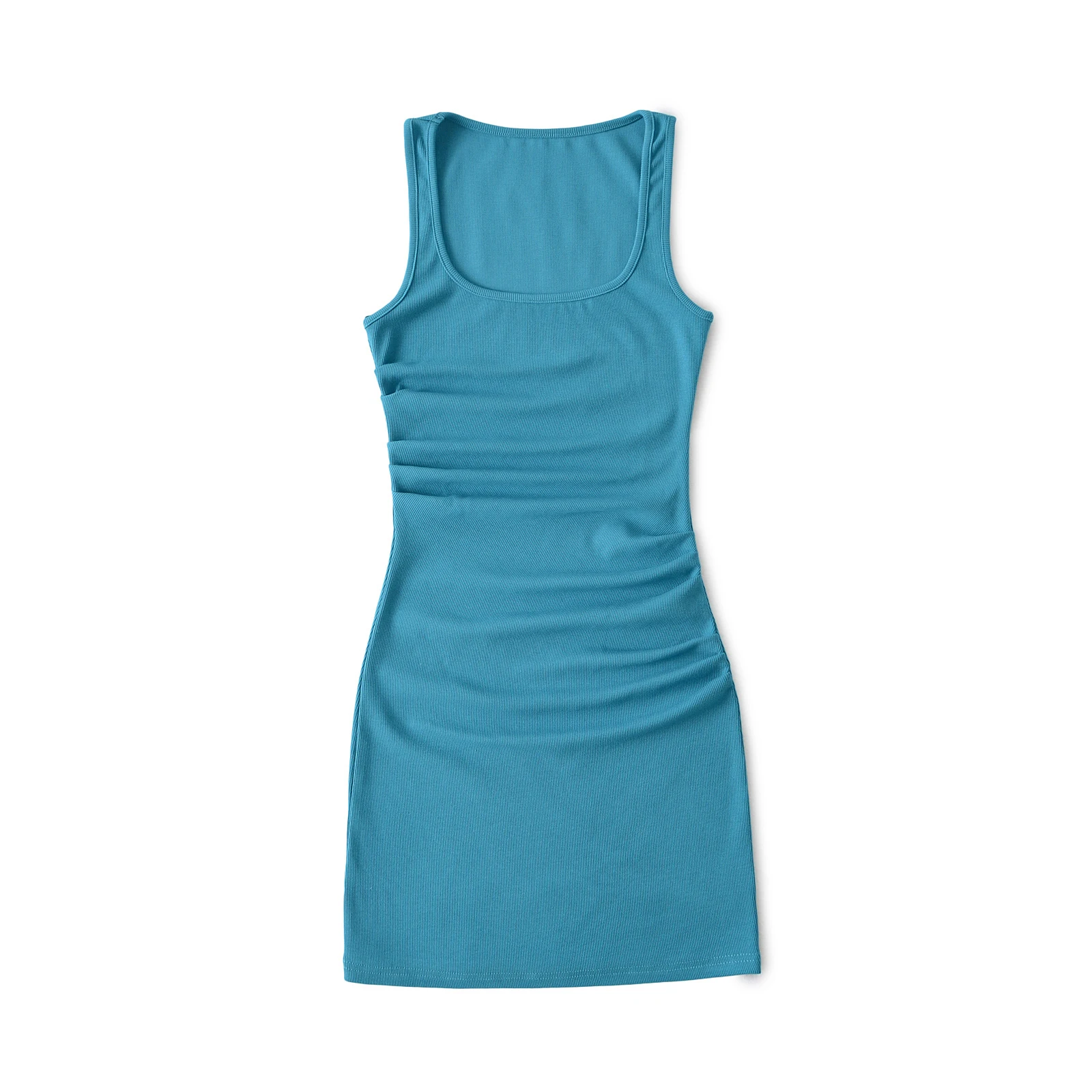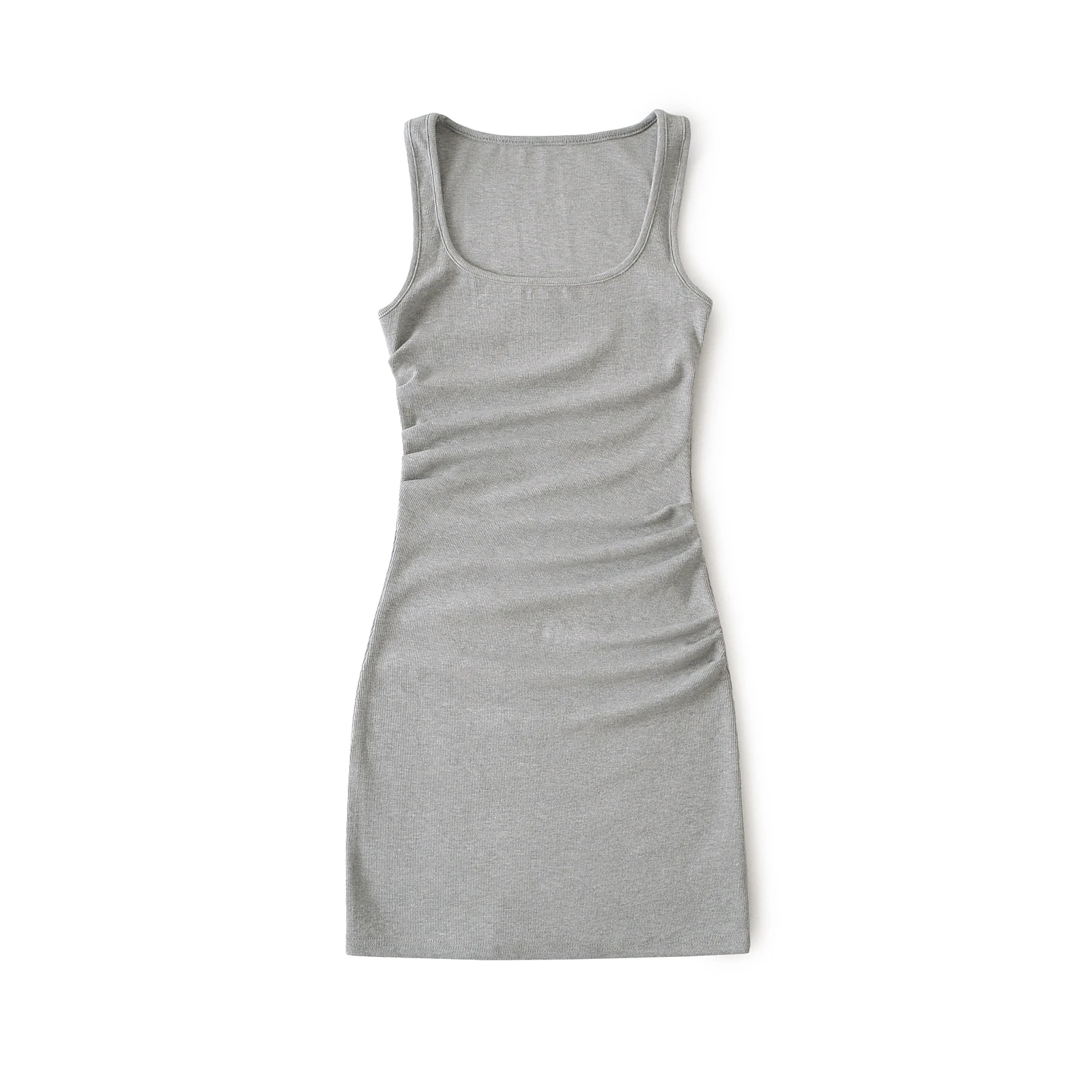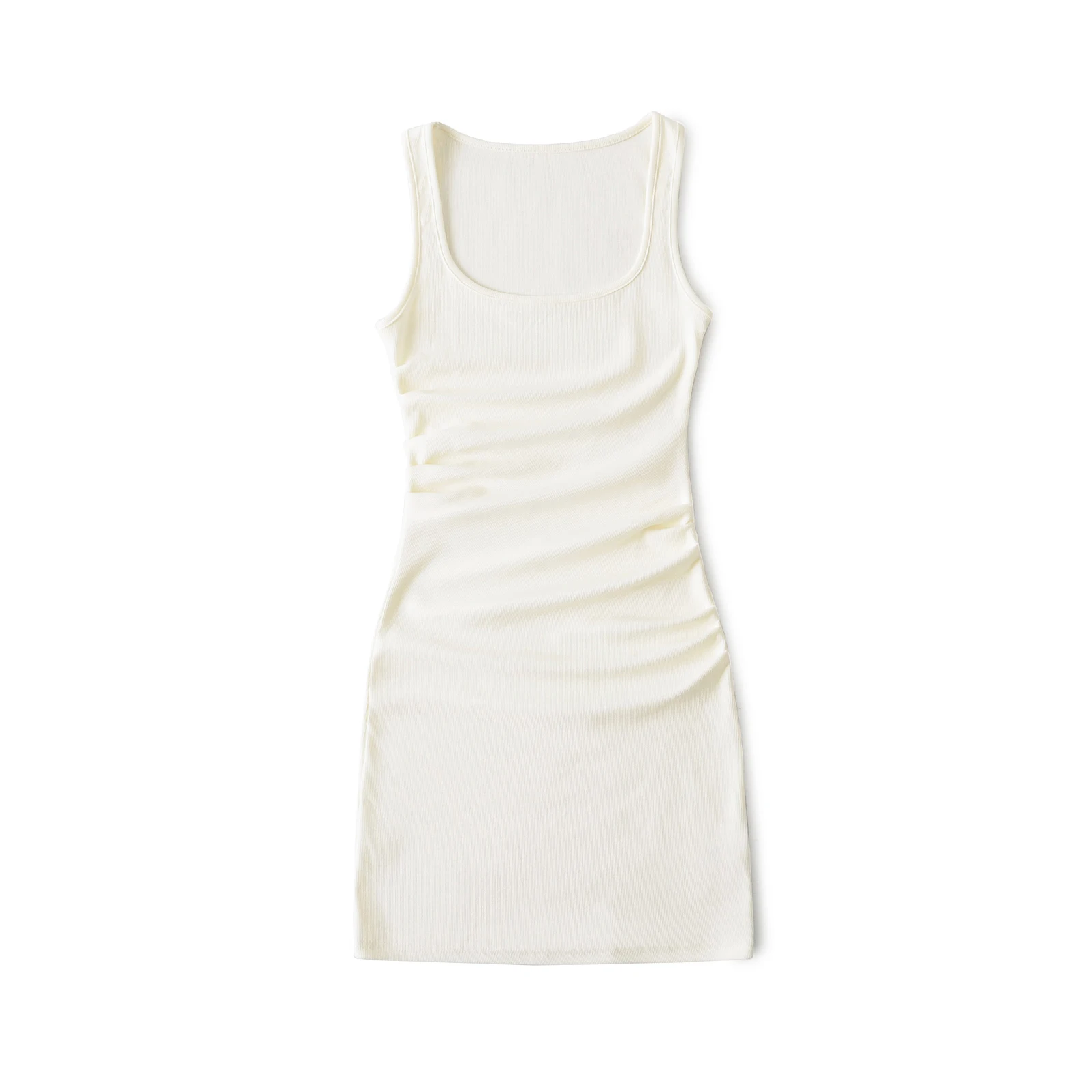 Purpdrank Sexy U Collar Rib Knitted Cotton Short Tank Dress Women Ruched Waist Sleeveless Stretch Basic Package Hips Robe Vestido