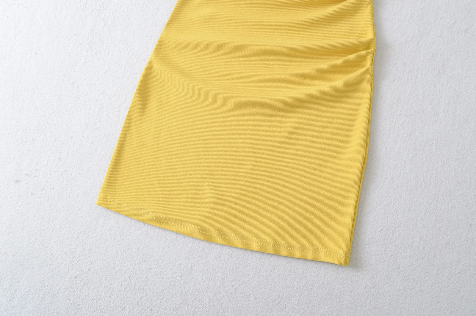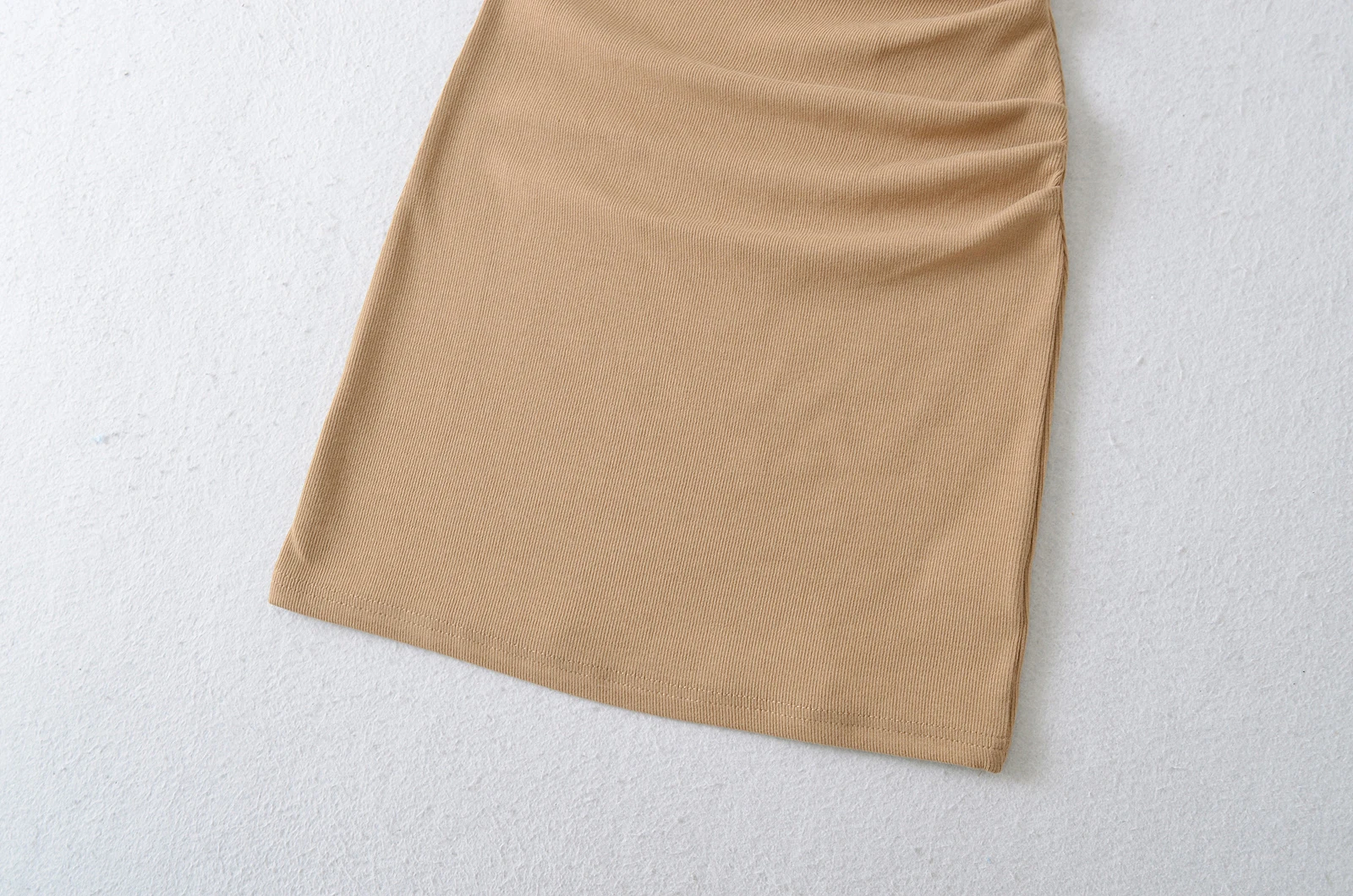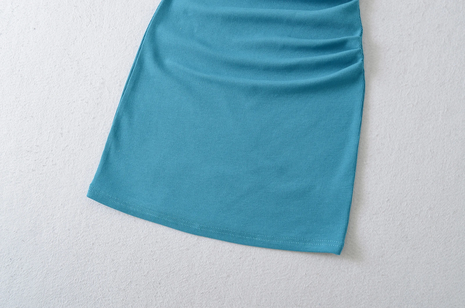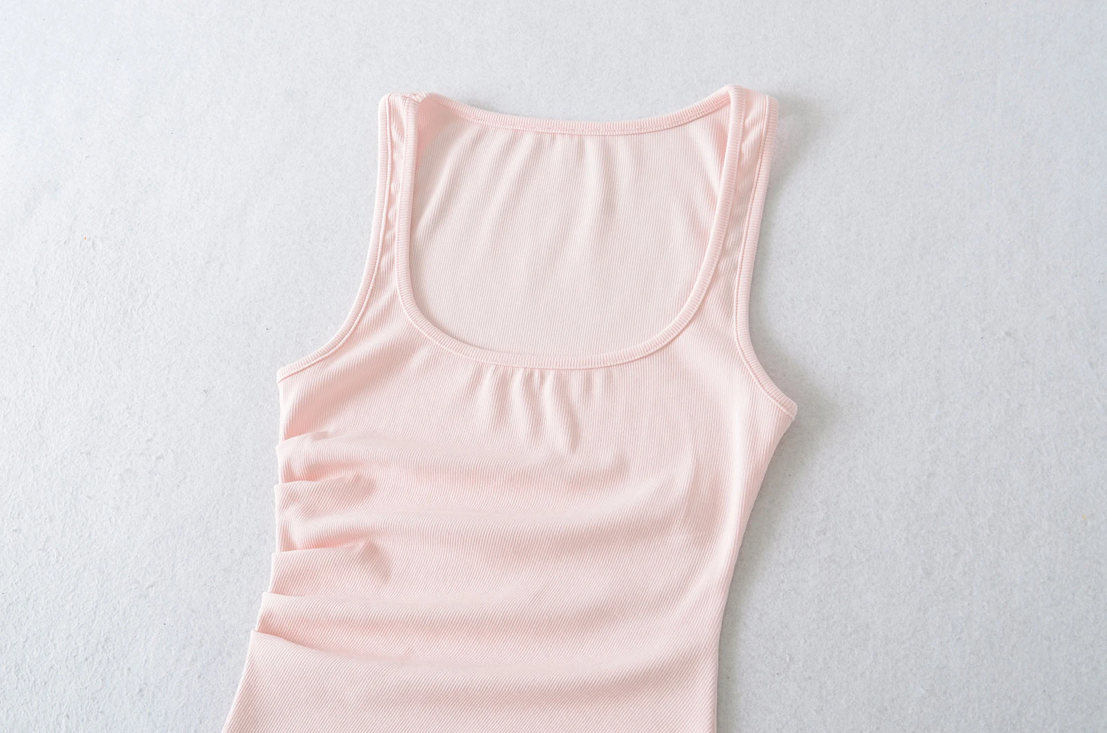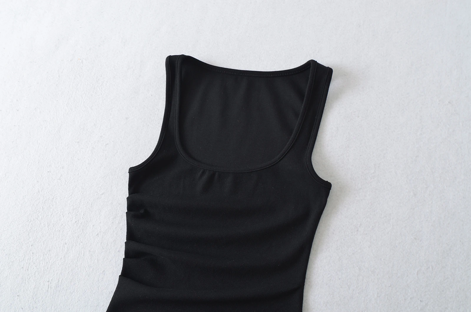 Purpdrank Sexy U Collar Rib Knitted Cotton Short Tank Dress Women Ruched Waist Sleeveless Stretch Basic Package Hips Robe Vestido