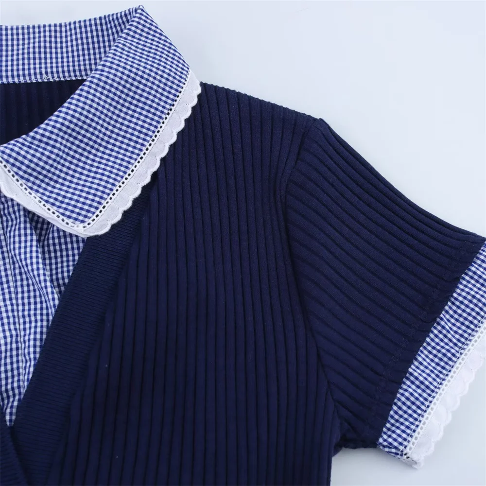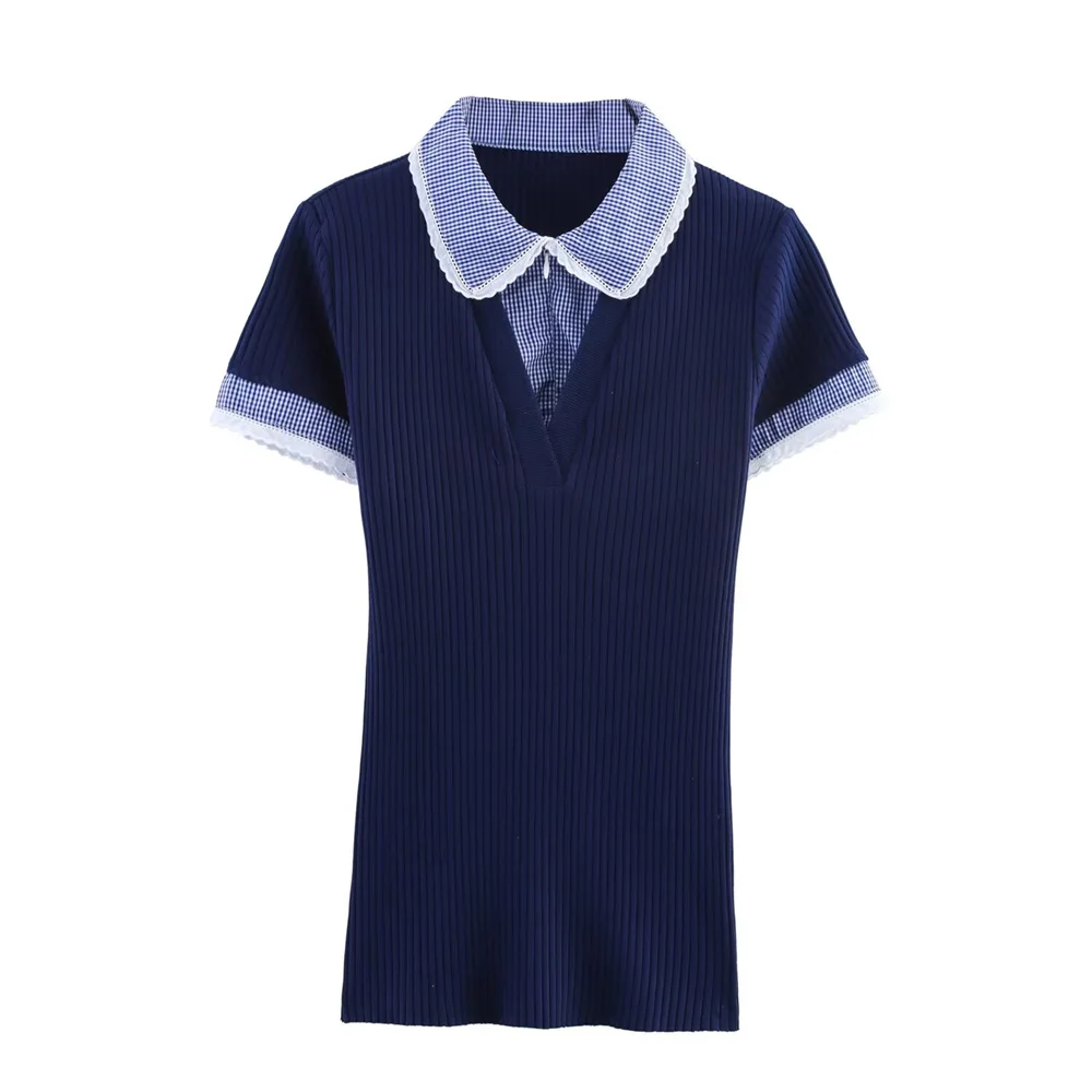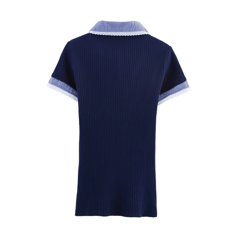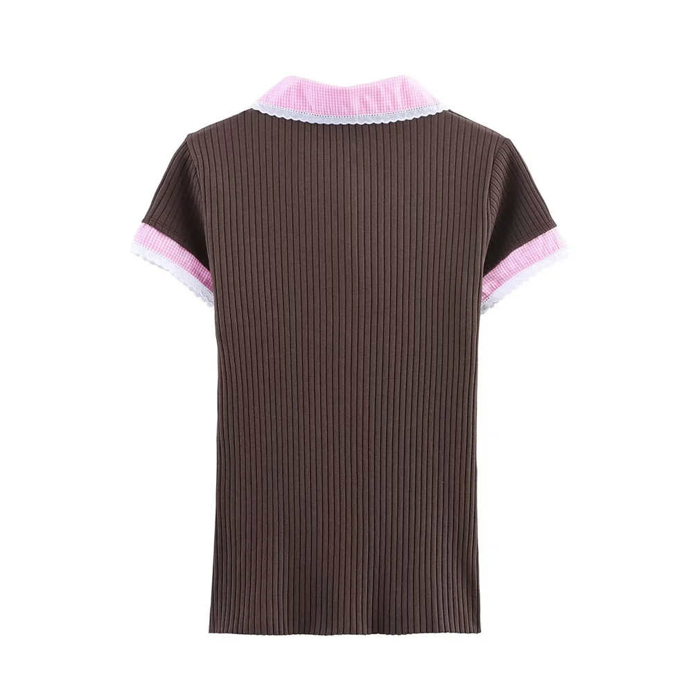 Purpdrank small round lapel short sleeved zipper decoration summer new women's fashion slim fit T-shirt
