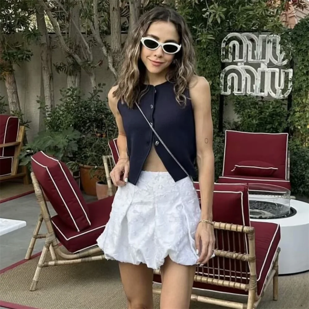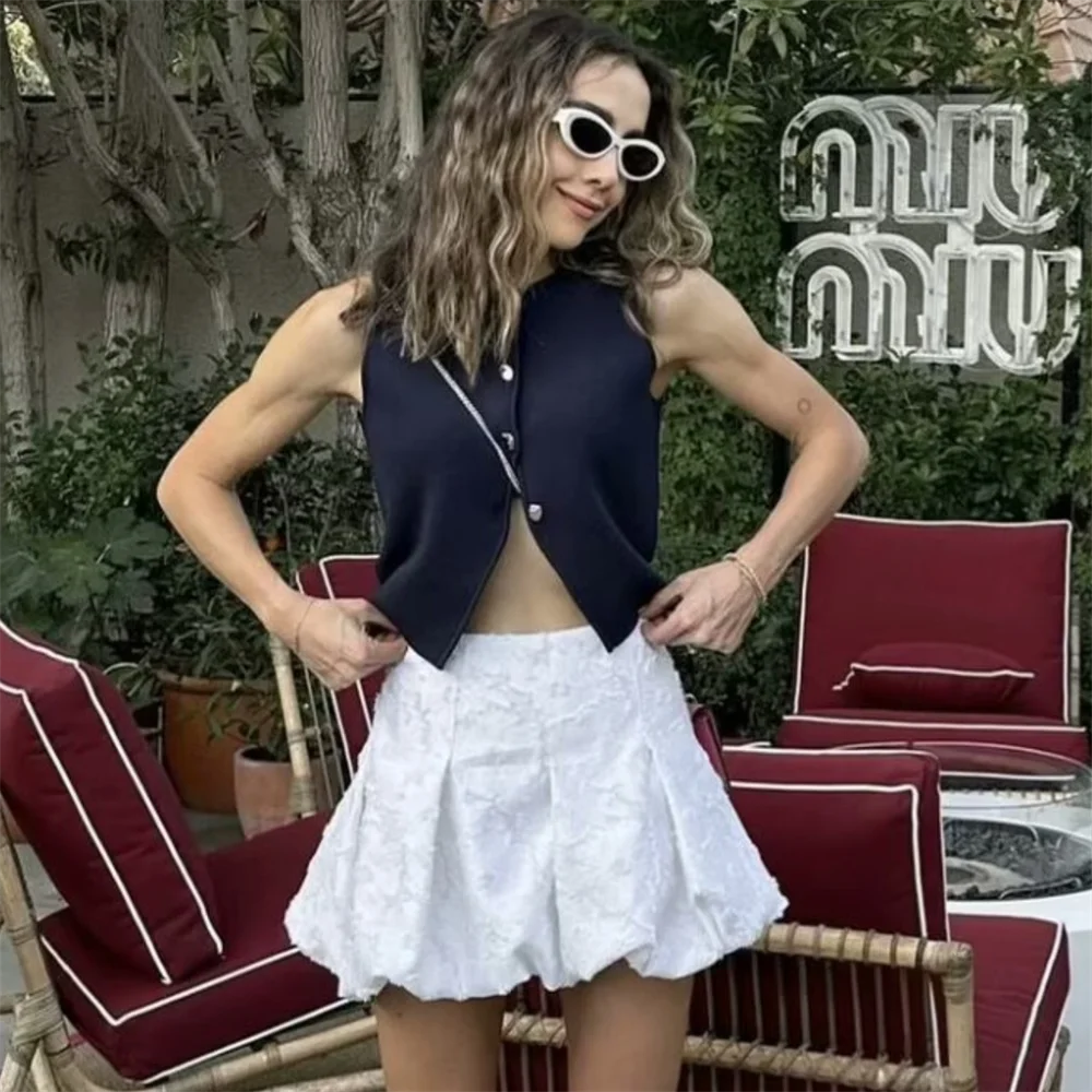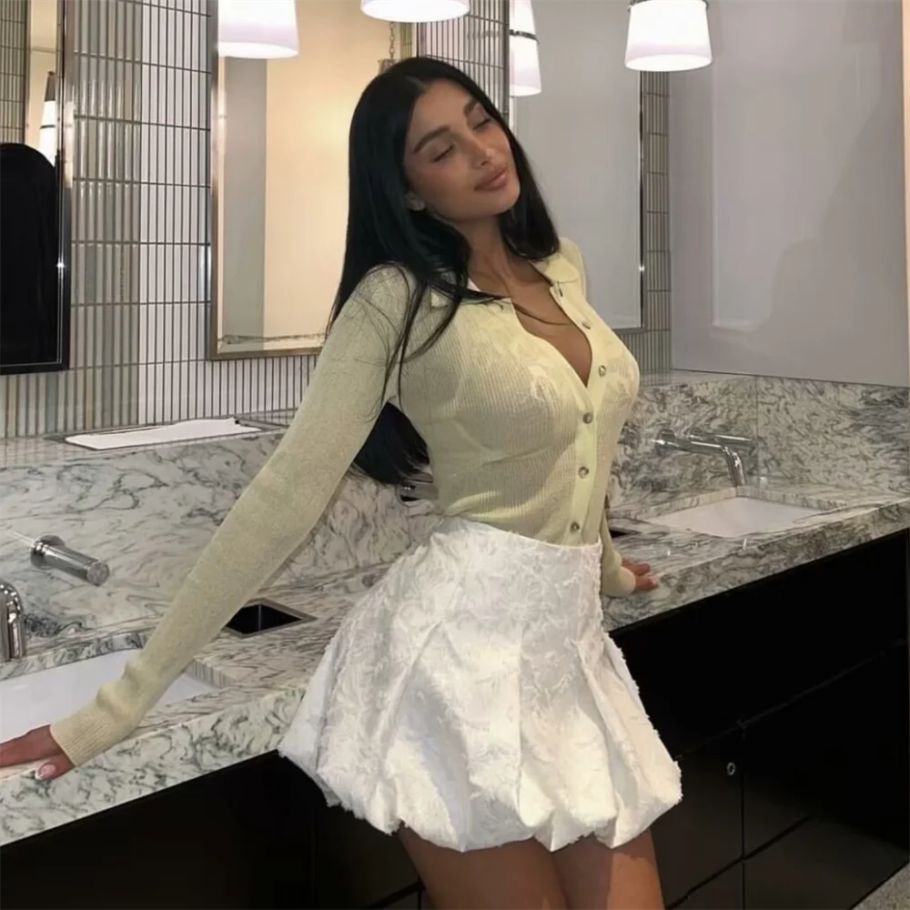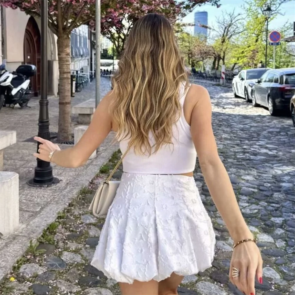 Purpdrank Spring New Women's Fashion and Elegance Slim Fit Versatile Jacquard Lantern Mini Skirt