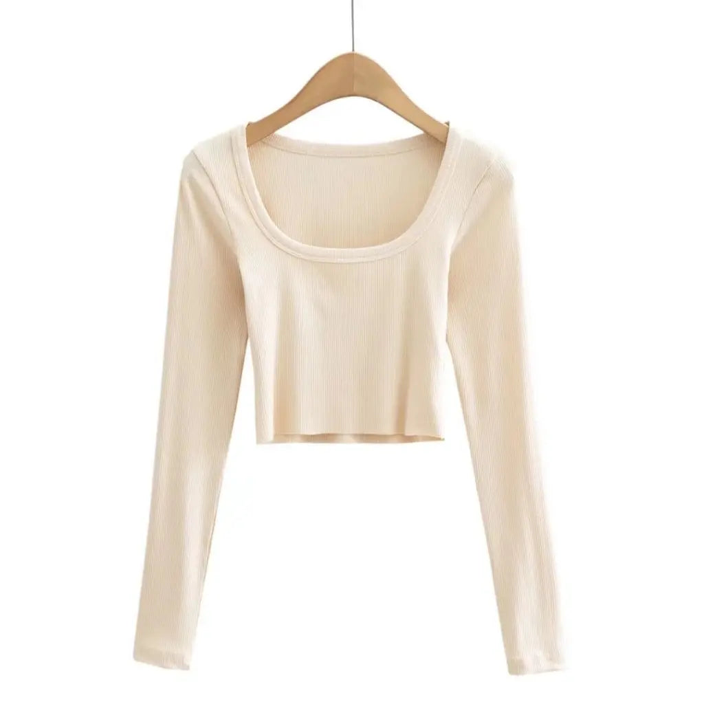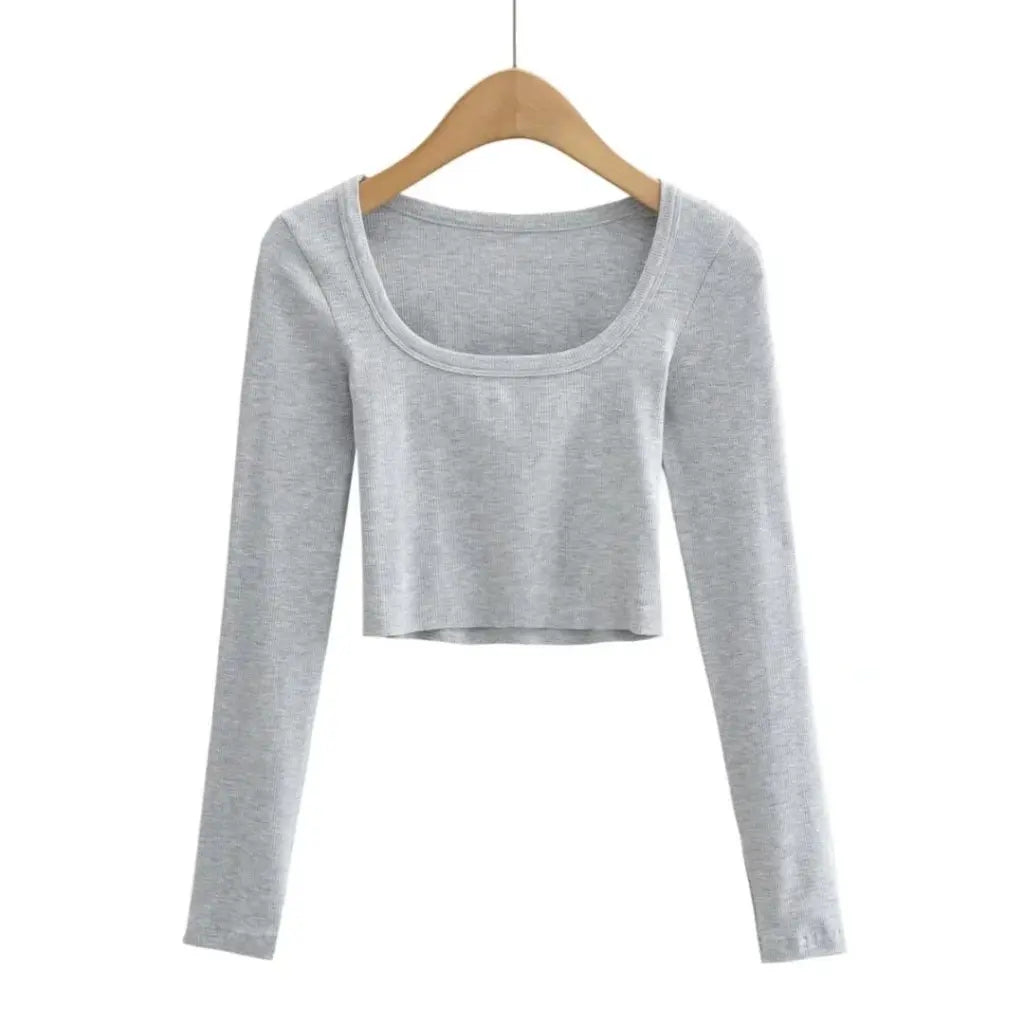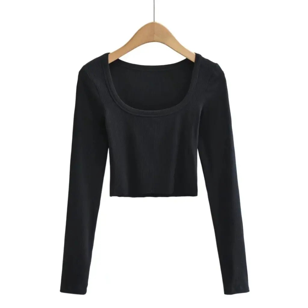 Purpdrank Spring Solid Color Threaded Long-Sleeved T-Shirt Square Neck Slim Fit Hot Girl Top European American Fashion