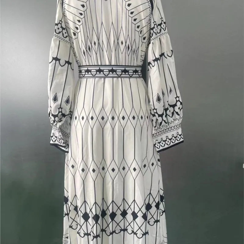 Purpdrank Spring Women Vintage Long Dress Print Sashes Lantern Long sleeve Dresses Female Summer Elegant Fashion Office Lady Clothes
