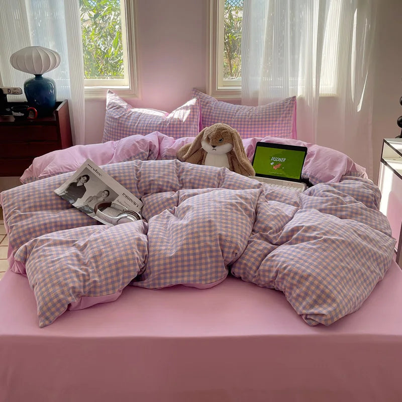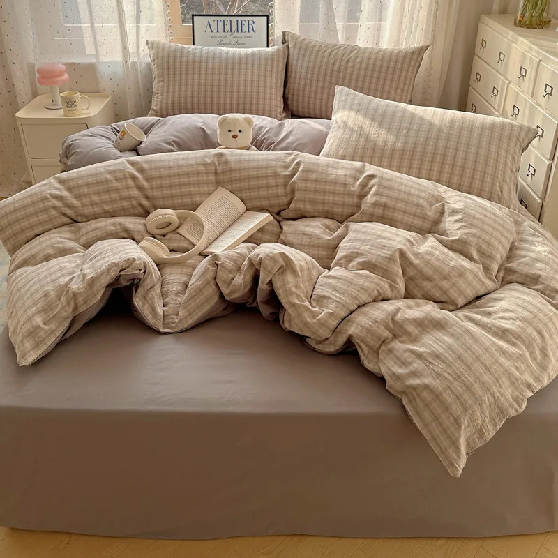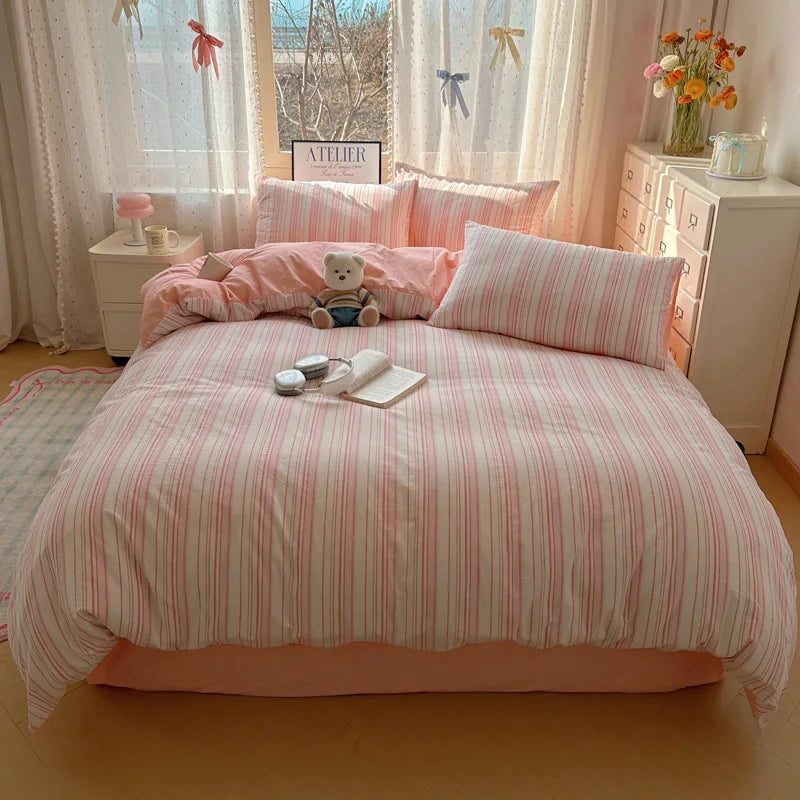 Purpdrank Striped Bedding Set INS Nordic Girls Soft 100% Cotton Bed Sheet Queen King Size Duvet Set Comforter Set Pillowcase Bed Linens