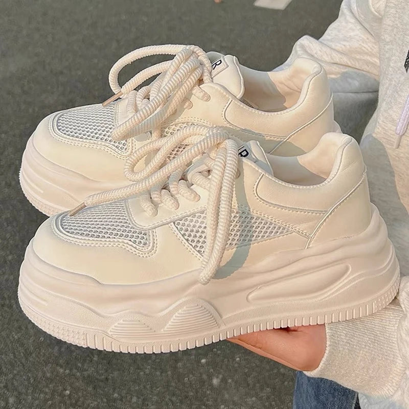 Purpdrank Summer Hollow Out Thick Bottom Vulcanized Shoes Woman Chunky Platform White Sneakers Women Comfortable Lace Up Sports Shoes