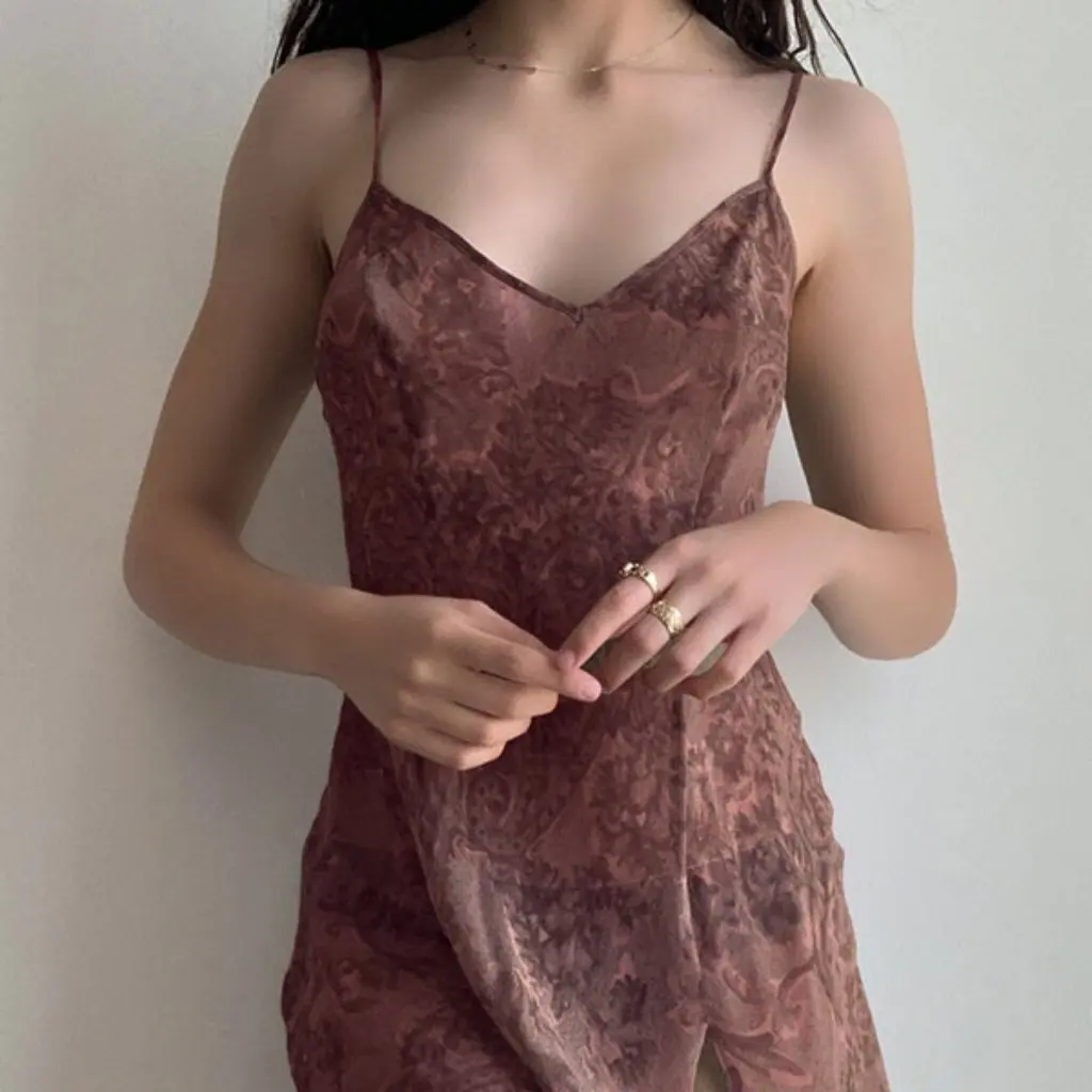 Purpdrank Summer New Sexy Perspective Split Sling Dress European And American Style Loose Sleeping Dress for Women