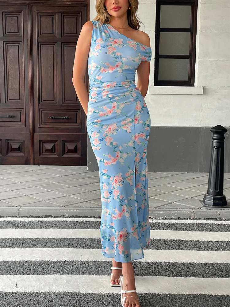 Purpdrank Summer New Women's Dresses Streetwear Fashion Print Split Print Maxi Dresses Sexy Female Casual Slim Knitted Dresses Clothing