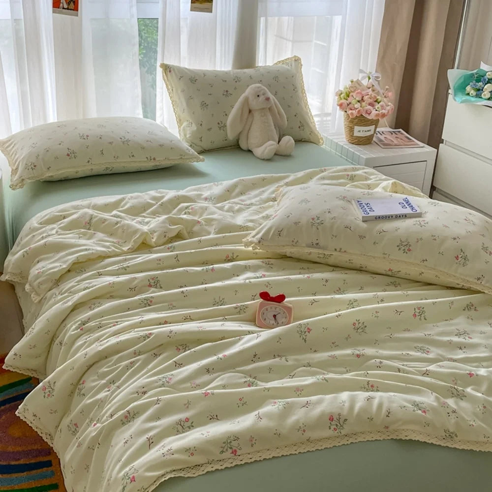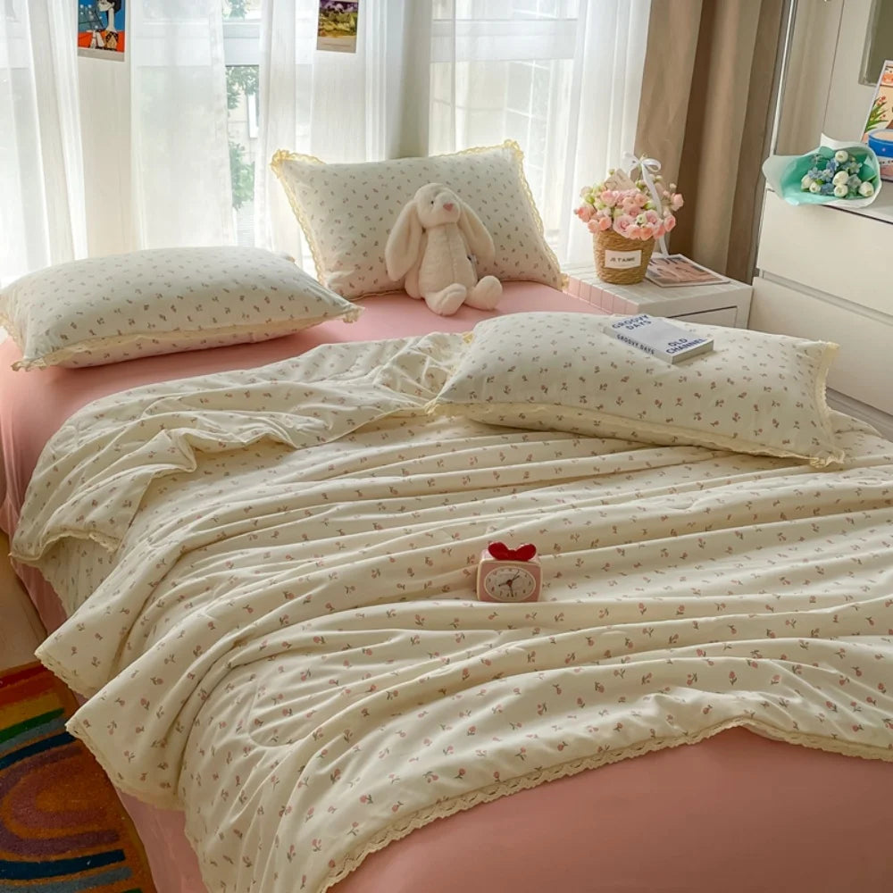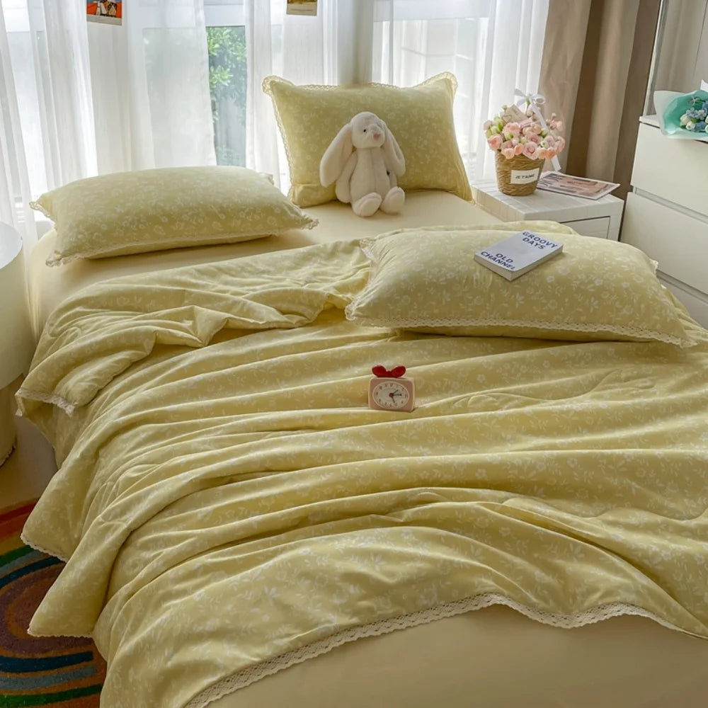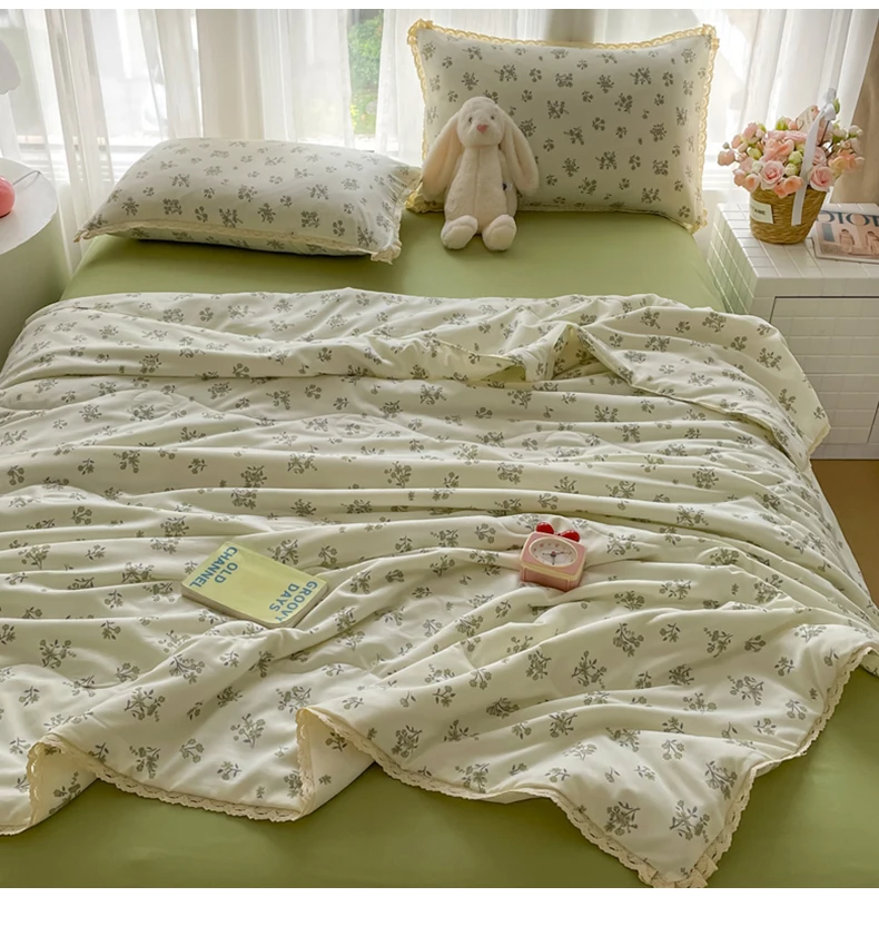 Purpdrank Summer Quilt Four Piece Set Floral Printed Soft Bedroom Decor Bedding Set Summer Quilt Bed Sheet With Pillowcases Home Textiles