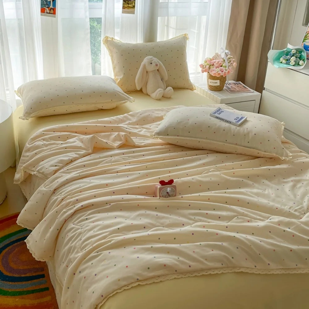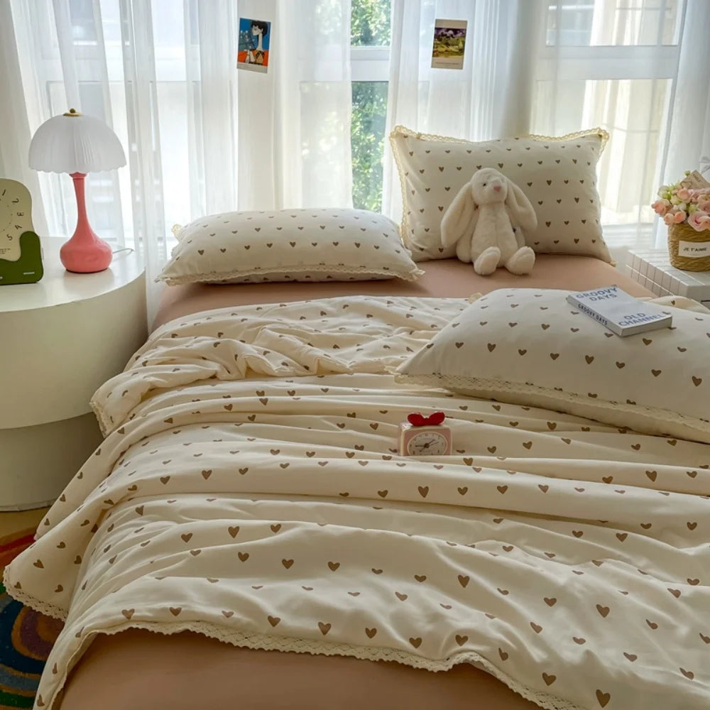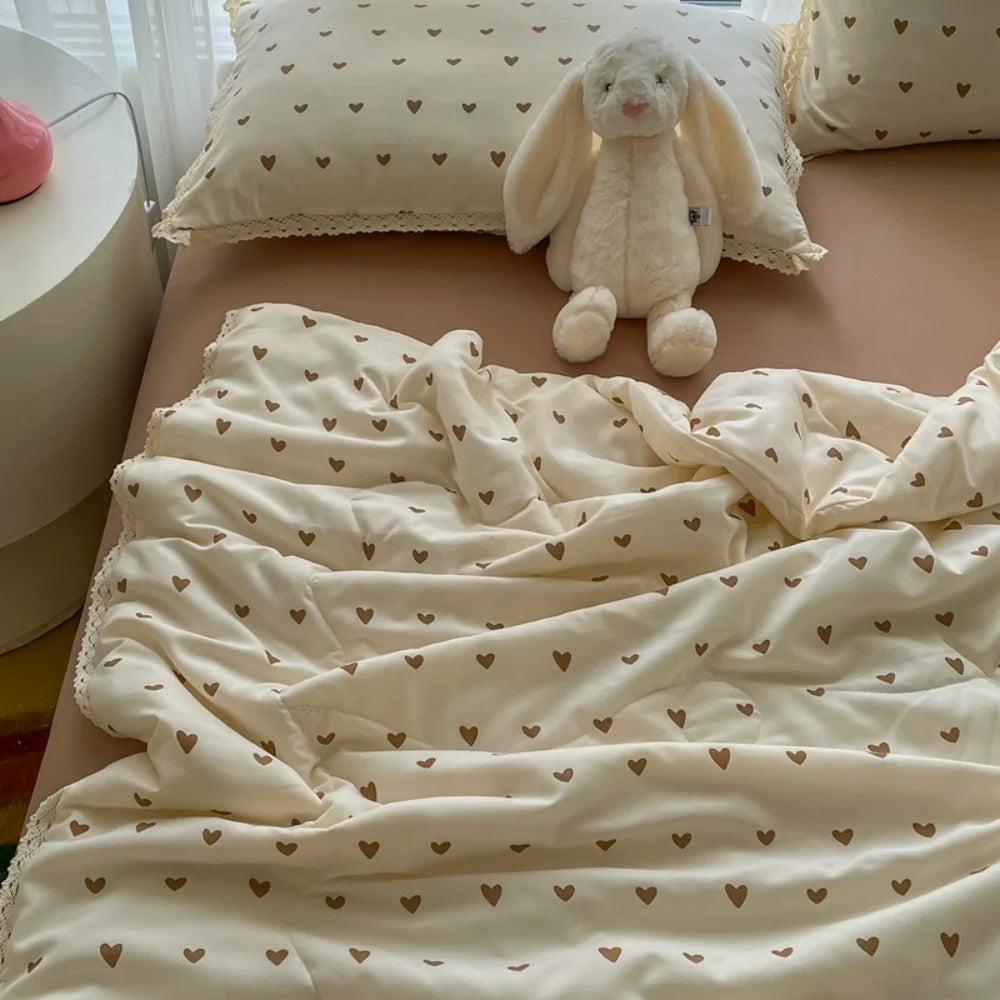 Purpdrank Summer Quilt Four Piece Set Floral Printed Soft Bedroom Decor Bedding Set Summer Quilt Bed Sheet With Pillowcases Home Textiles