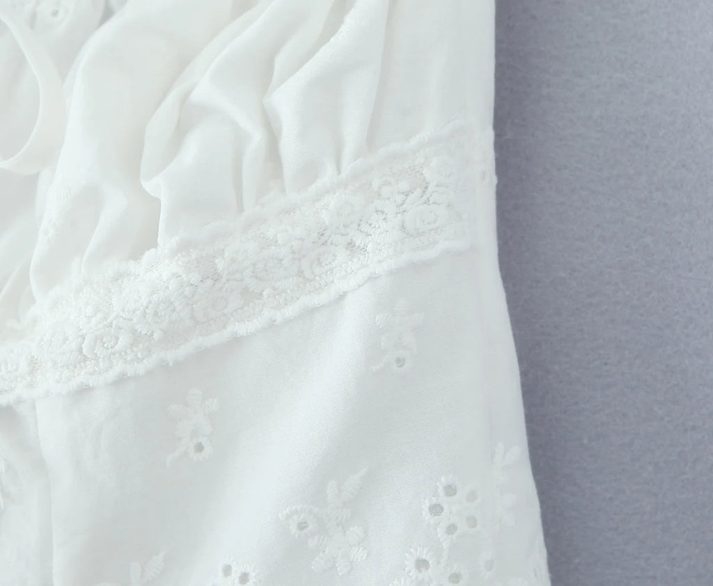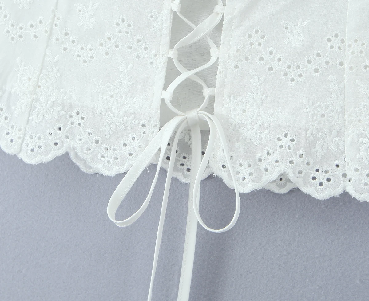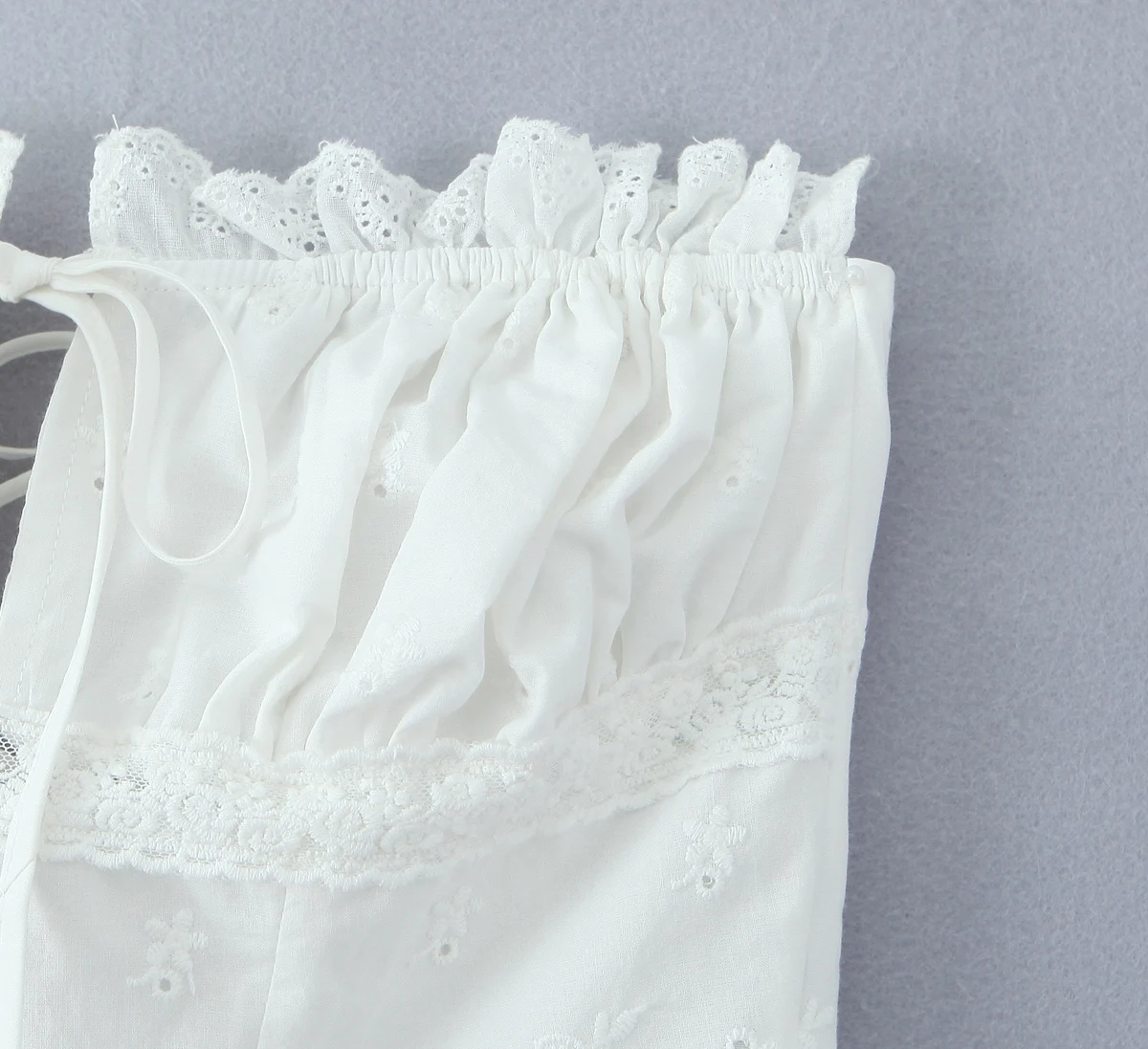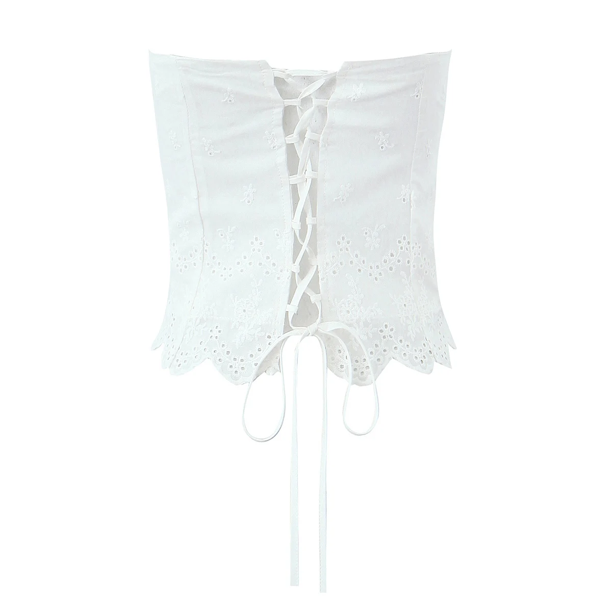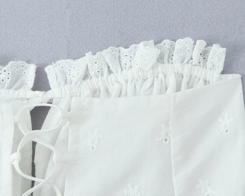 Purpdrank Summer White Embroidery Hollow Out Hole Wood ears Bow Ruched Chest Corset Camisole Women Cross Lacing up Bow Back Tank Top
