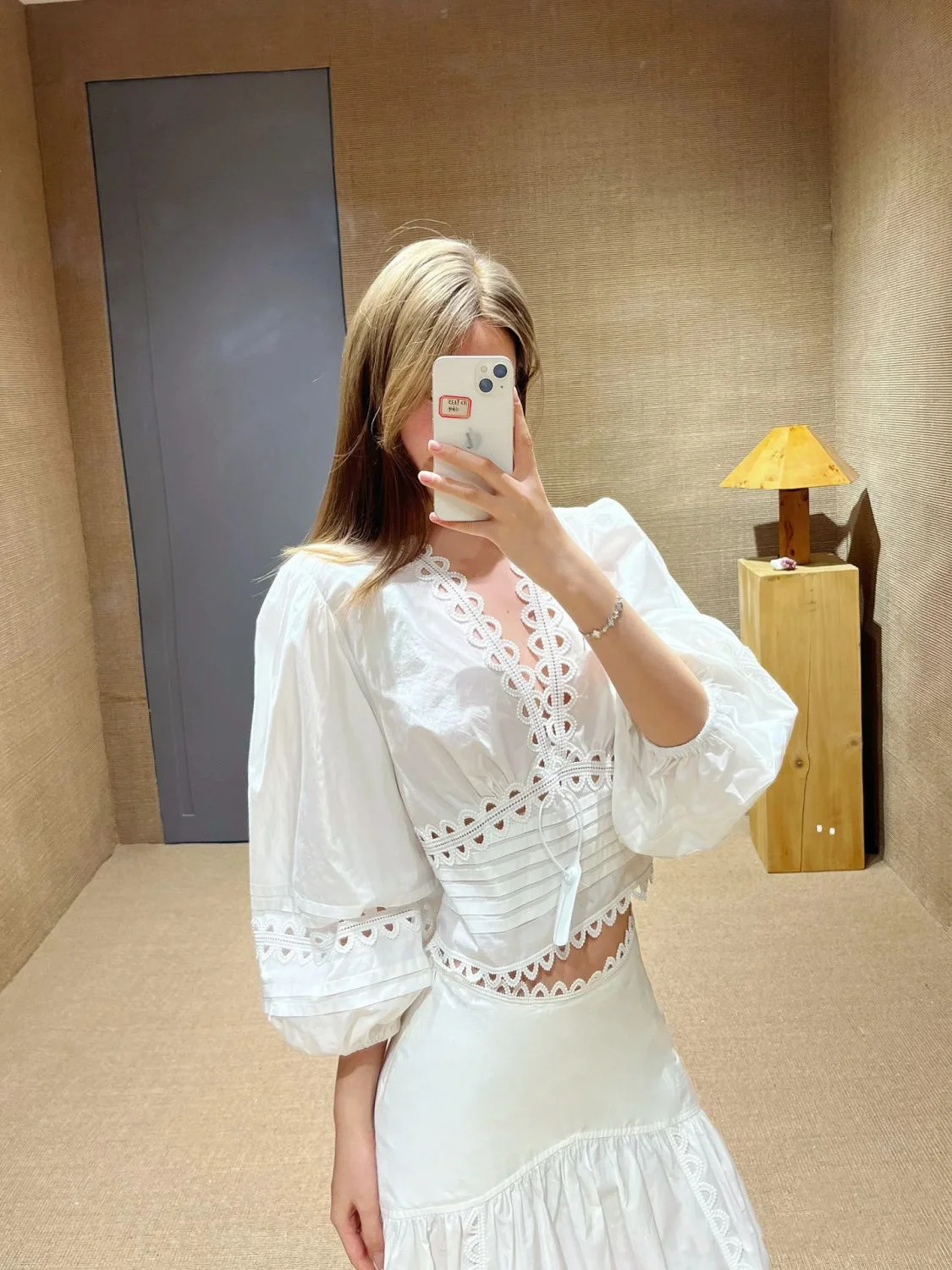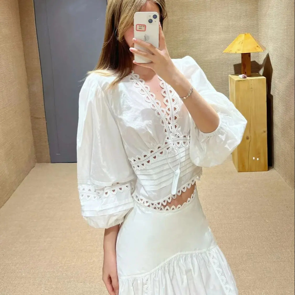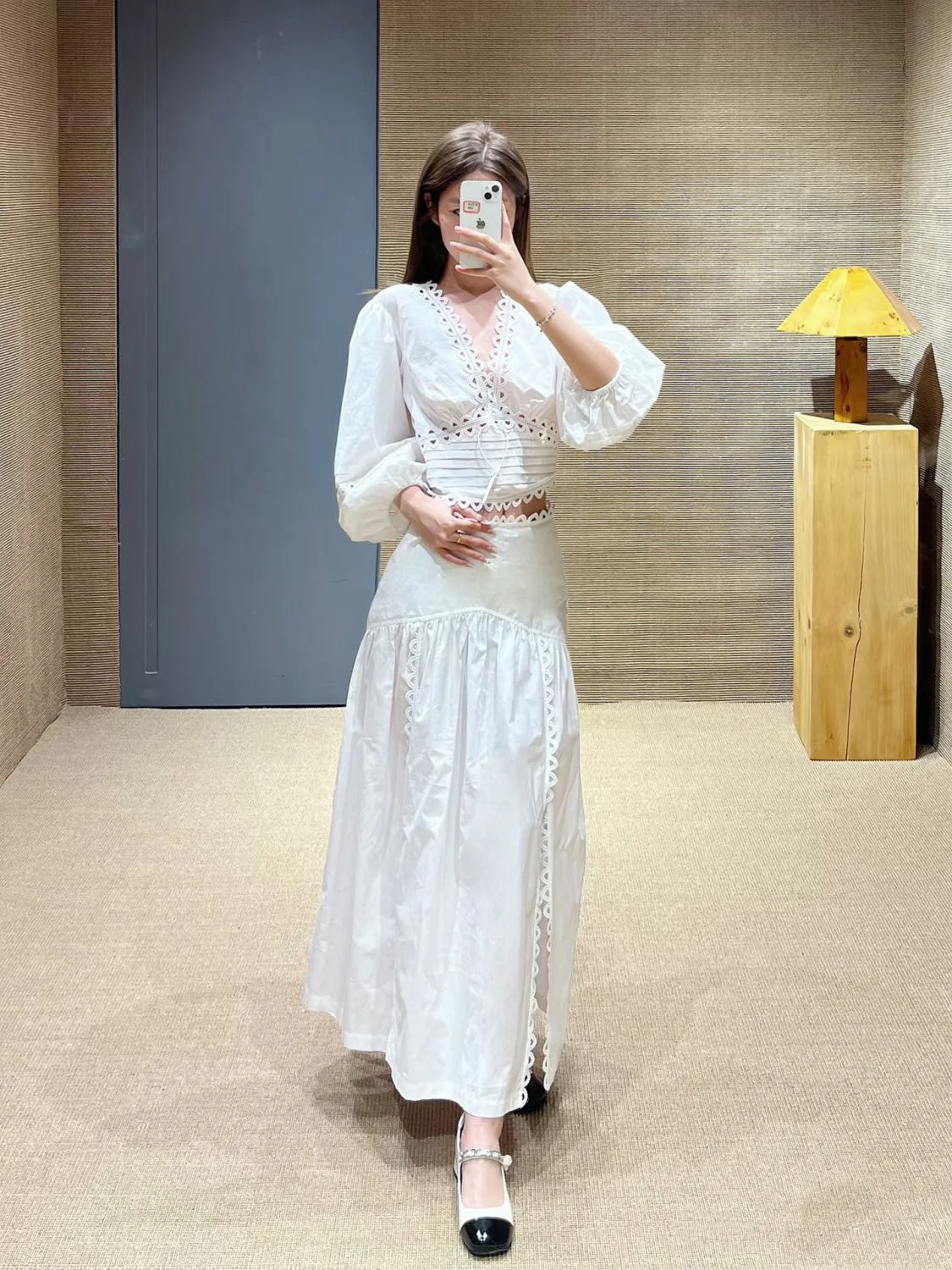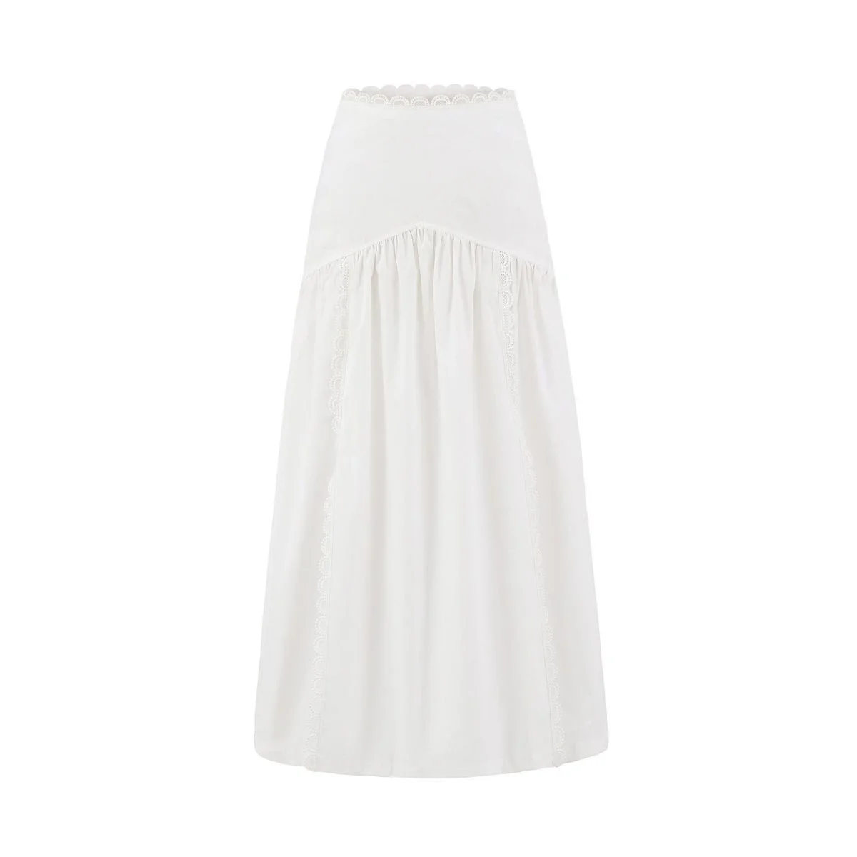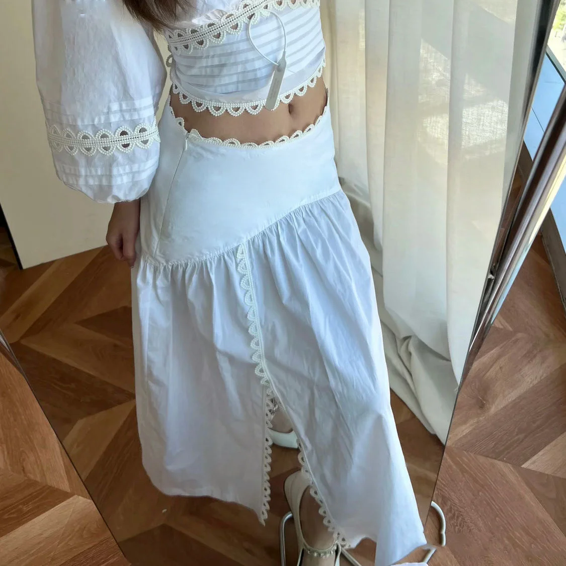 Purpdrank Summer White Lace Slit Skirt French Elegant Folds Long Skirt Balletcore Y2k High Waist Loose a-Line Skirt Mujer Faldas 514A