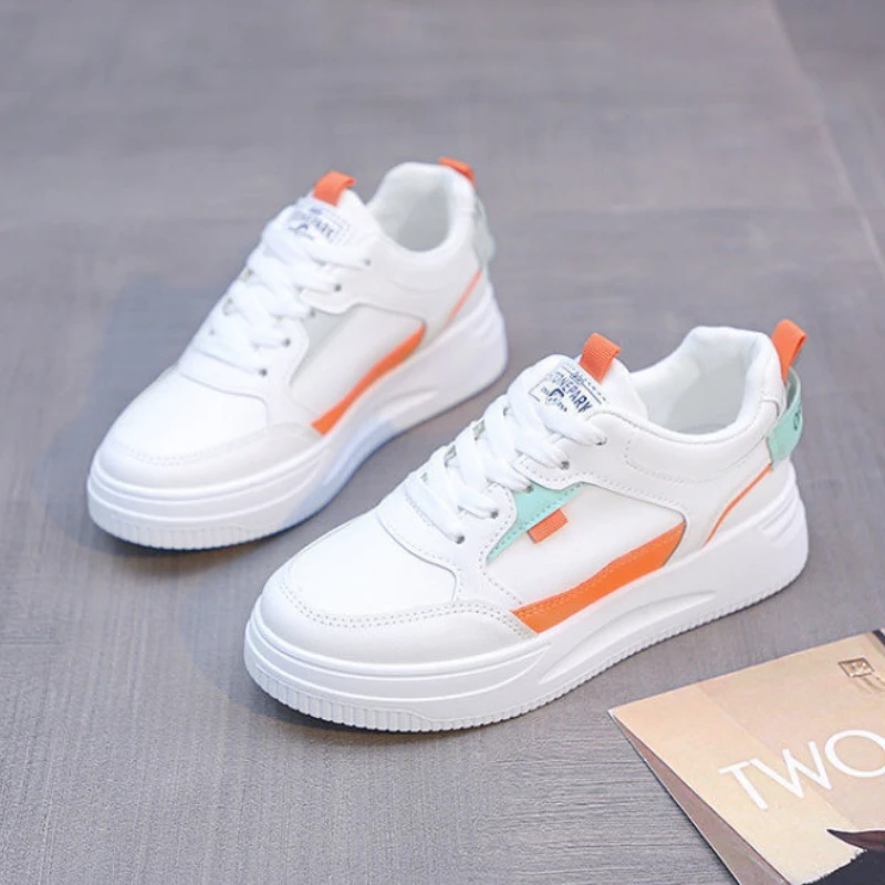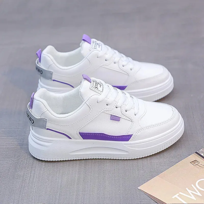 Purpdrank Trendy Versatile Women's Shoes Autumn New Breathable Color Blocked Leather Surface Casual Vulcanized Women's Single Shoes