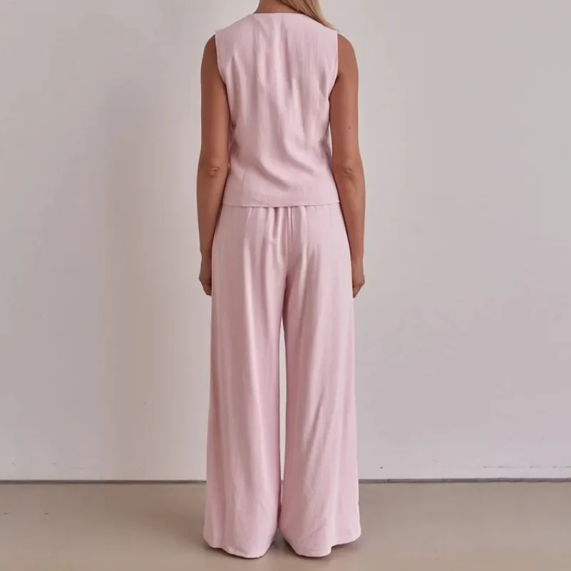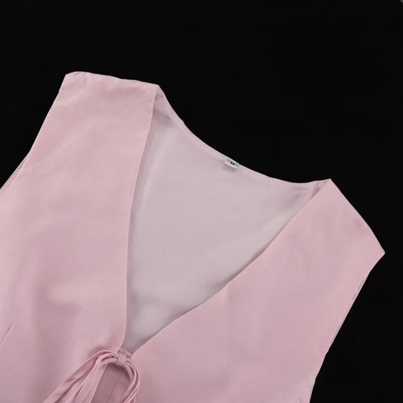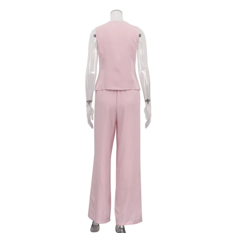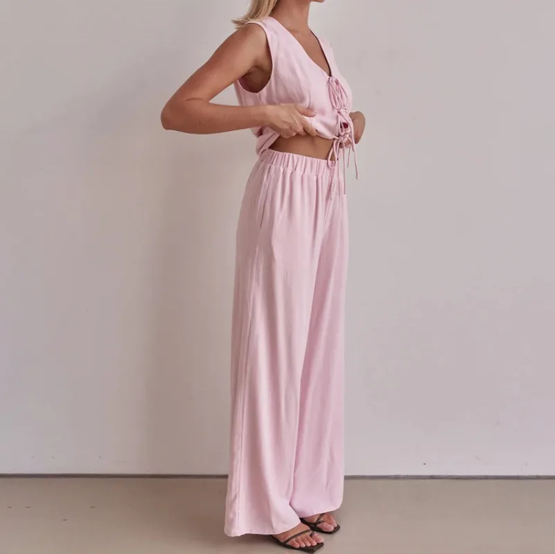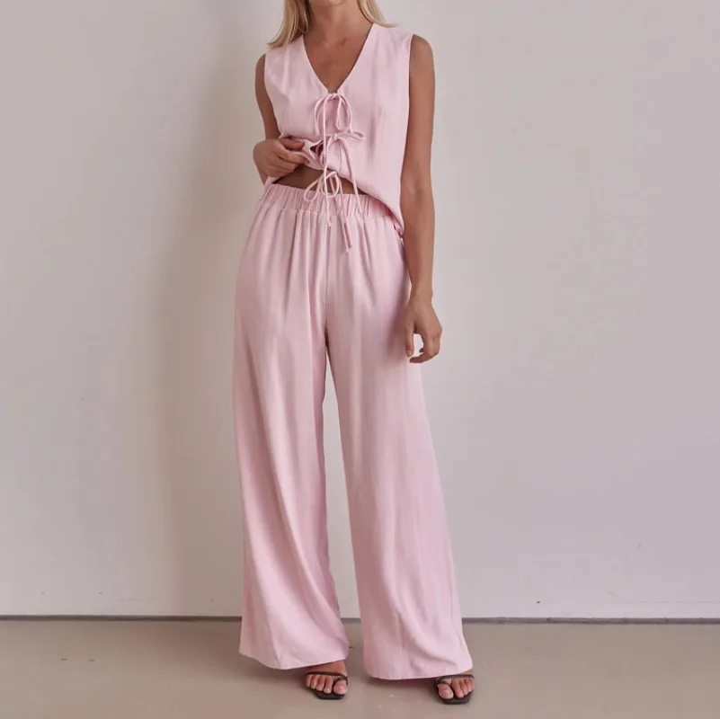 Purpdrank Trousers Suit Office Lady Outfits Elegant Women Loose Two Piece Set Sleeveless Lace Up Vest Top Elastic Waist Wide Leg Pants Set
