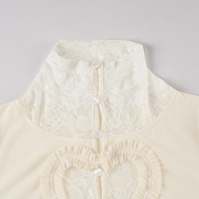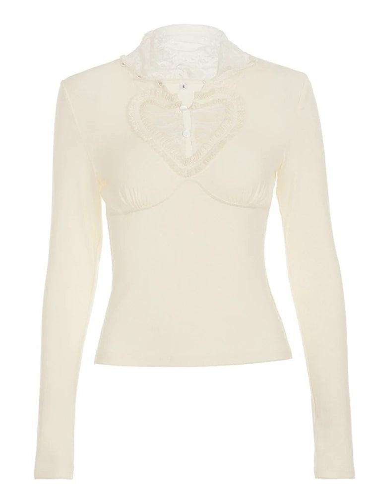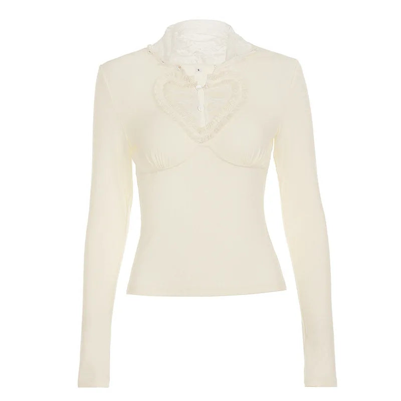Purpdrank Vintage Court Style Embroidery Hollow Out Turtleneck Long Sleeve Y2k All Match T-Shirts
