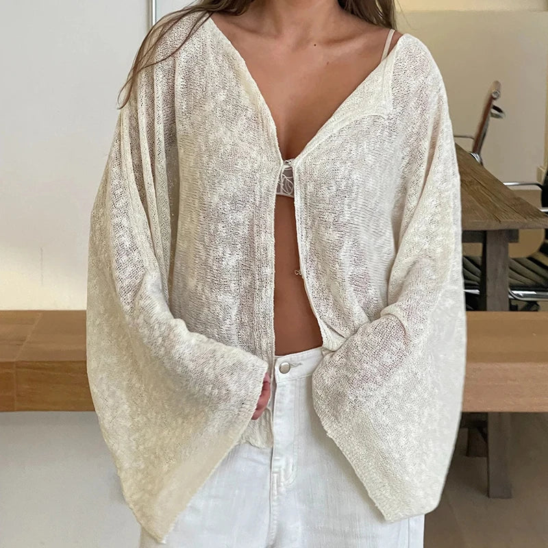 Purpdrank Women Loose Fit Cardigans Smocked Tops Y2k Front Hook Button V Neck Knitted Sweater Autumn Long Sleeve Knitwear Streetwear