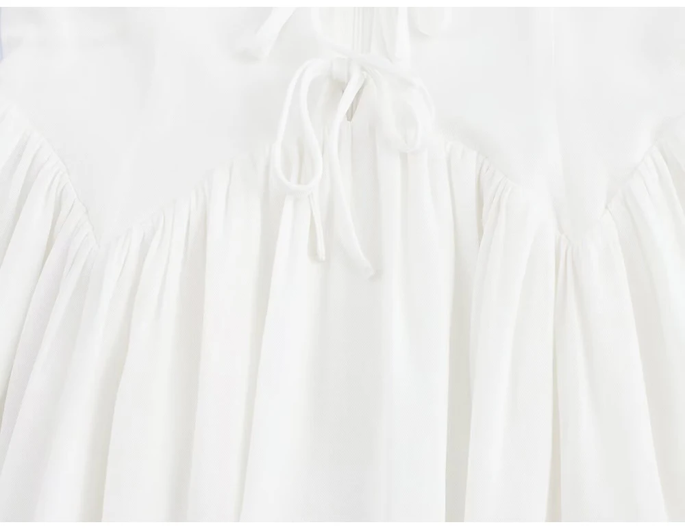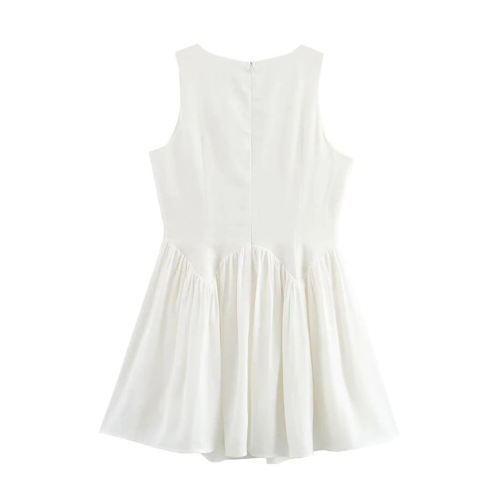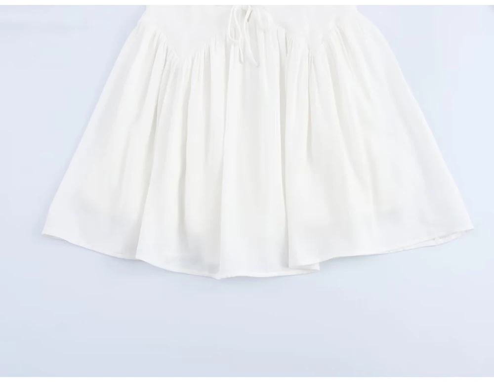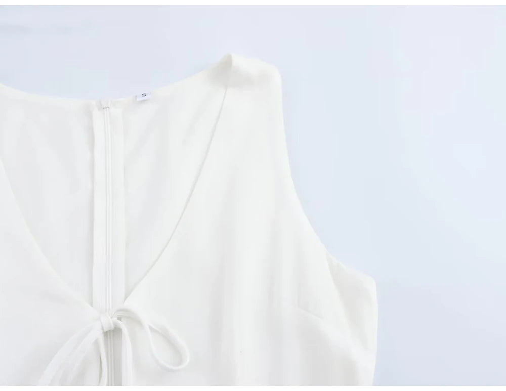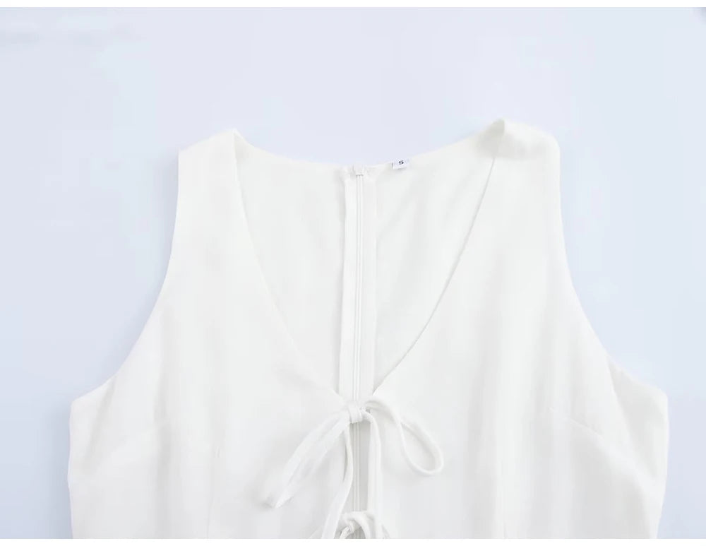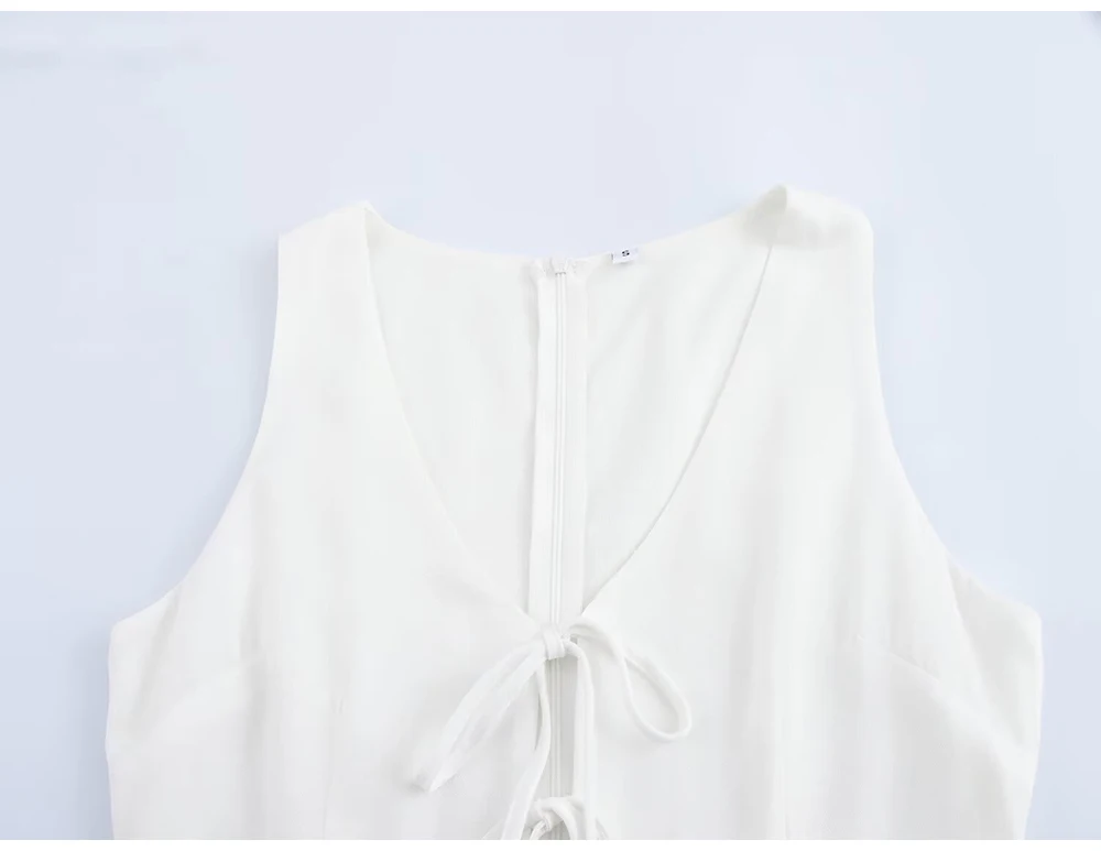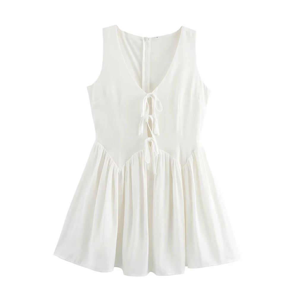 Purpdrank Women White Sleeveless Dress Summer V-neck Lace Up A-line Mini Dresses American Style Casual Simple Solid Color Sundress