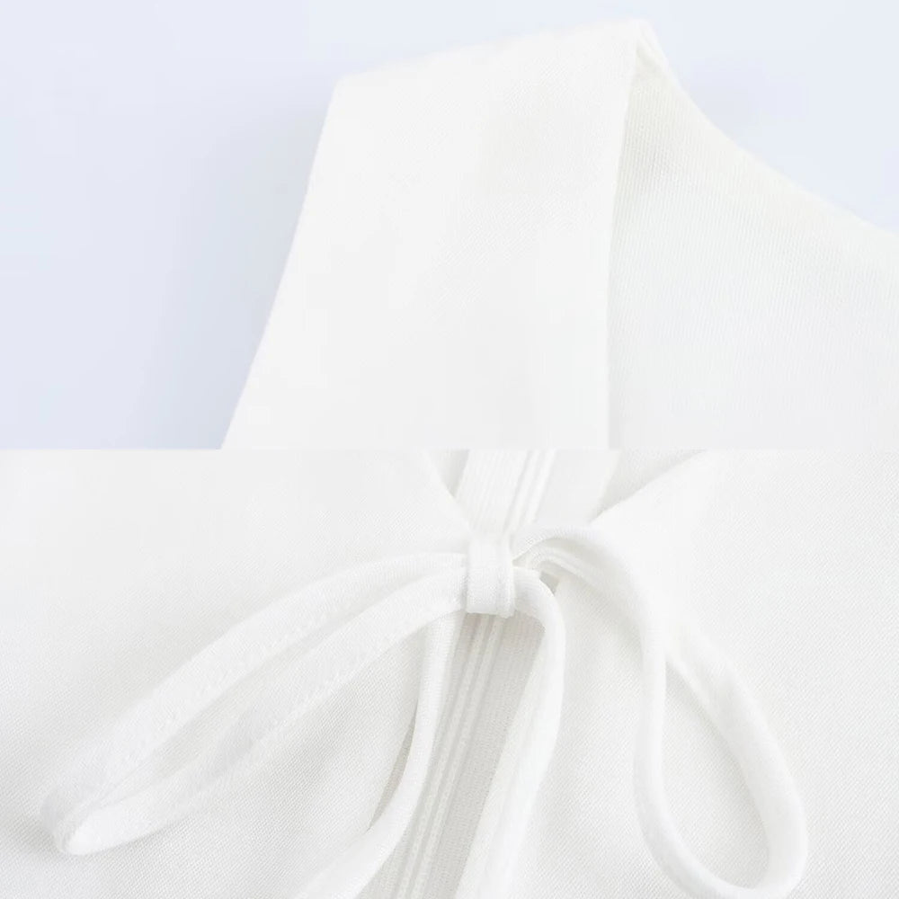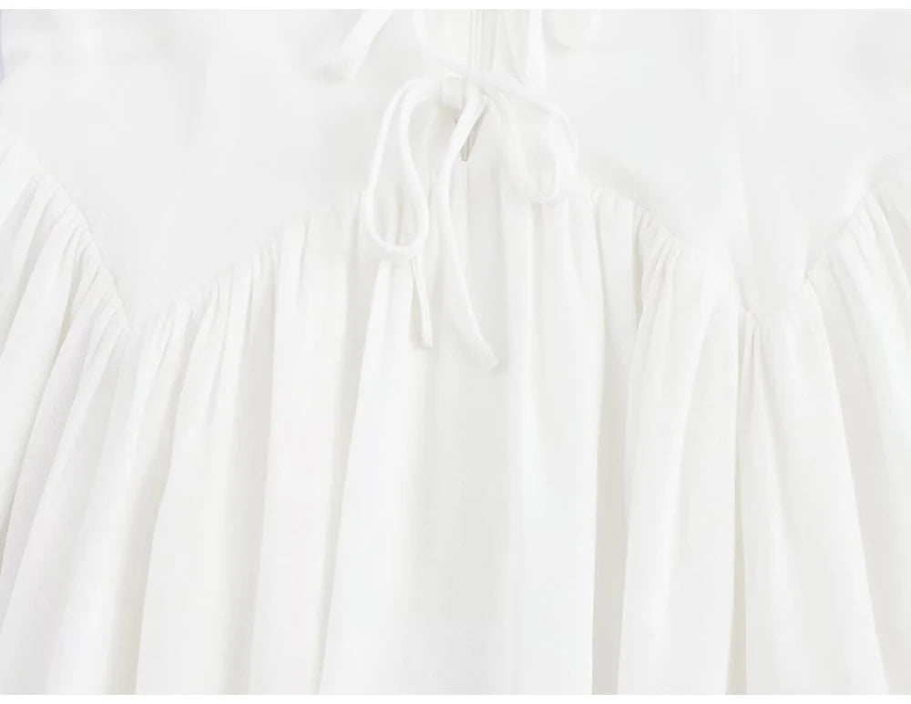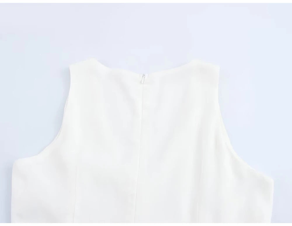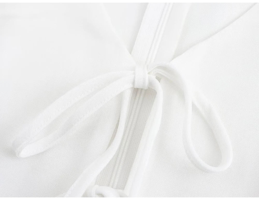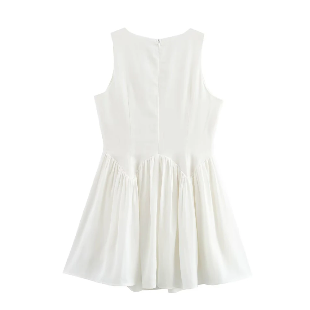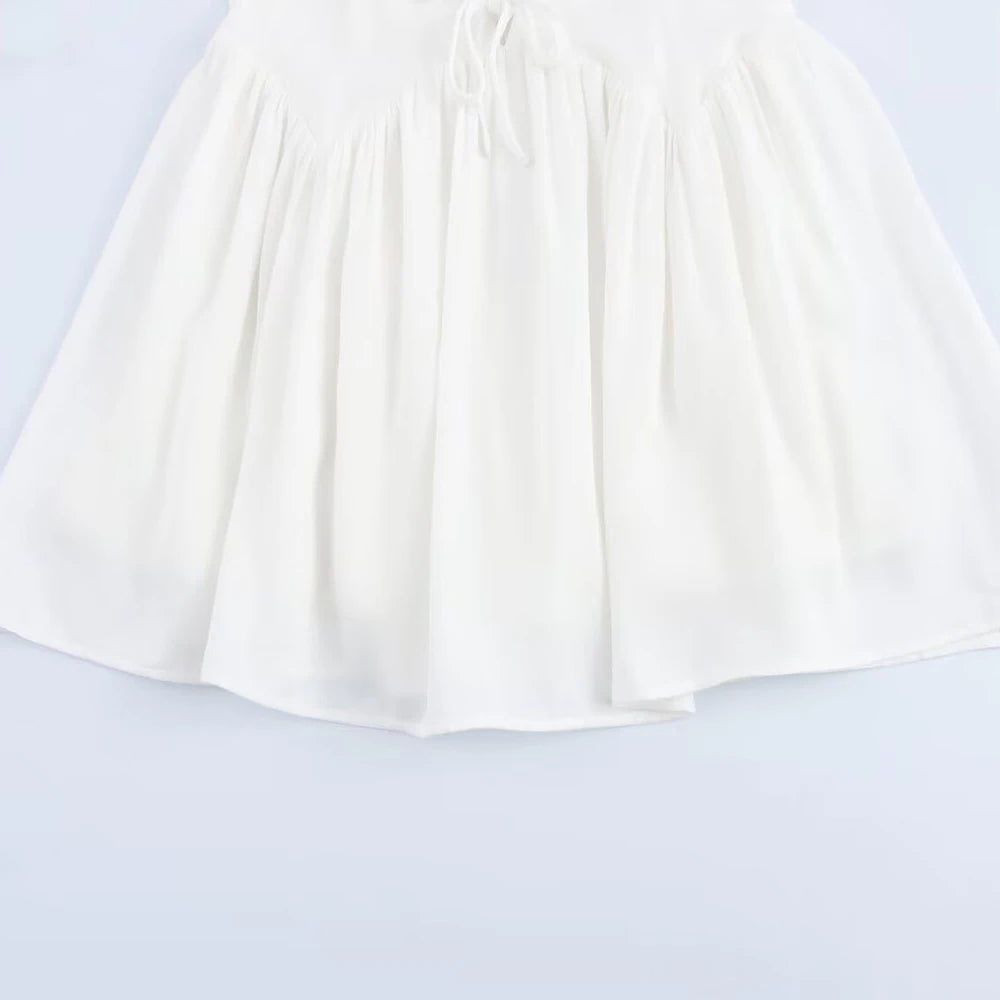 Purpdrank Women White Sleeveless Dress Summer V-neck Lace Up A-line Mini Dresses American Style Casual Simple Solid Color Sundress