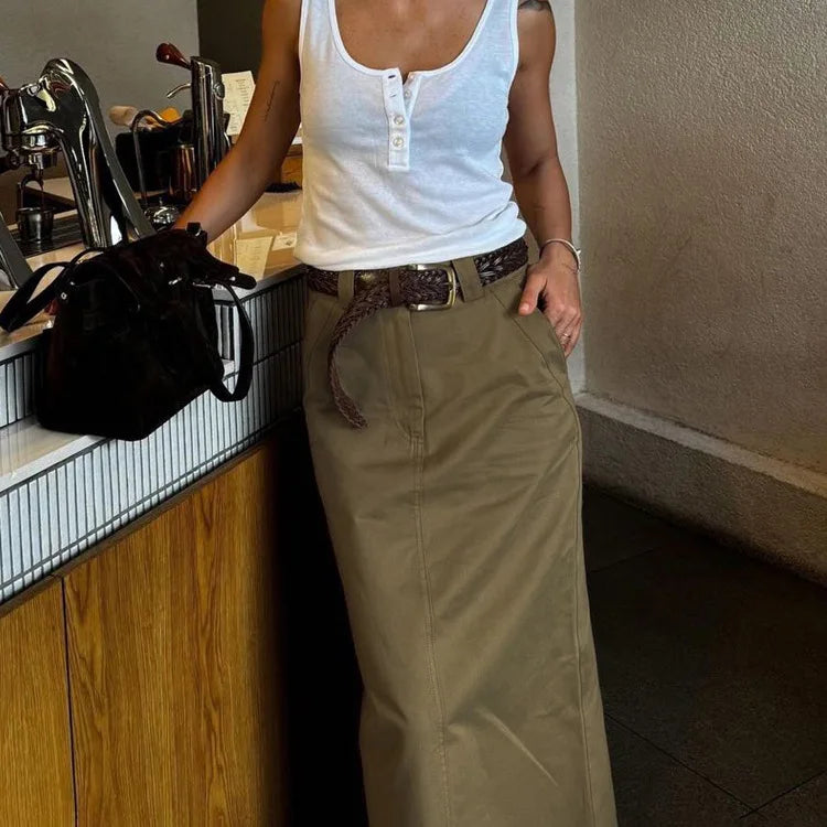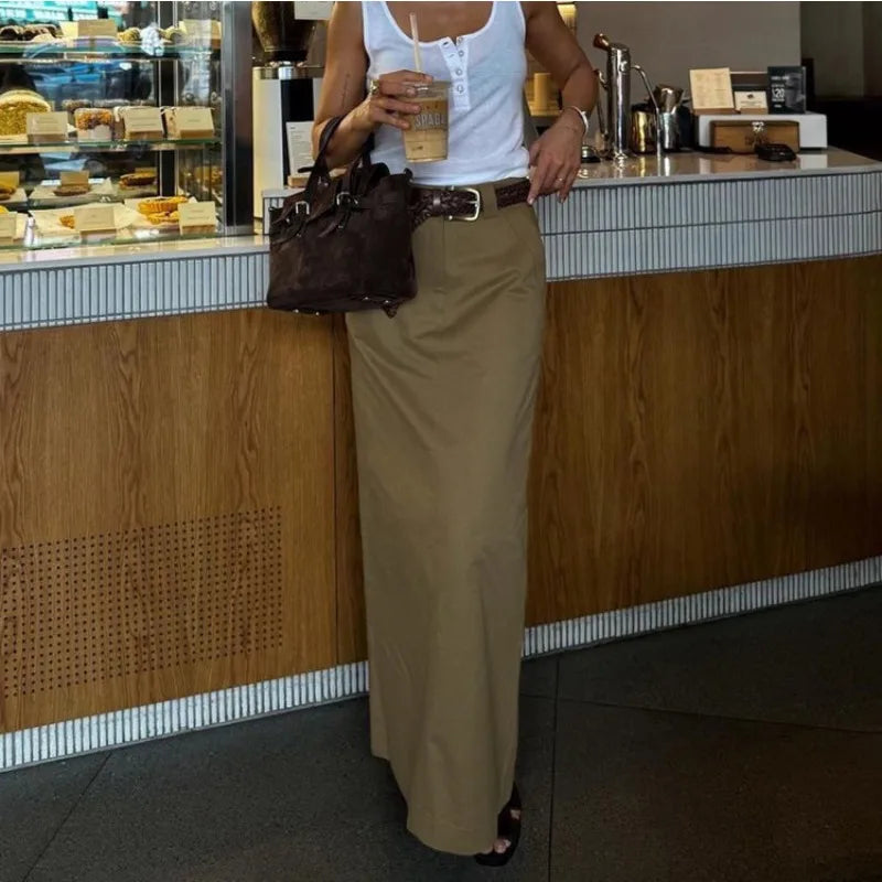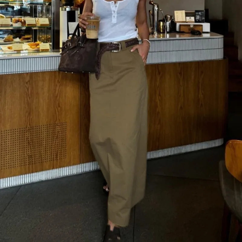 Purpdrank Women's 2025 new temperament commuting sense of luxury, simple and versatile skirt, slit high-waisted hip long skirt