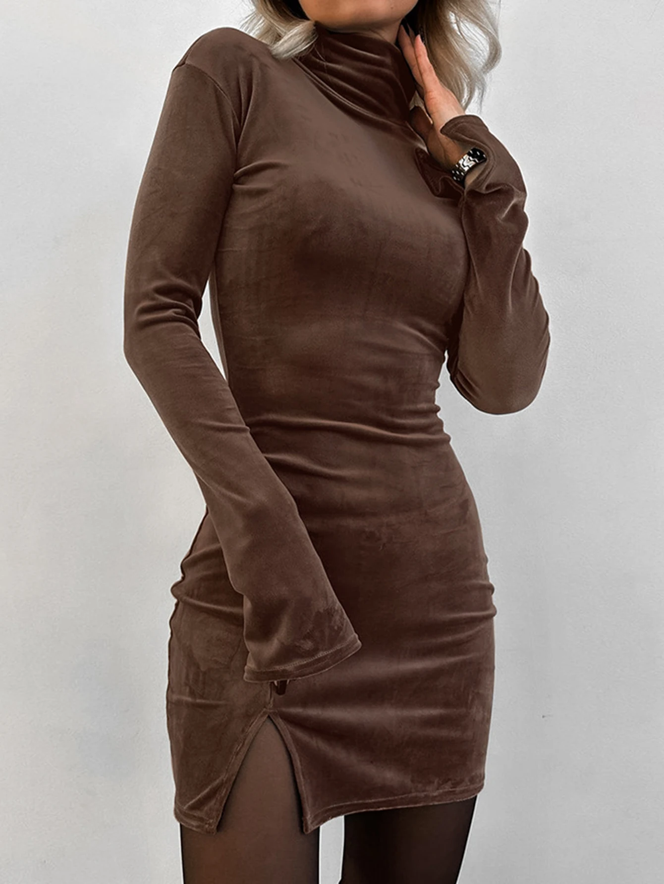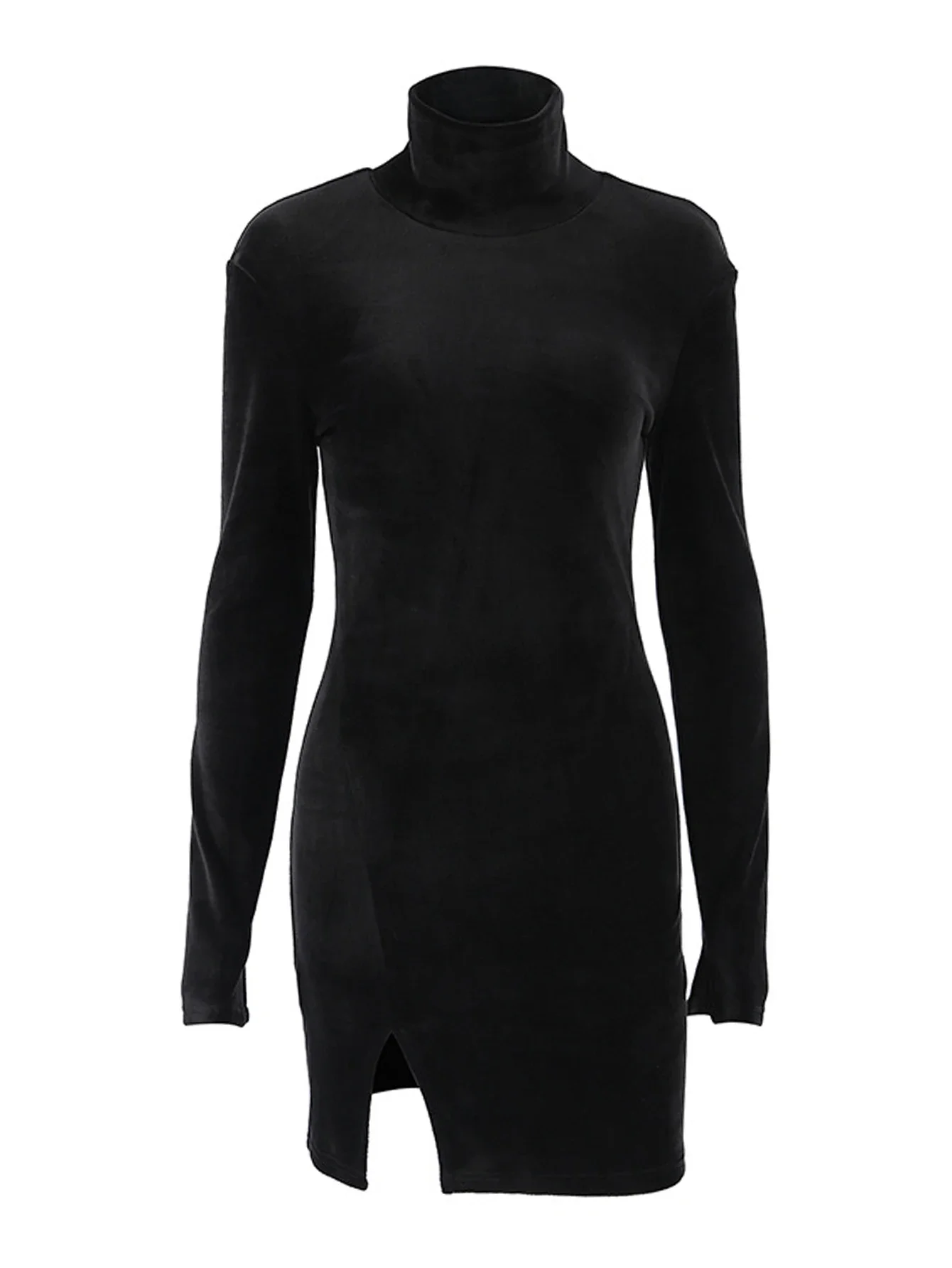 Purpdrank Women's Dresses Autumn Elegant Decent 2025 Plain Wrap Long Sleeve High Neck Mini Bodycon Party Dresses