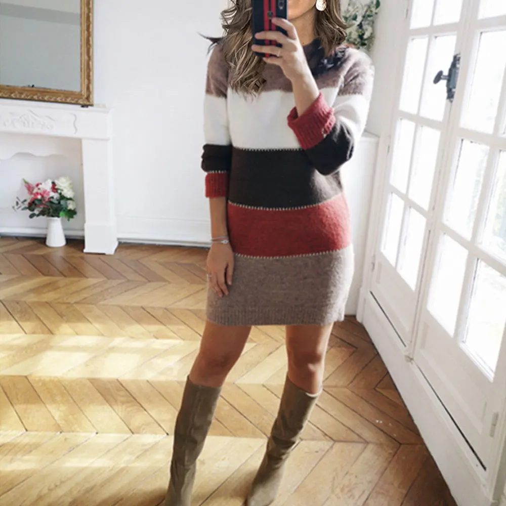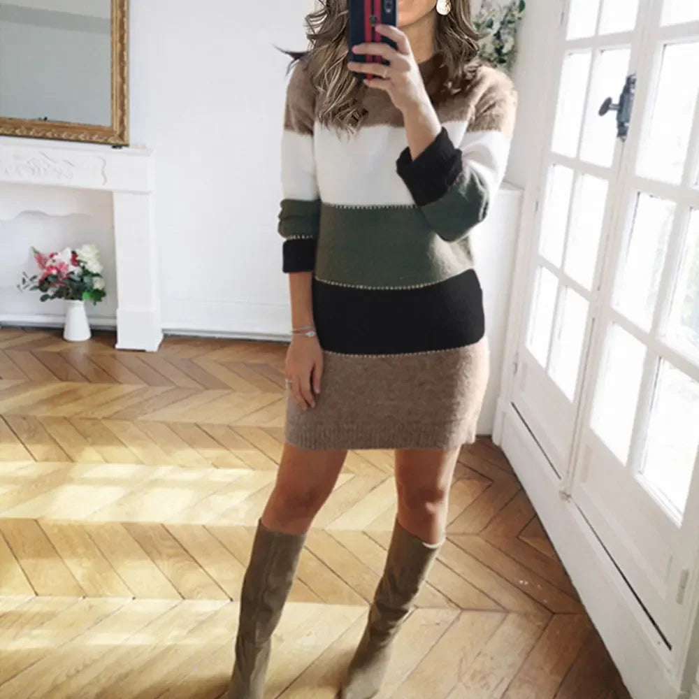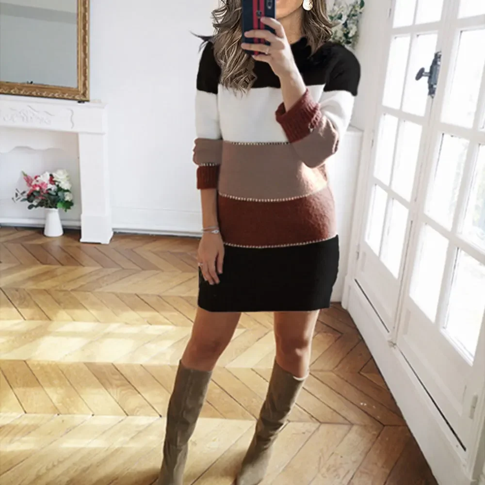 Purpdrank Women's Dresses Autumn Winter French Elegant 2025 Stripes Wrap Casual Long Sleeve Round-Neck Mini Party Dresses