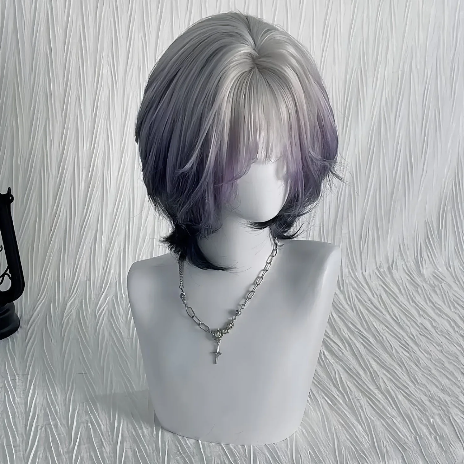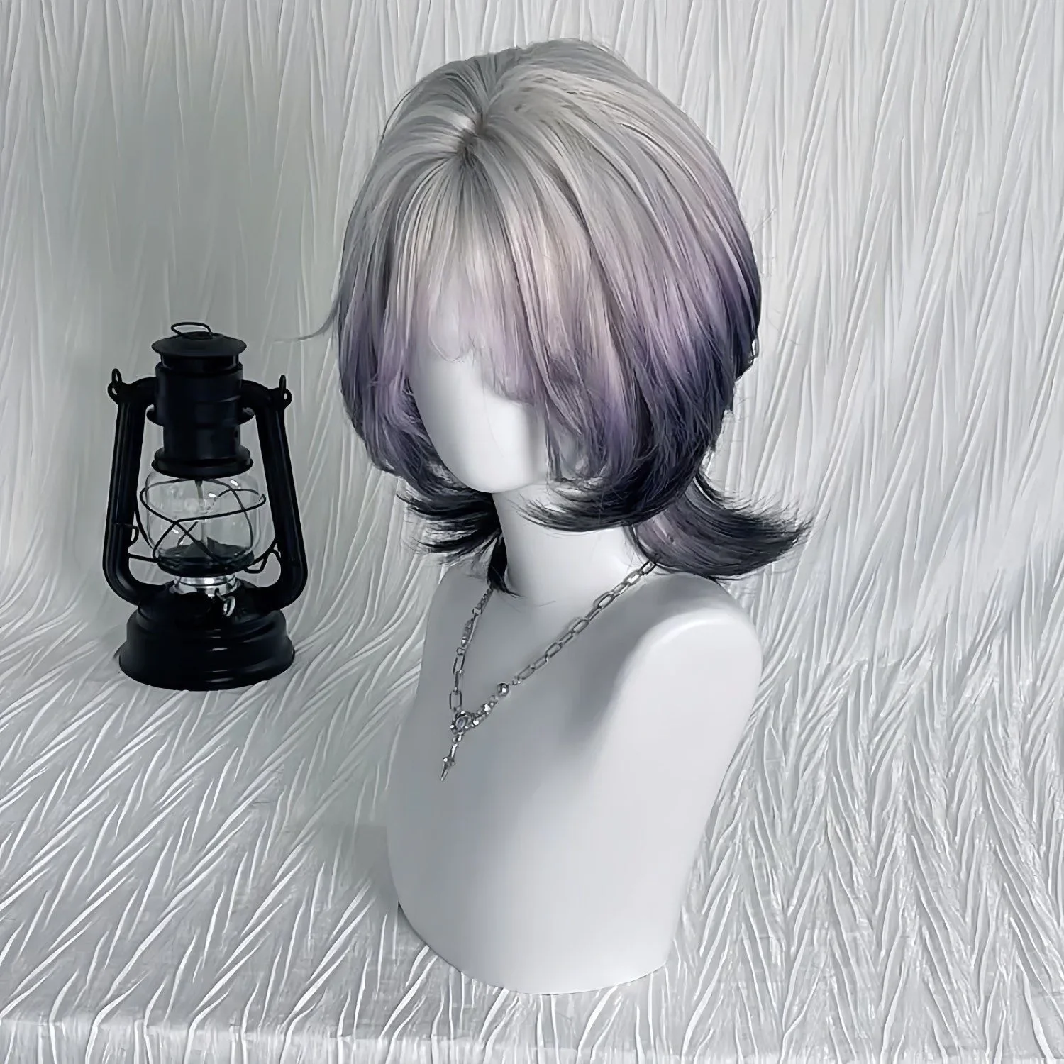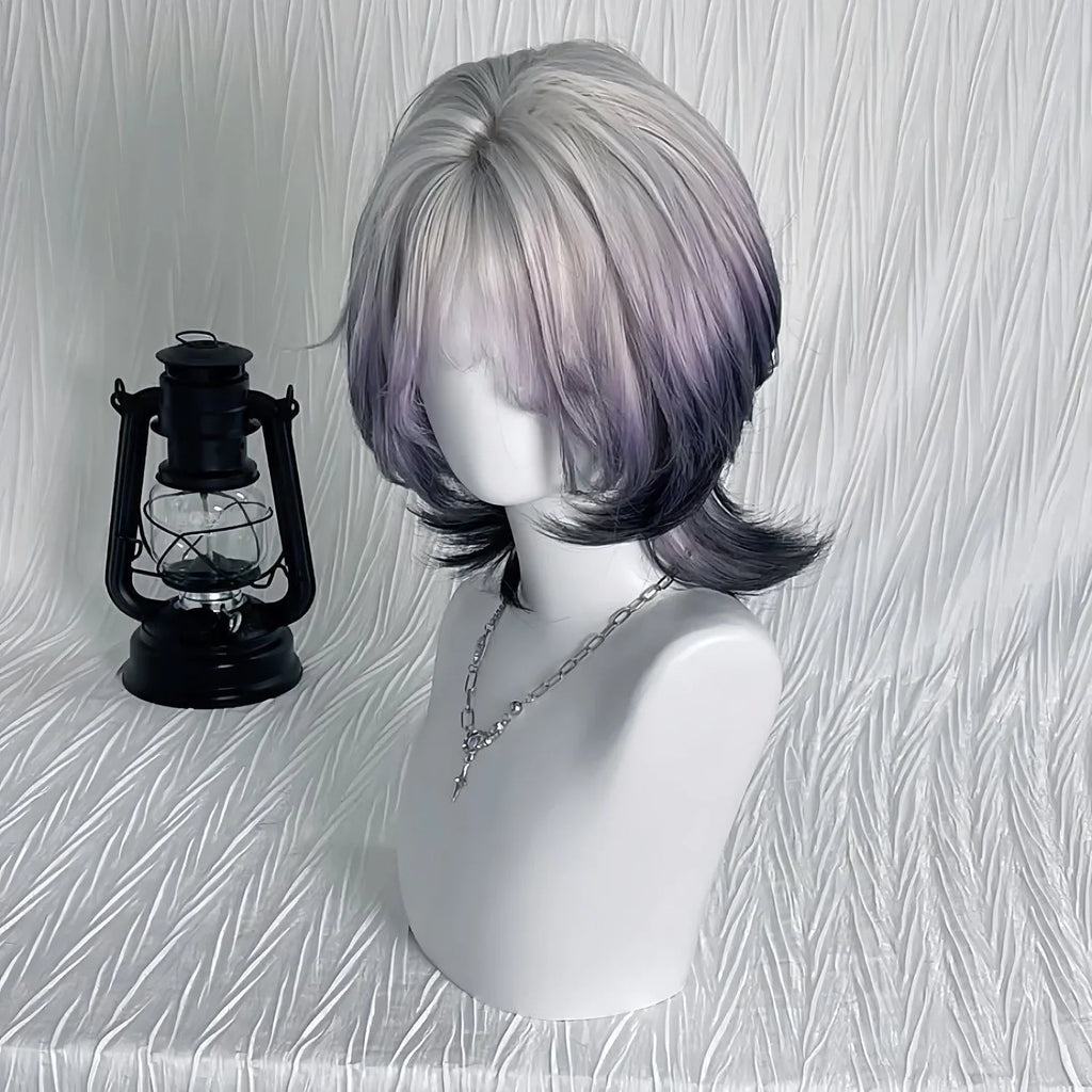 Purpdrank Women's Gradient Pink Purple Short Bob Wig with Bangs Highlighted Top Dyeing Full Head Cover Fiber Mechanism Hair Extension