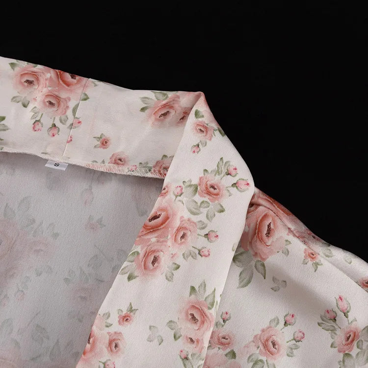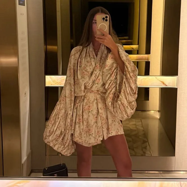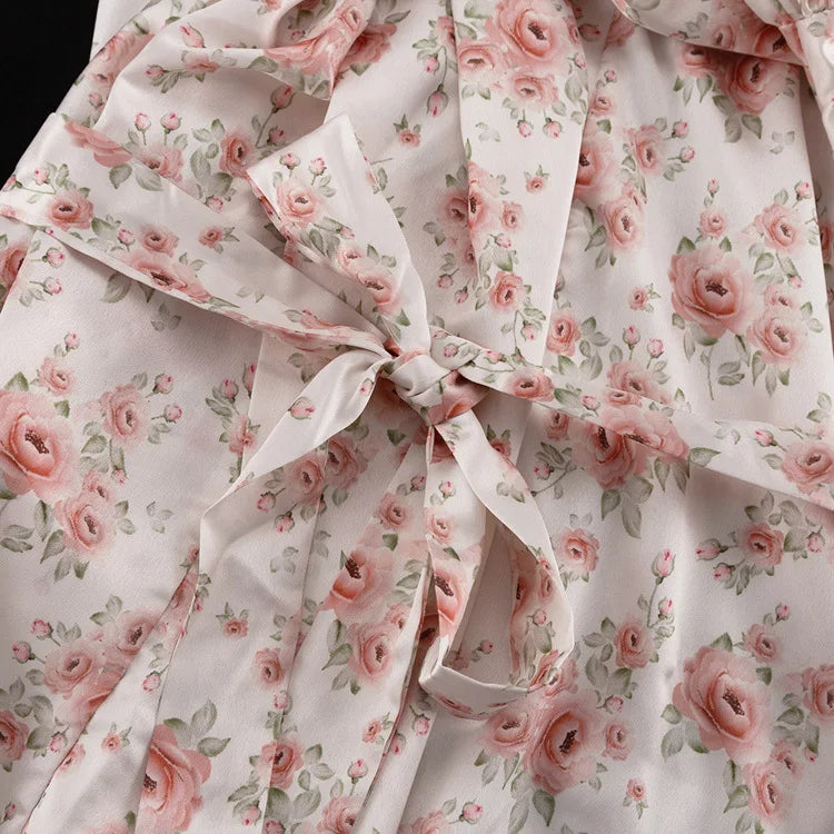Purpdrank Women's Printed Loose and Fashionable Casual Dress with Bubble Sleeves and Lace Up High-end A-line Skirt