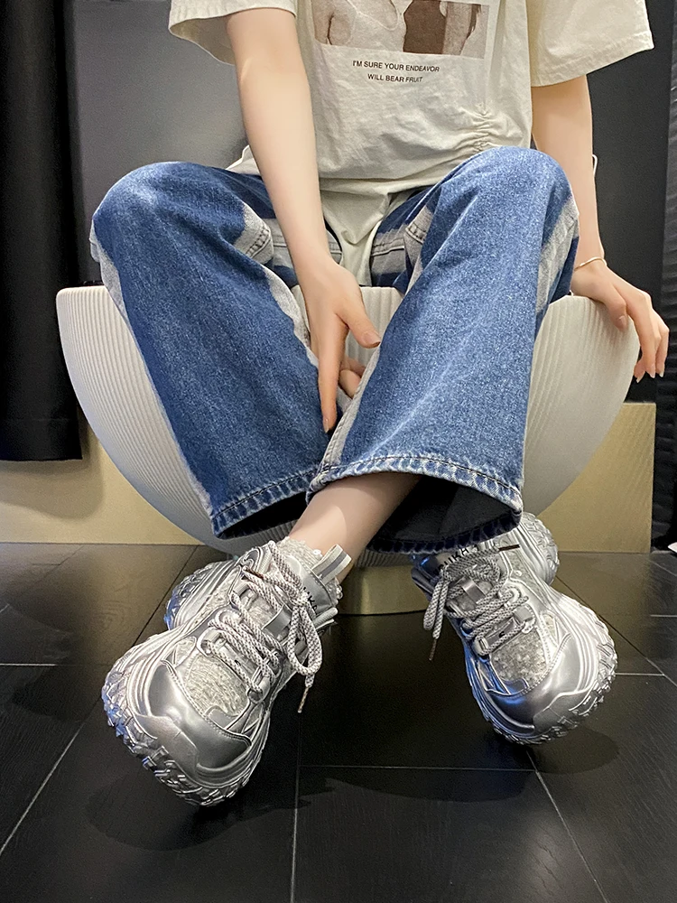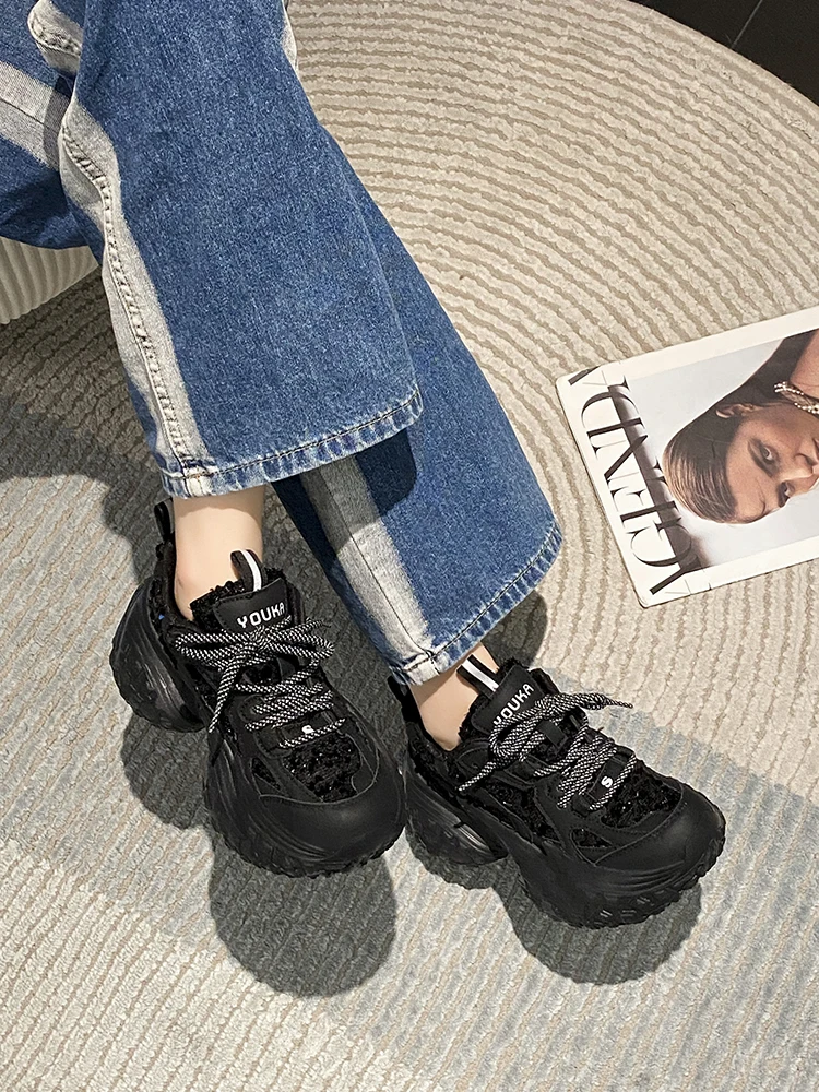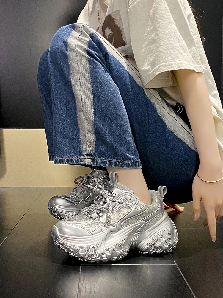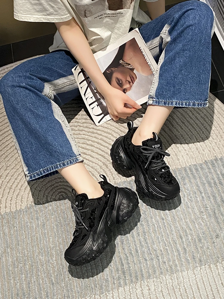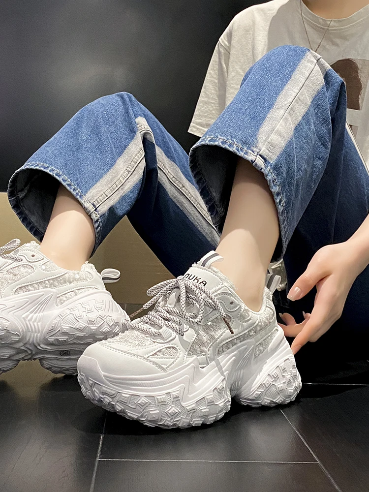 Purpdrank  Womens Sneakers Korean Ladies Shoes Platform Tennis Female Roses Fashion Thick Sole Trainers Mesh Autumn Womens Trainers Sn