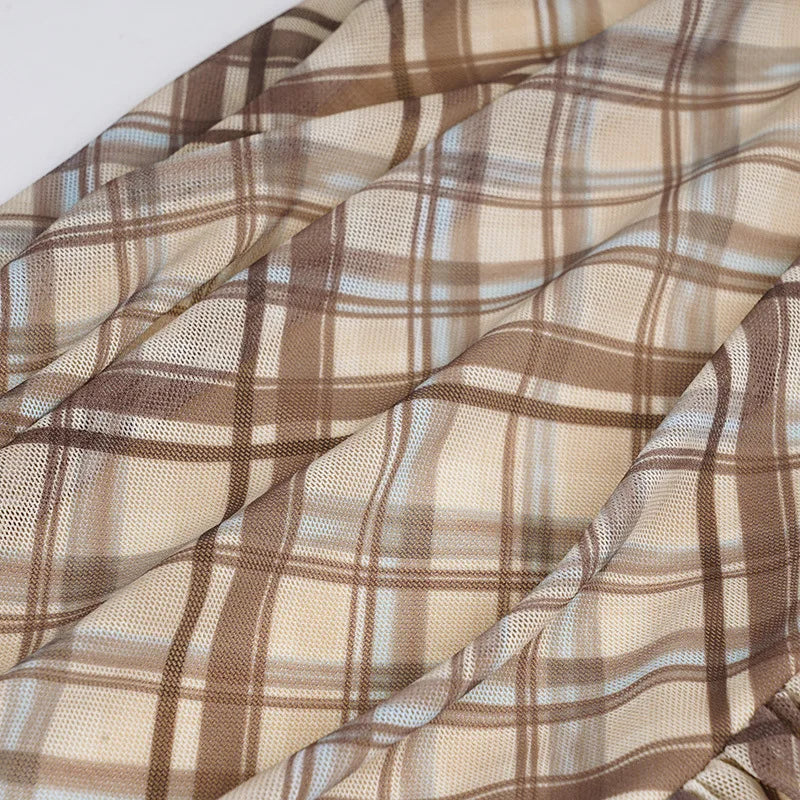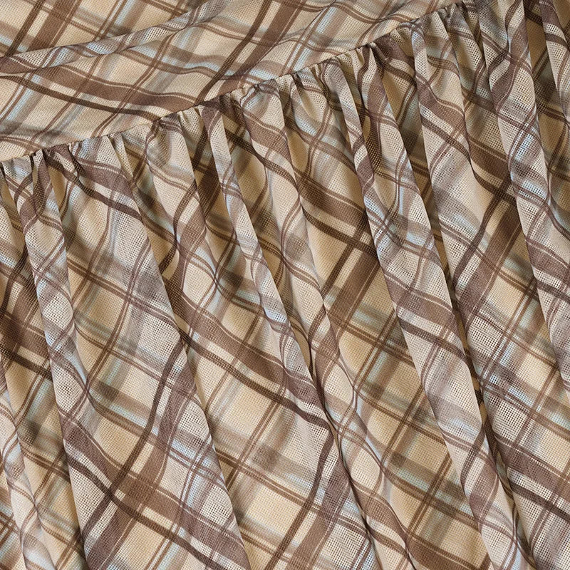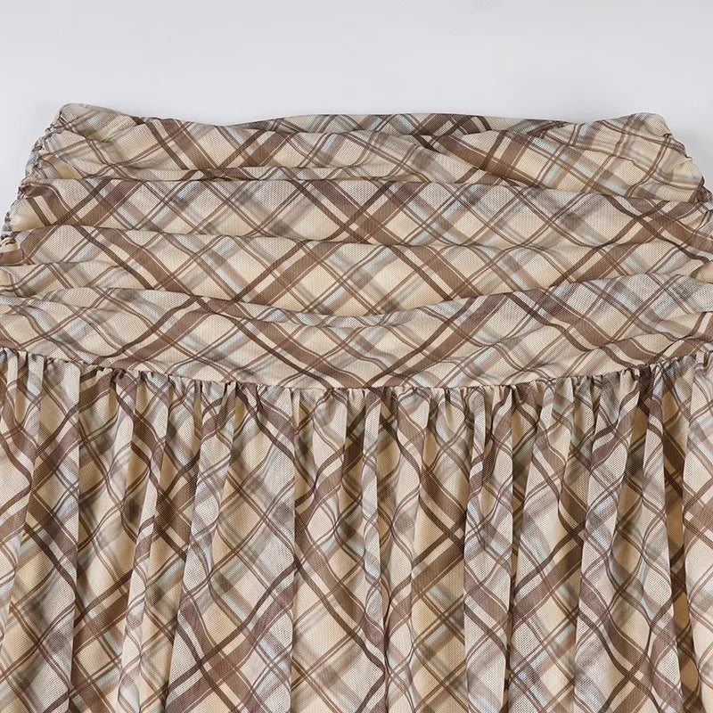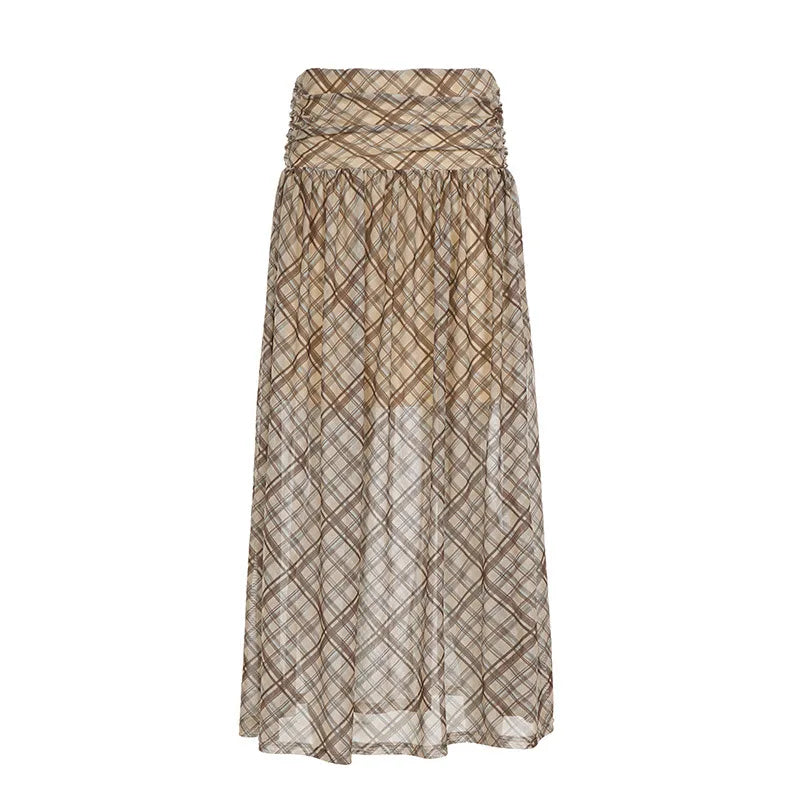 Purpdrank  Women's Summer Spring Half Skirt Plaid Mesh Low Waist Color Blocking See-through Thin Retro Simple Loose Casual Design Fashion