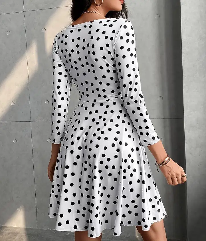 Women's White Elegant Polka Dot Dress Temperament Commuting Female Clothing New Fashion Womens Long Sleeve Midi A-Line Dresses