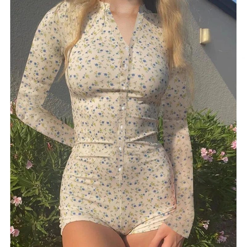 Purpdrank y2k Playsuit Women Fairycore Clothing Floral Print V Neck Button Down Long Sleeve Bodycon Jumpsuit Sexy Streetwear