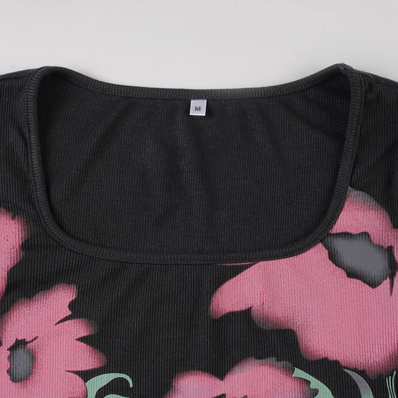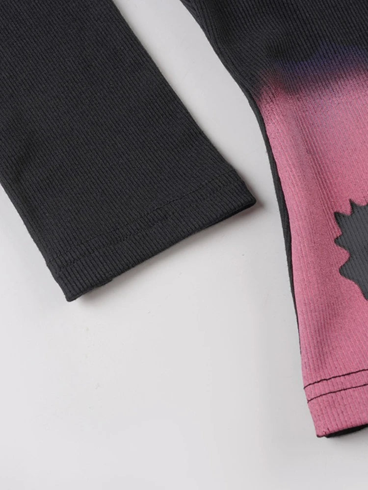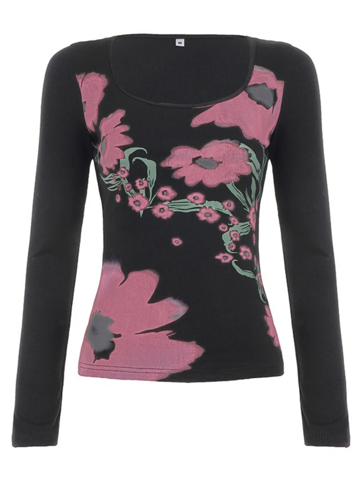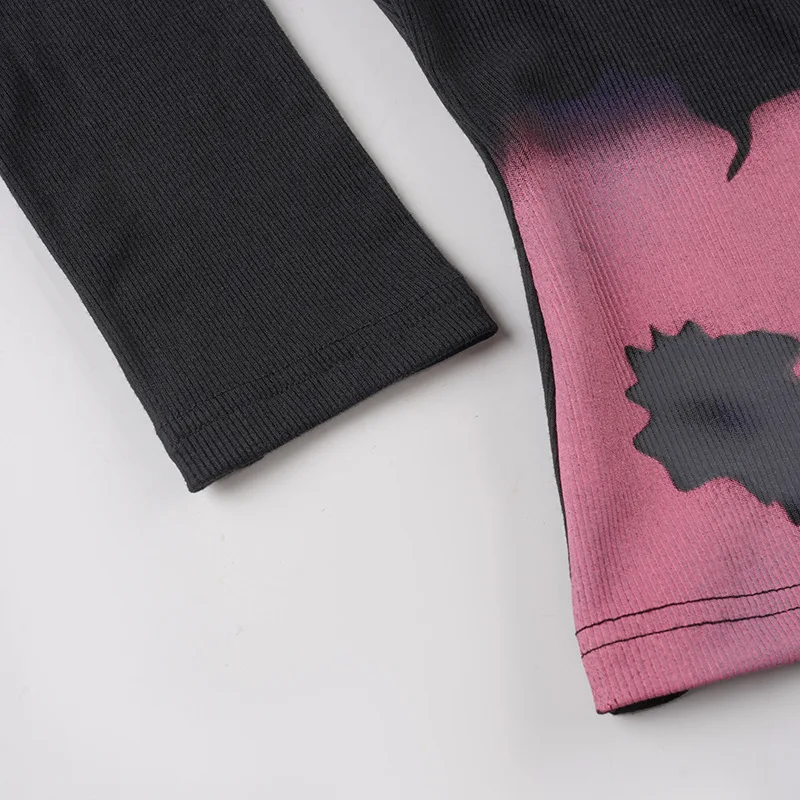 Purpdrank Y2k Sexy Print Autumn O Neck Long Sleeve Slim Streetwear Fashion Knitted T-Shirts