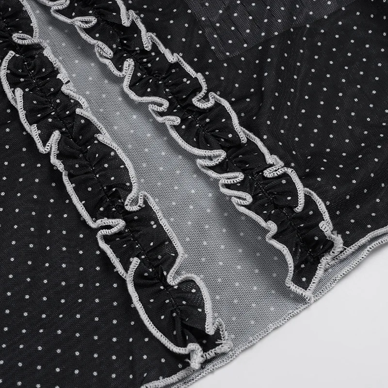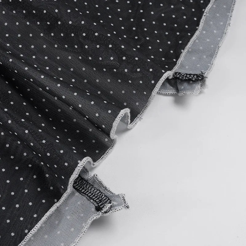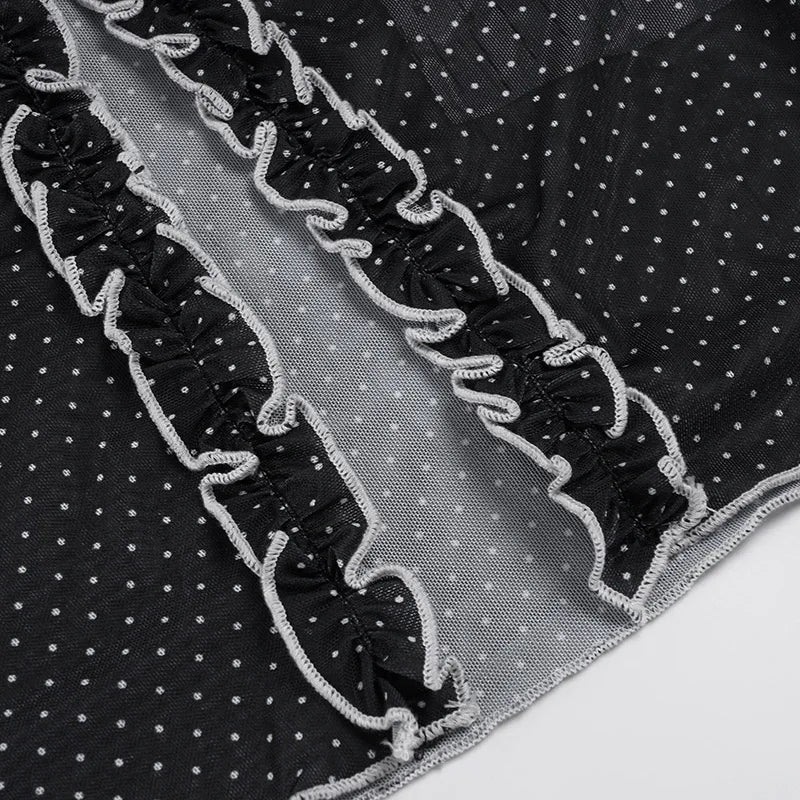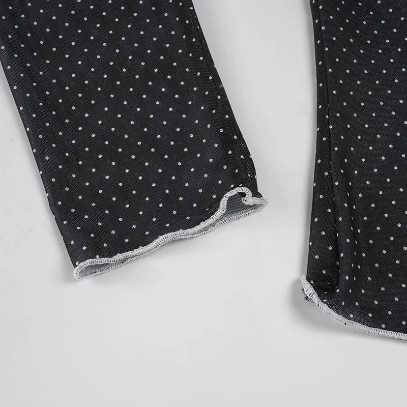 Purpdrank Y2k Sexy V Neck Long Sleeve Polka Dot Edible Tree Fungus Sheer T-Shirts