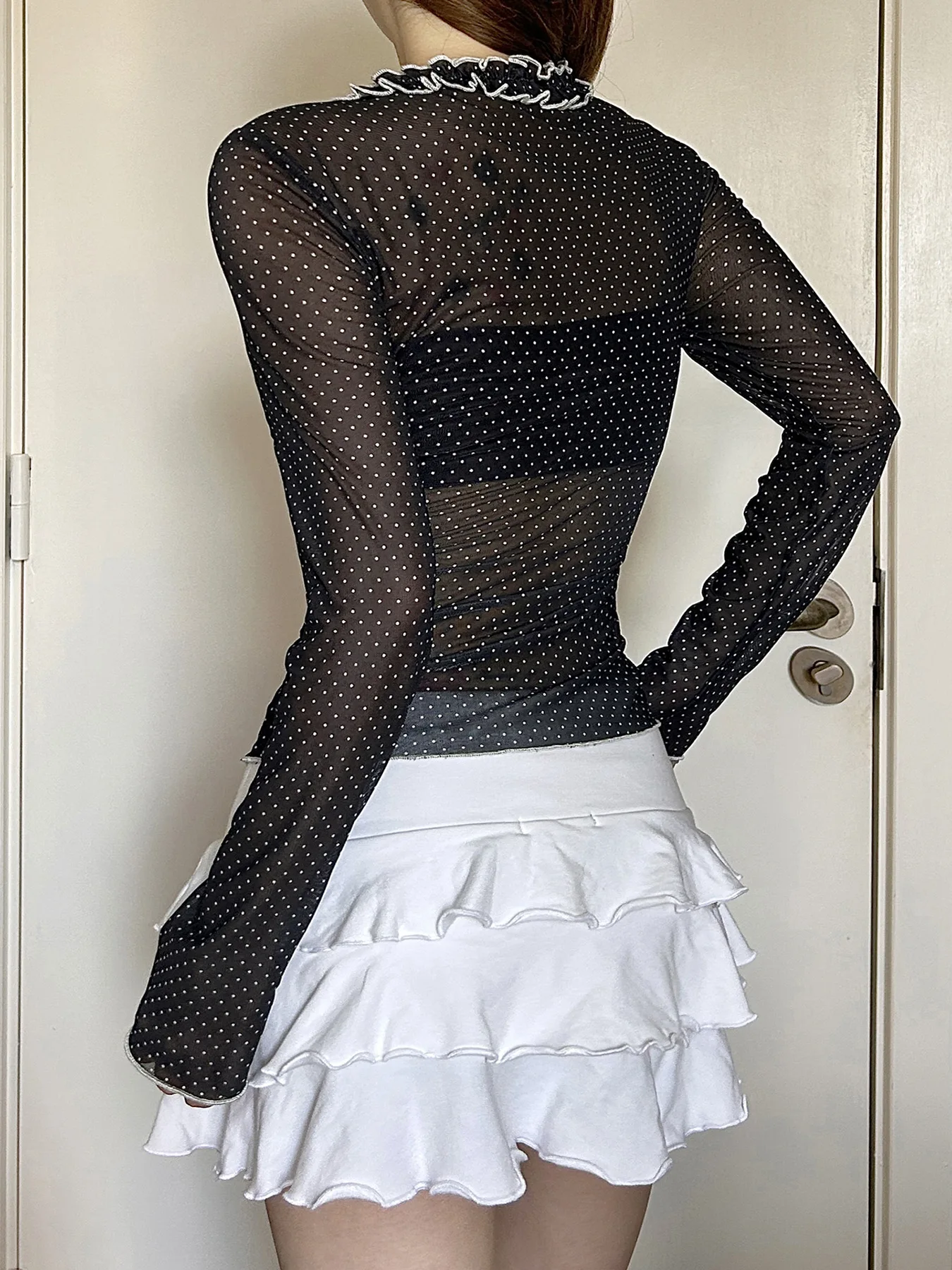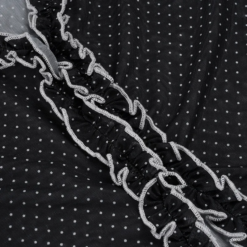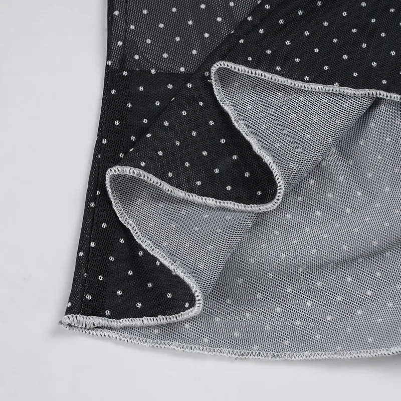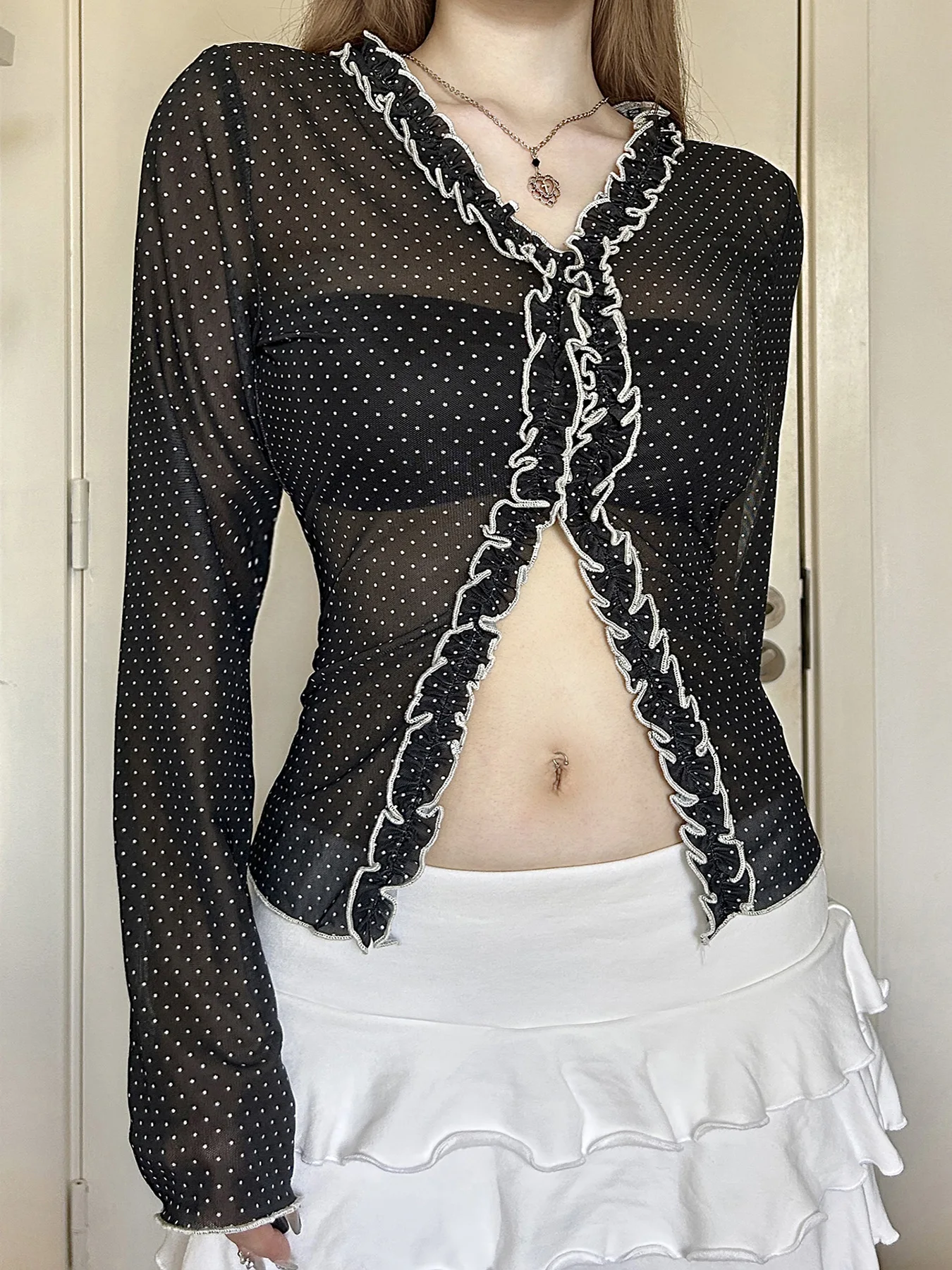 Purpdrank Y2k Sexy V Neck Long Sleeve Polka Dot Edible Tree Fungus Sheer T-Shirts