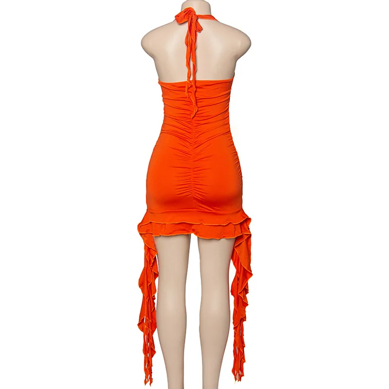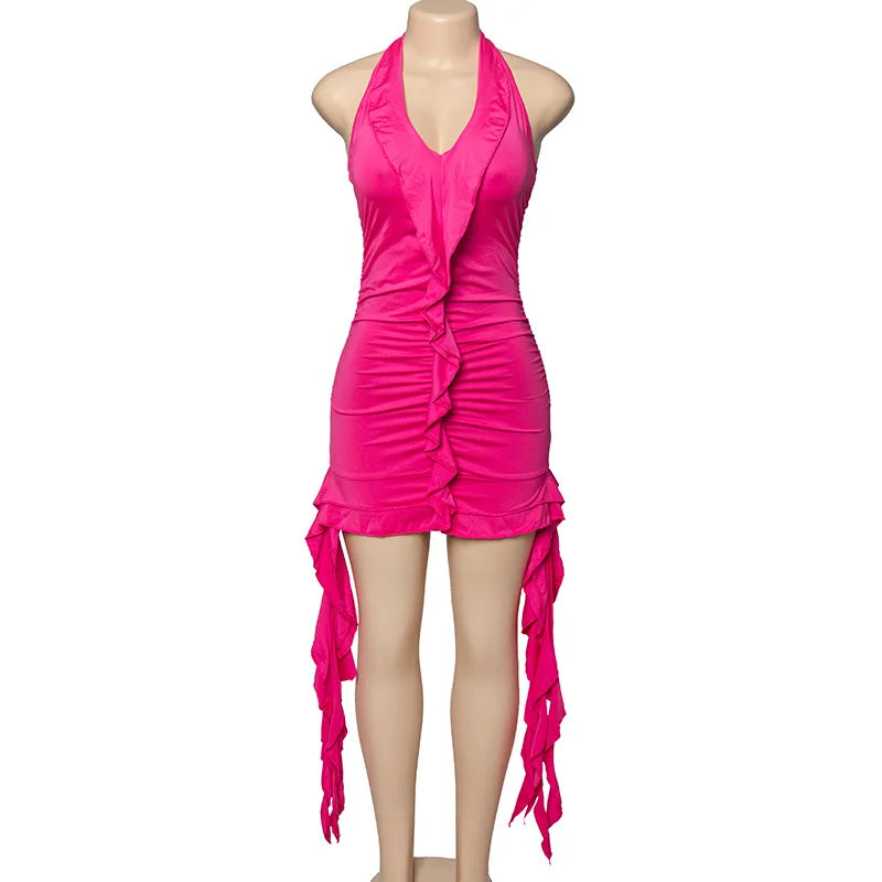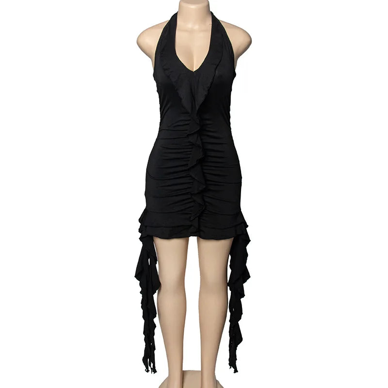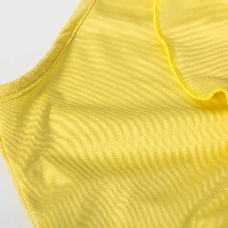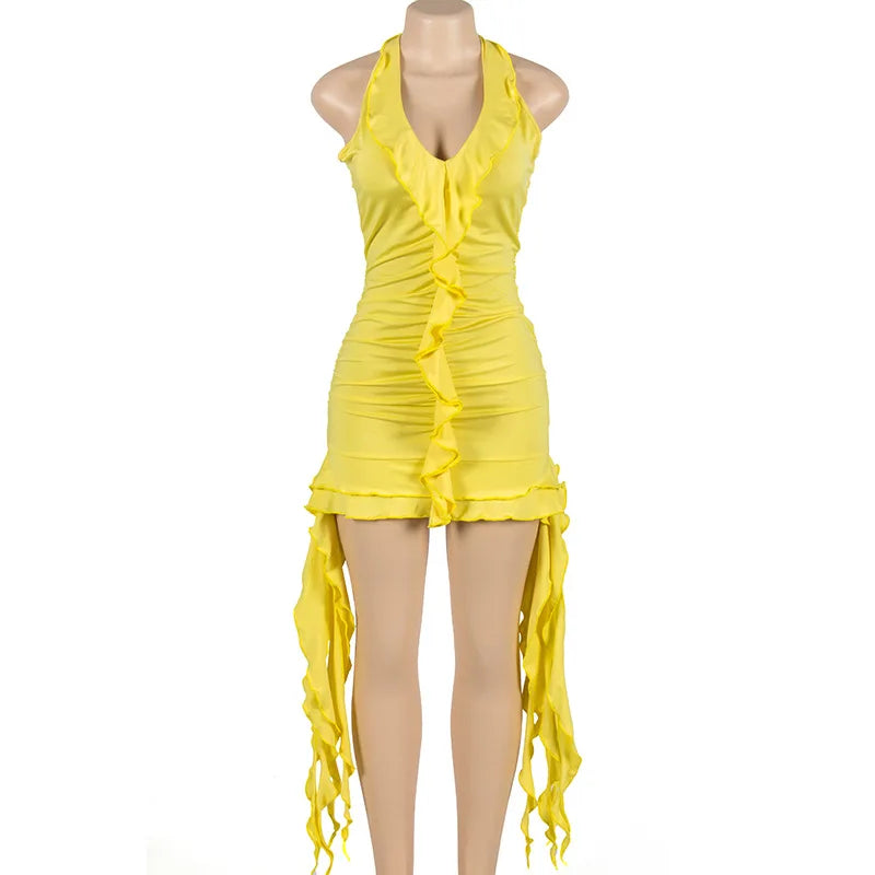 Purpdrank Yellow Ruffles Sexy Halter Backless Summer Dresses for Women 2025 Fashion Asymmetrical Deep V-Neck Mini Party Prom Dress Ladies