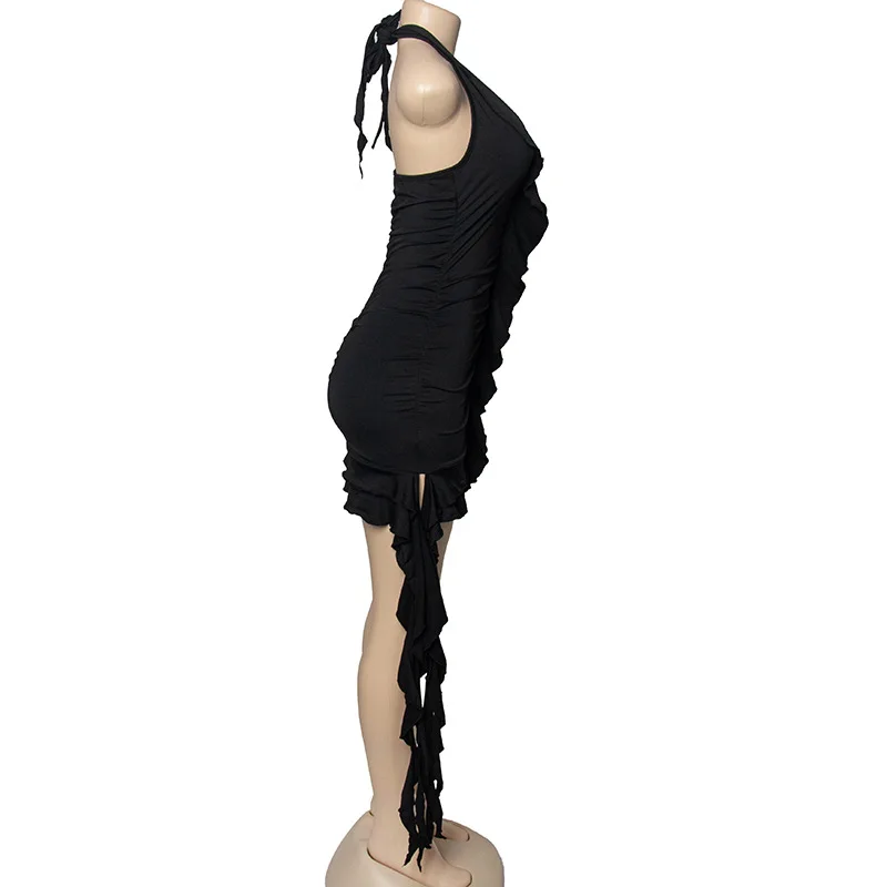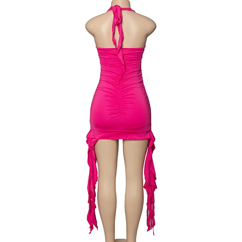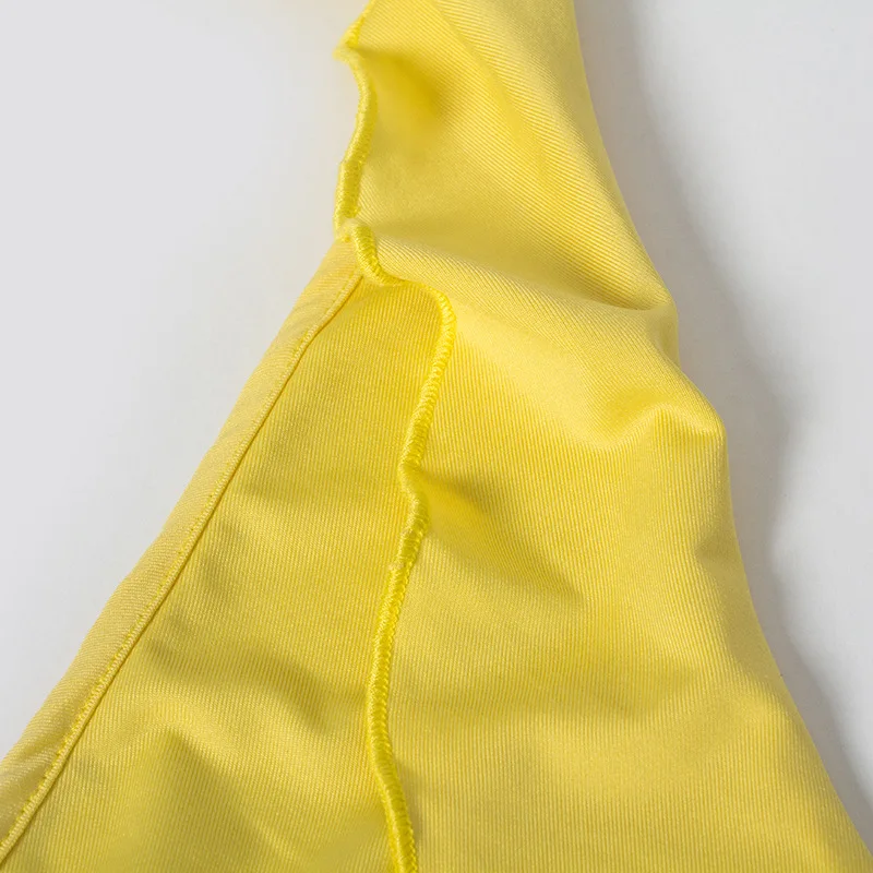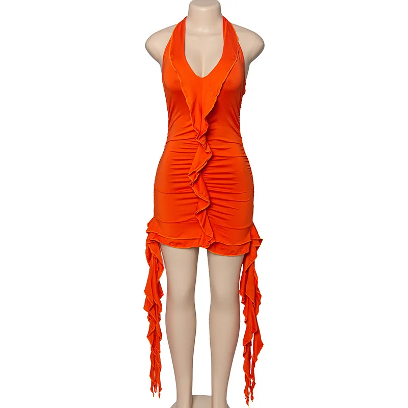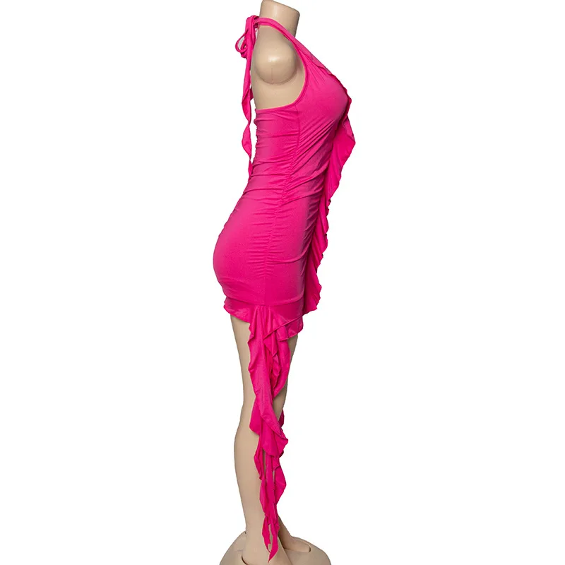 Purpdrank Yellow Ruffles Sexy Halter Backless Summer Dresses for Women 2025 Fashion Asymmetrical Deep V-Neck Mini Party Prom Dress Ladies