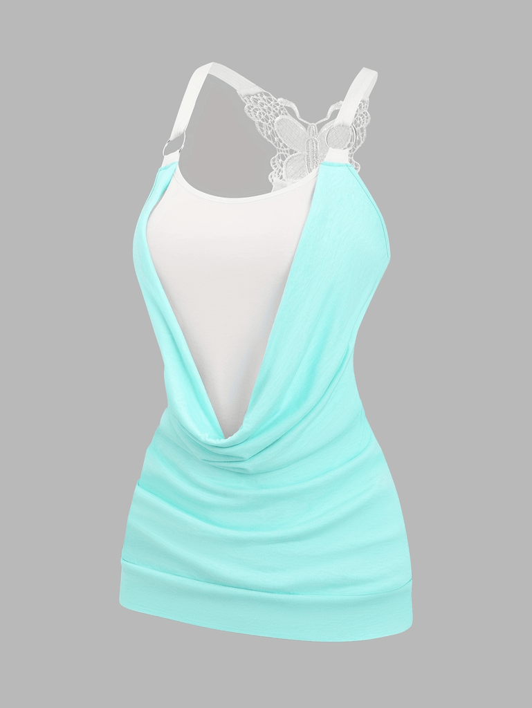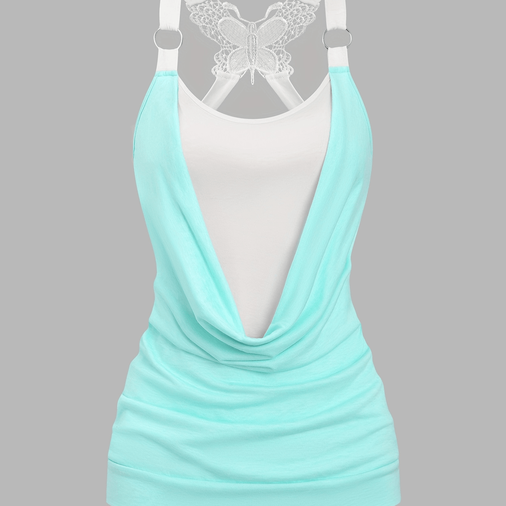 Vibrant Color Block Drape Neck Tank Top - Soft Mid-Elastic Polyester Fabric, Casual Sleeveless Summer Vest for Women - Machine Washable, Customized Style