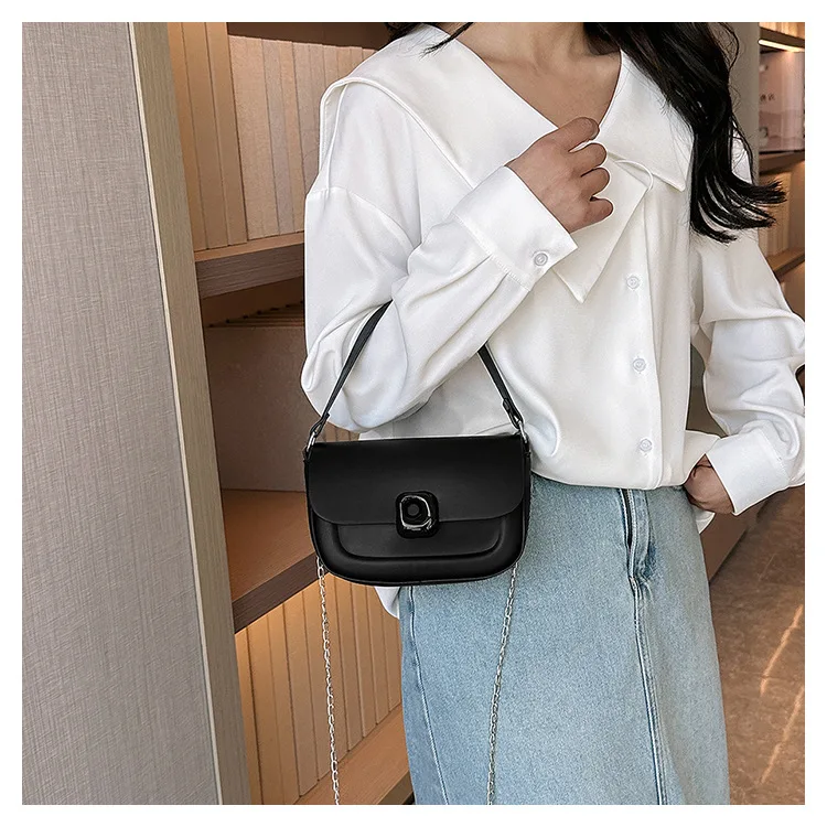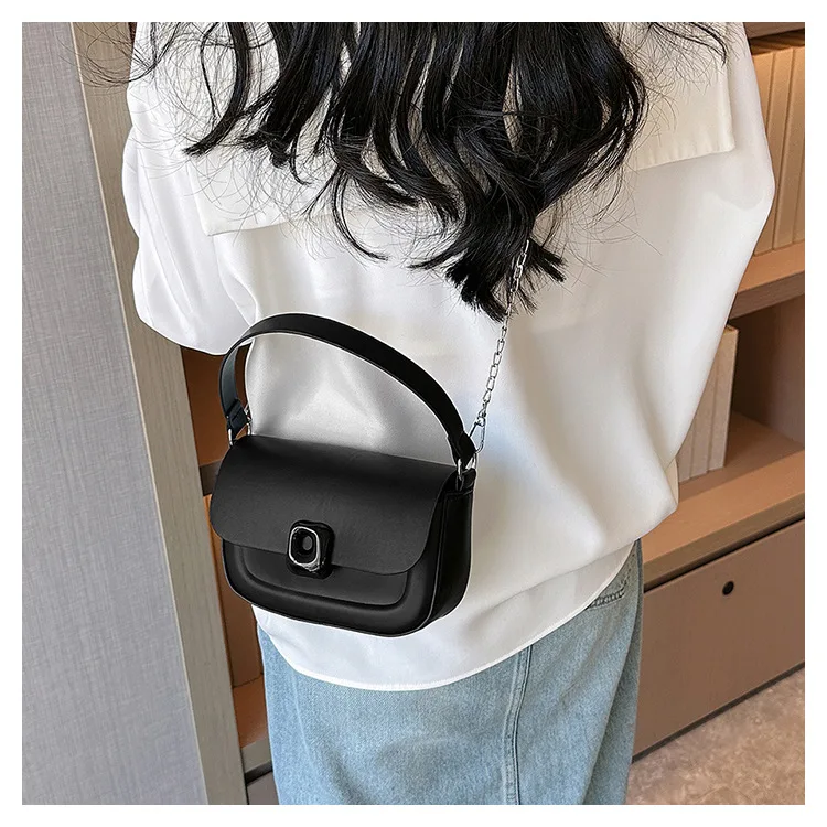 Purpdrank - Solid Pu Leather Shoulder Bag Chain Strap Casual Crossbody Bags For Women Fashion Design Handbag Top Handle Bags