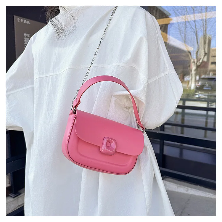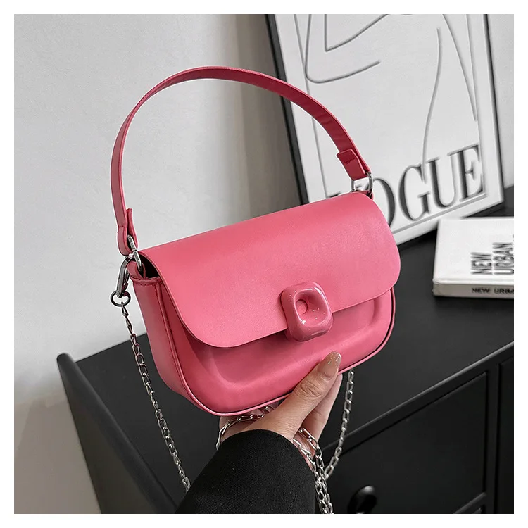 Solid Pu Leather Shoulder Bag Chain Strap Casual Crossbody Bags For Women Fashion Design Handbag Top Handle Bags