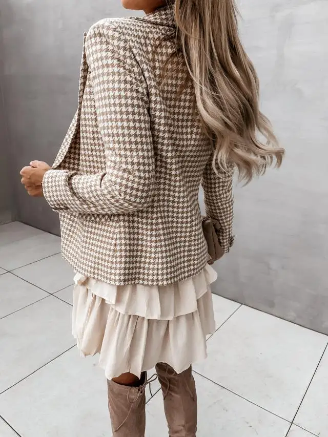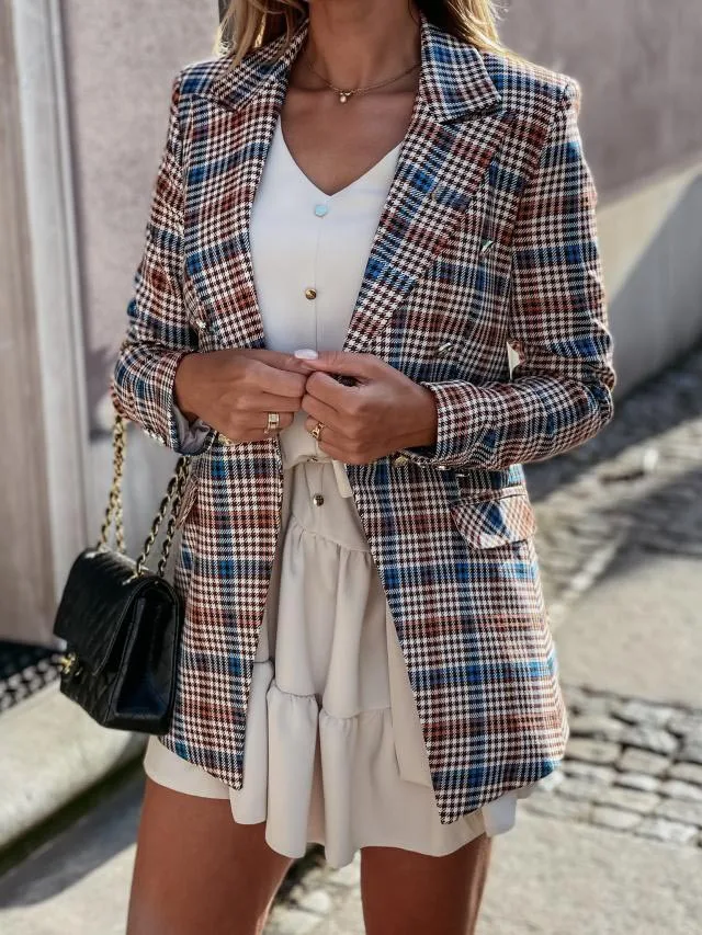 Purpdrank Autumn New Suit Jacket Women Casual Fashion Double Breasted Suit Plaid Blazer Jacket Female Print Temperament Commuter Wear NEW